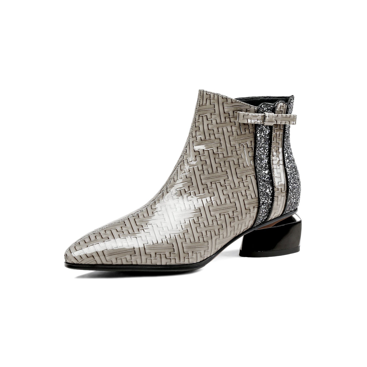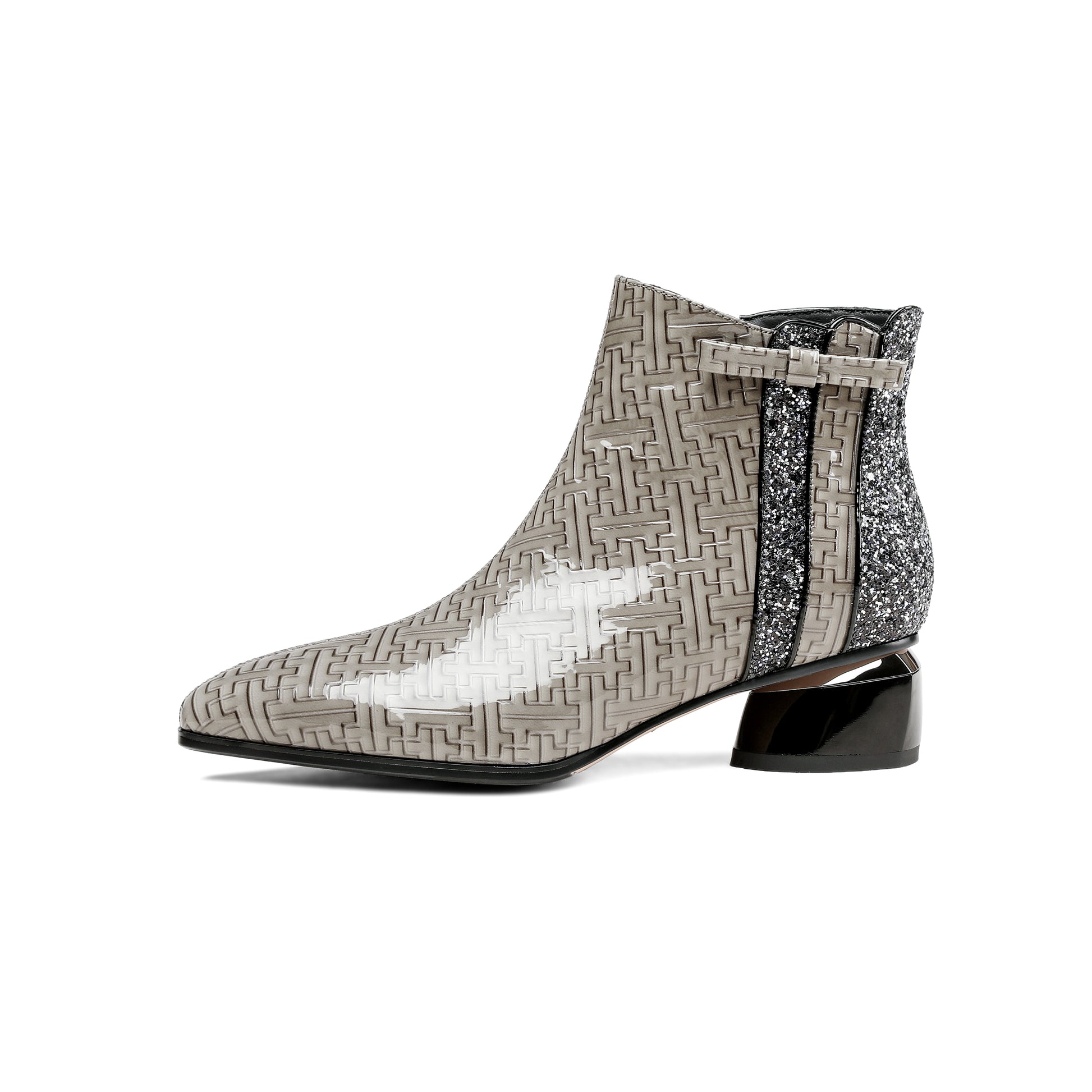 Casual ankle boots designed with patent leather, pointed toe, zipper and low heels can make you feel comfortable with every steps.