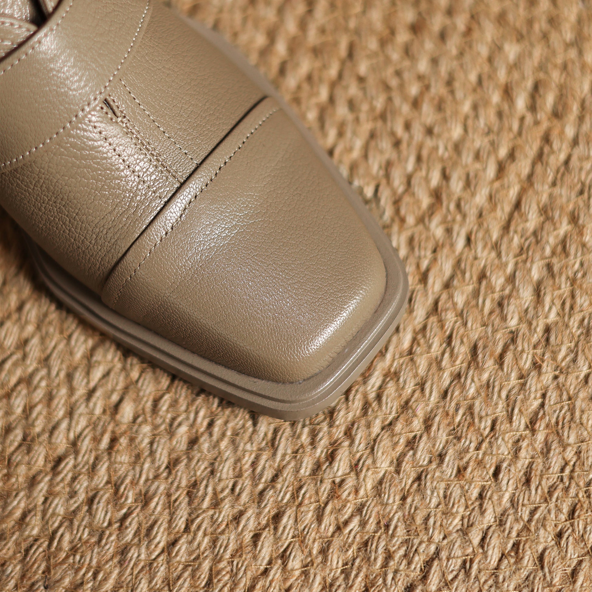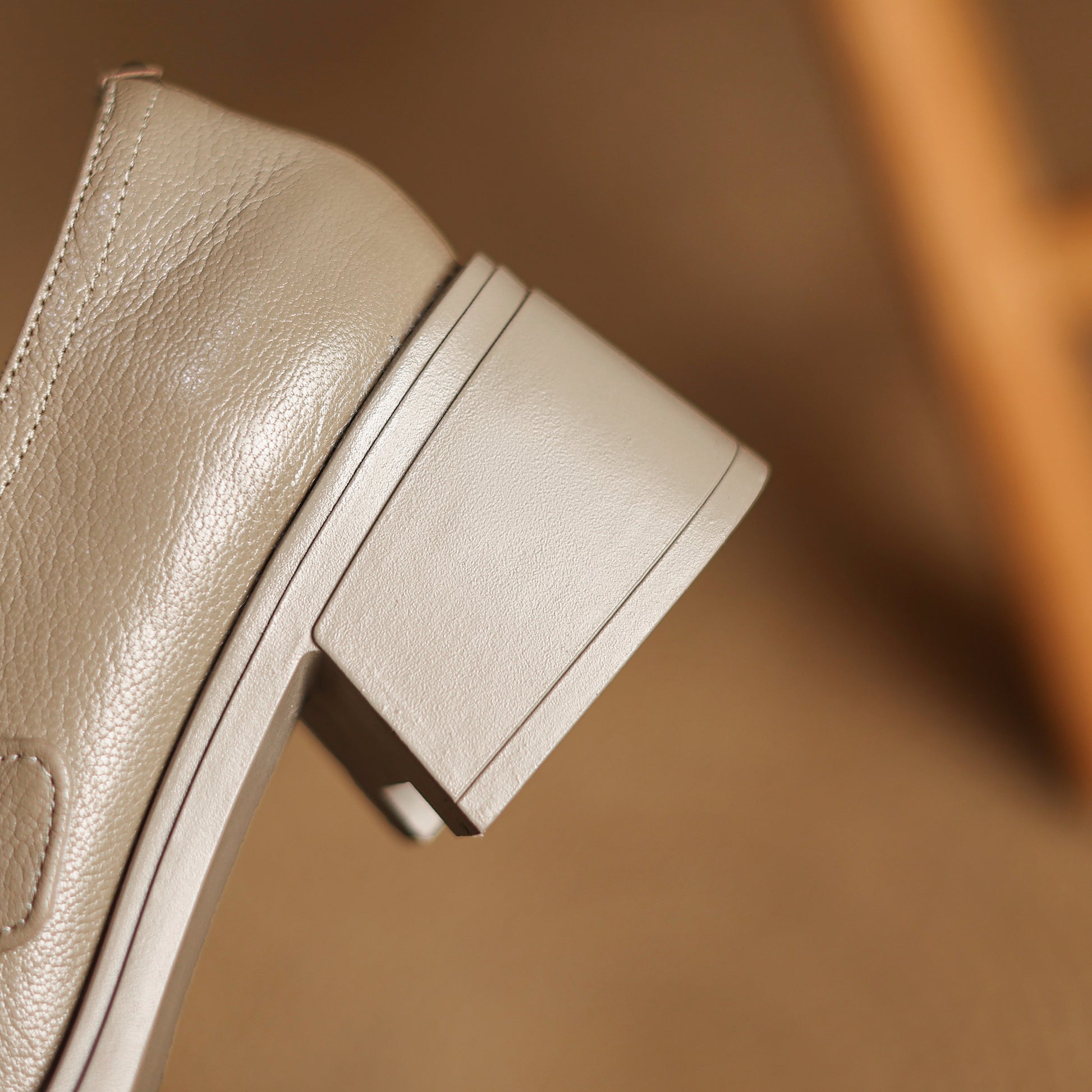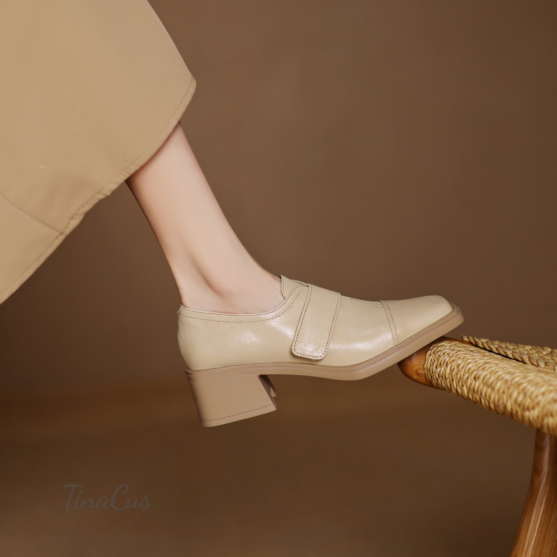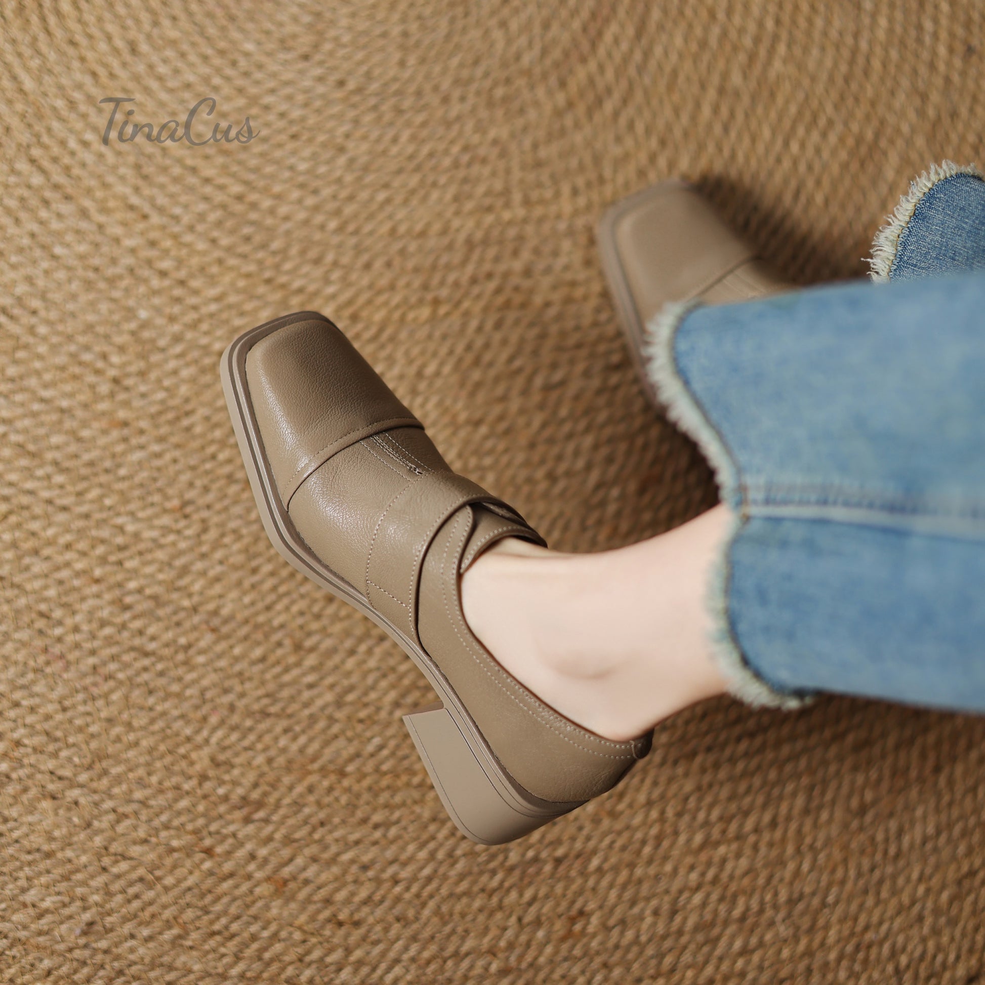Pumps shoes with square toe, genuine leather and chunky heels can make you feel comfortable