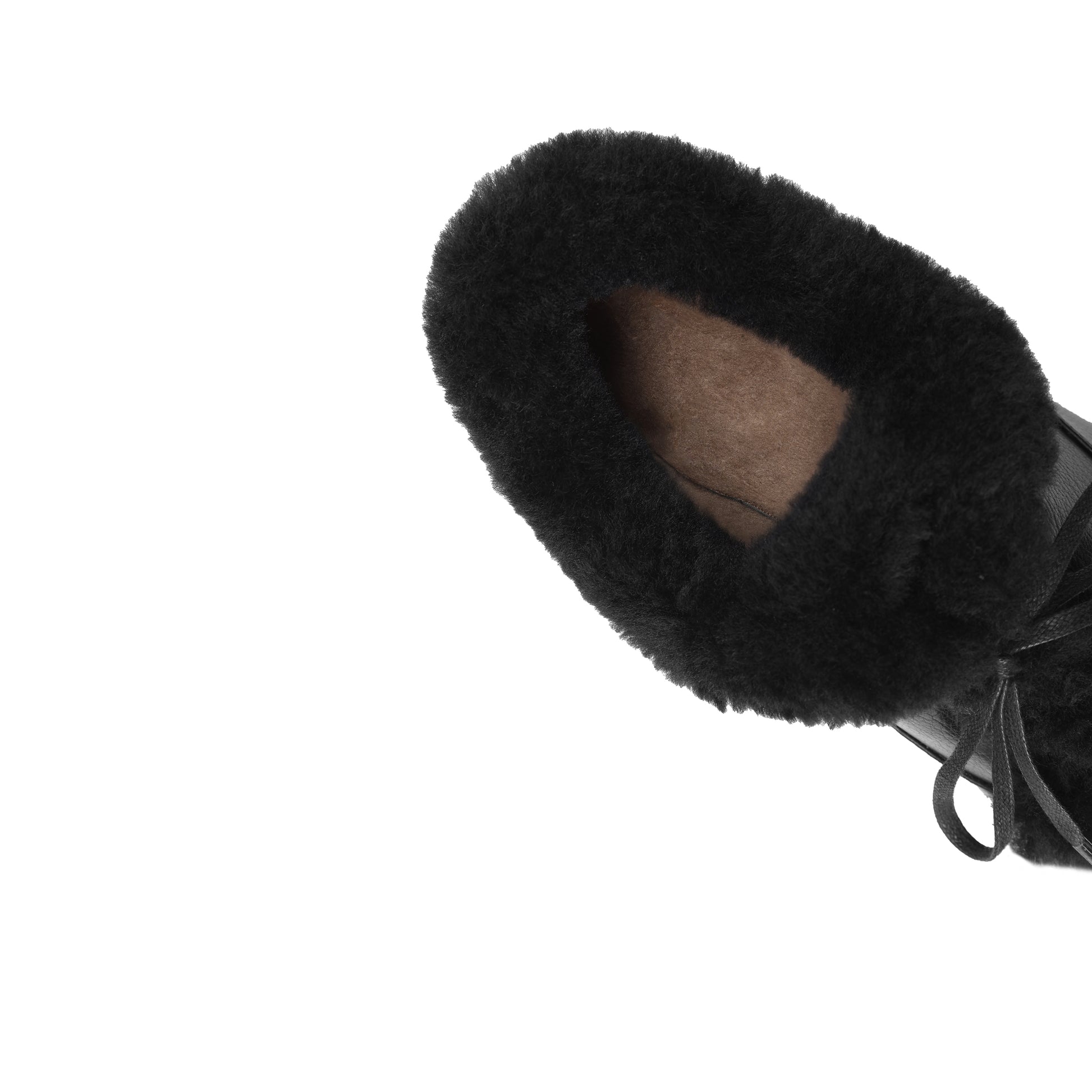 TinaCus Genuine Leather Handmade Fur Lining Pumps Women's Square Toe Mid Chunky Heels Lace up Oxford Shoes