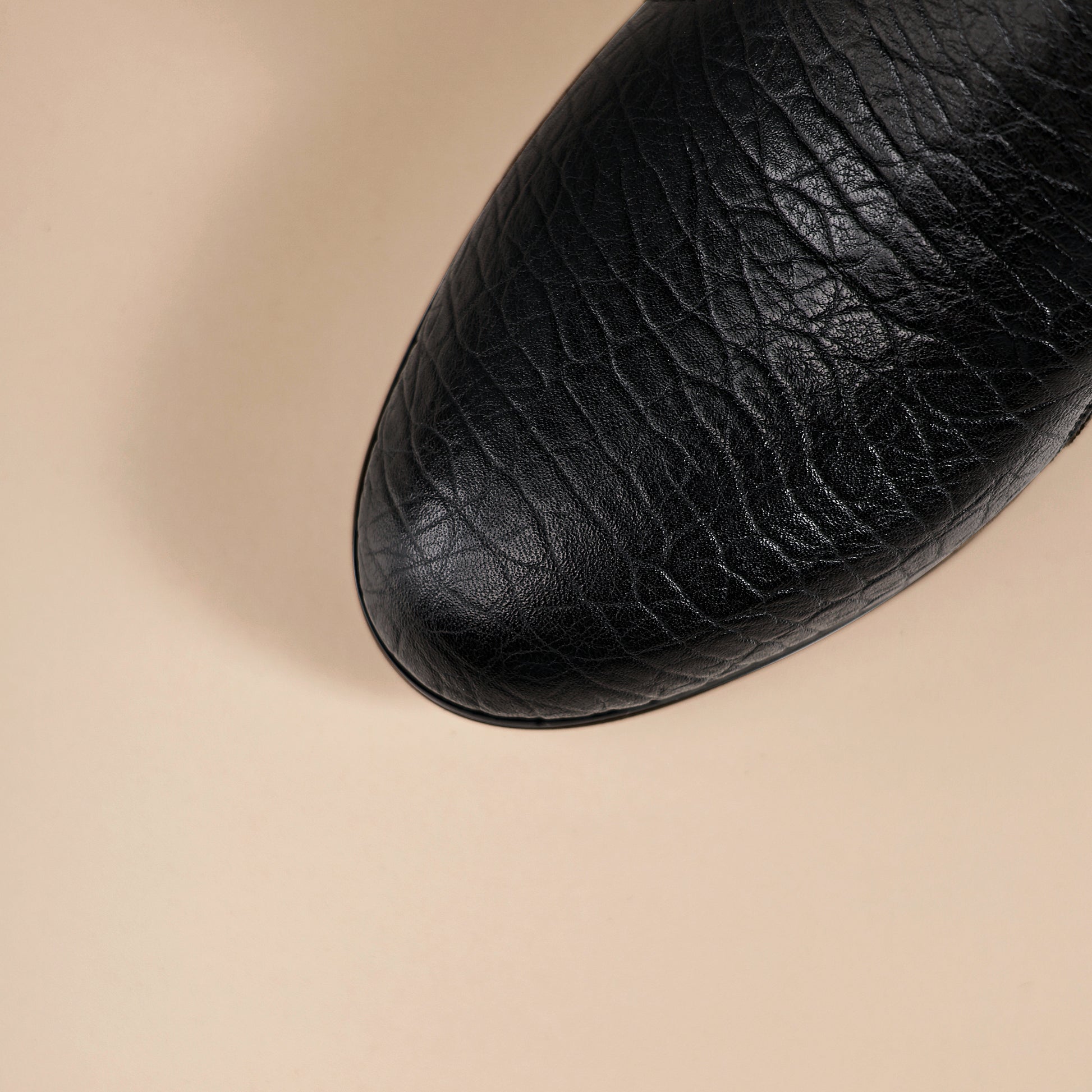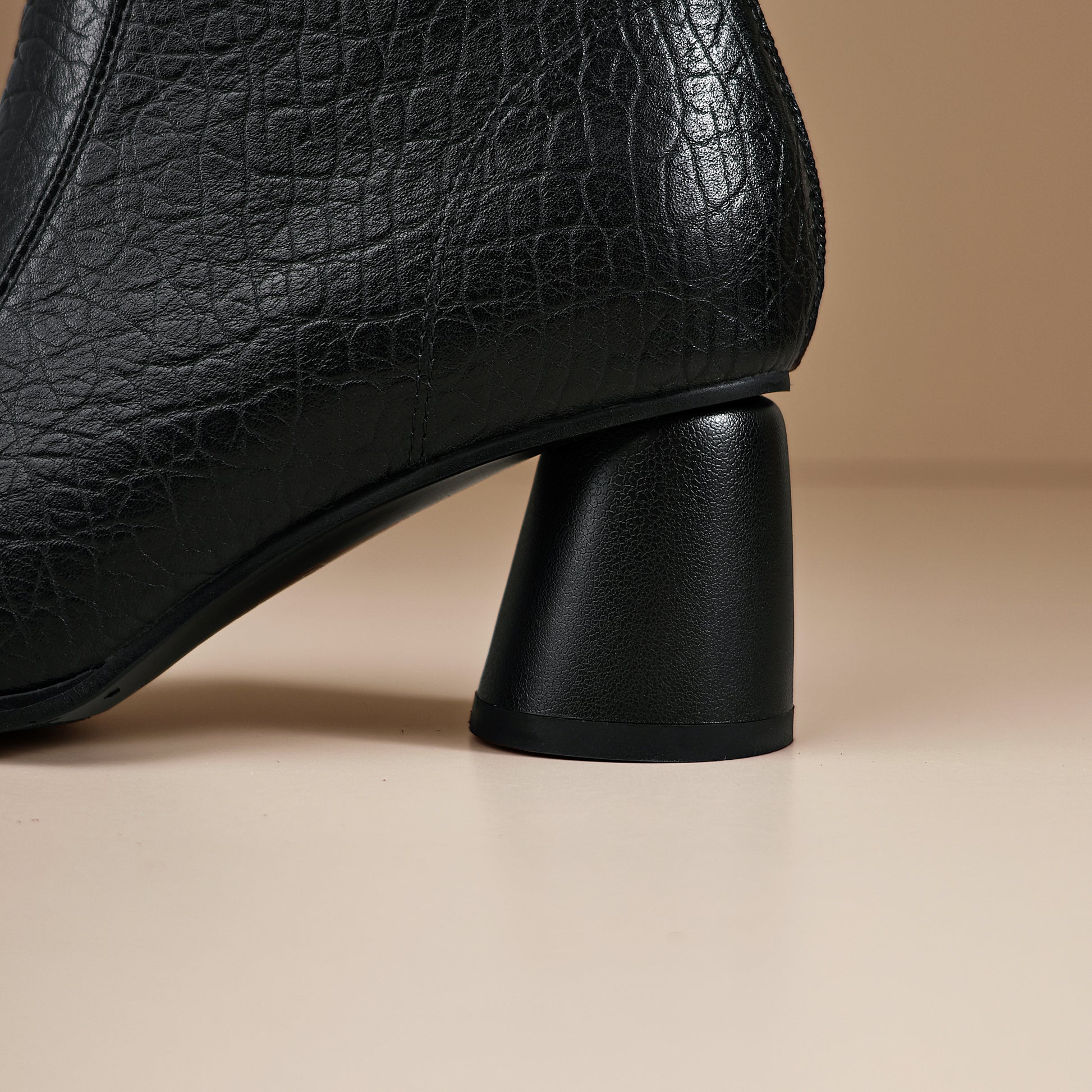 Ankle boots designed with round toe, back zipper, genuine leather and chunky heels can go with kinds of outfits