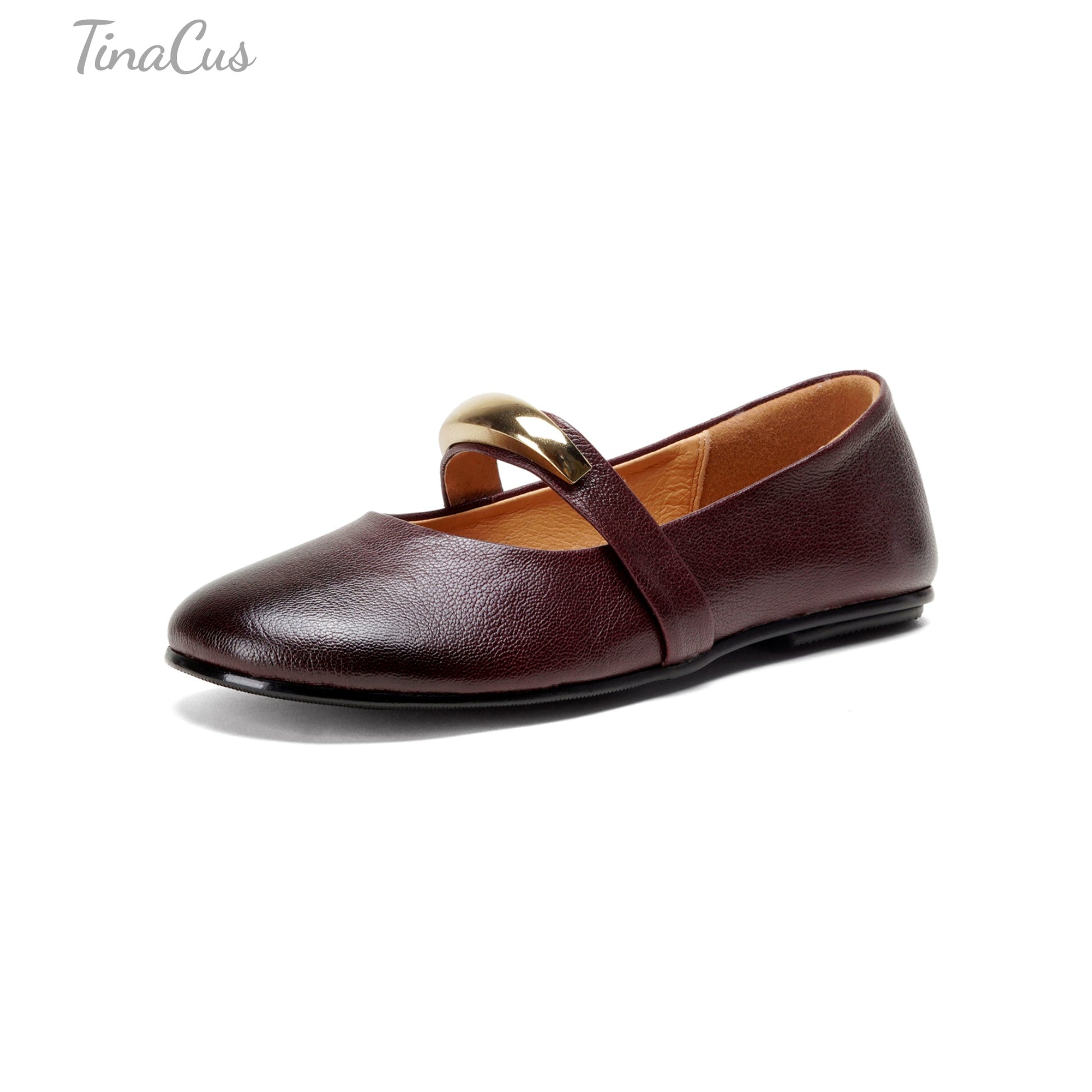 TinaCus Genuine Leather Women's Round Toe Slip on Cute Mary Jane Shoes Comfortable Flats