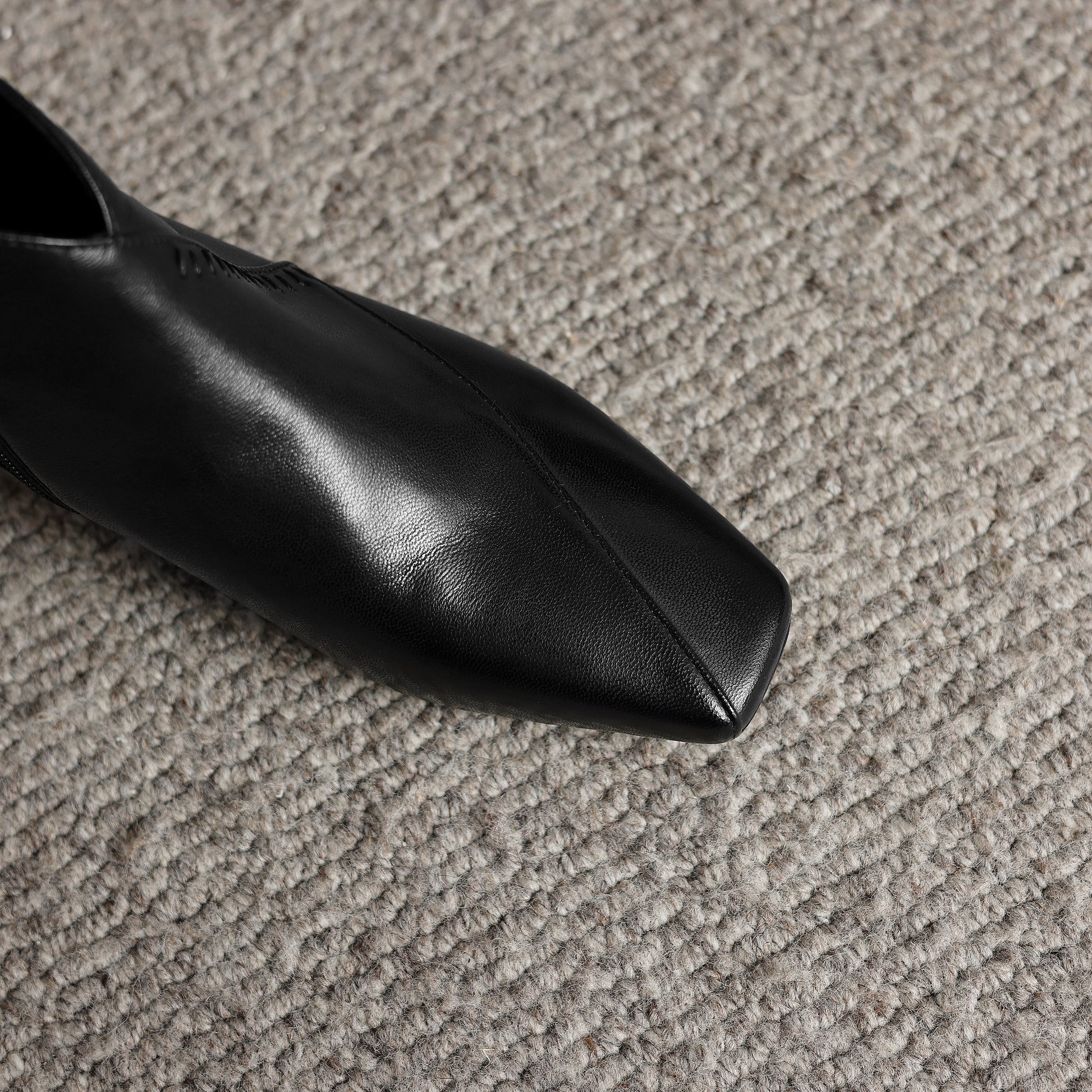 Genuine leather ankle boots with square toe, zipper and chunky heels can go with kinds of outfits