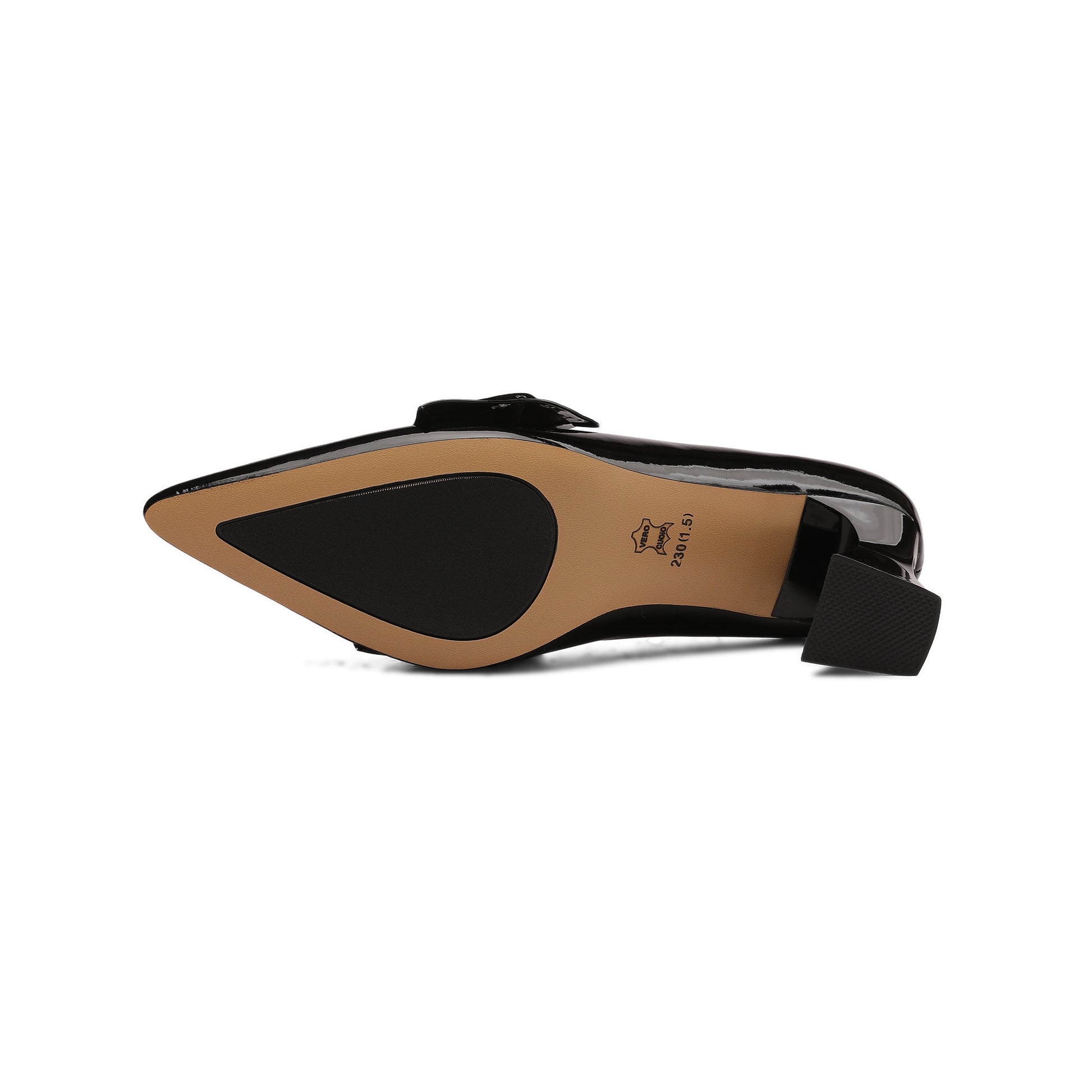 Stylish pump shoes feature in patent leather, pointed toe,dot decor and easy slip on closure.Soft insole could make you feel comfortable.