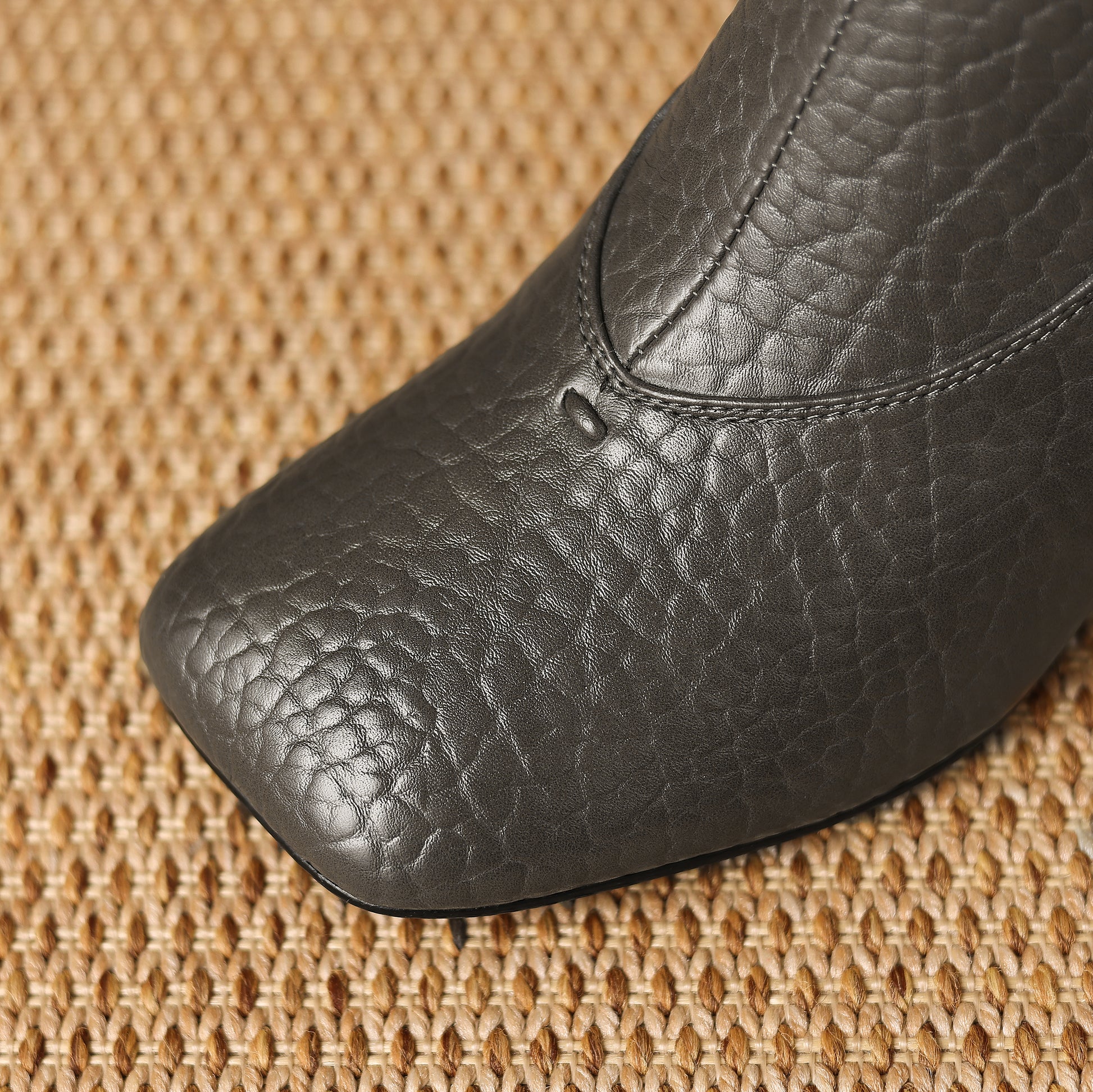 Ankle boots designed with genuine leather, square toe, mid heels and zipper can go with kinds of outfits