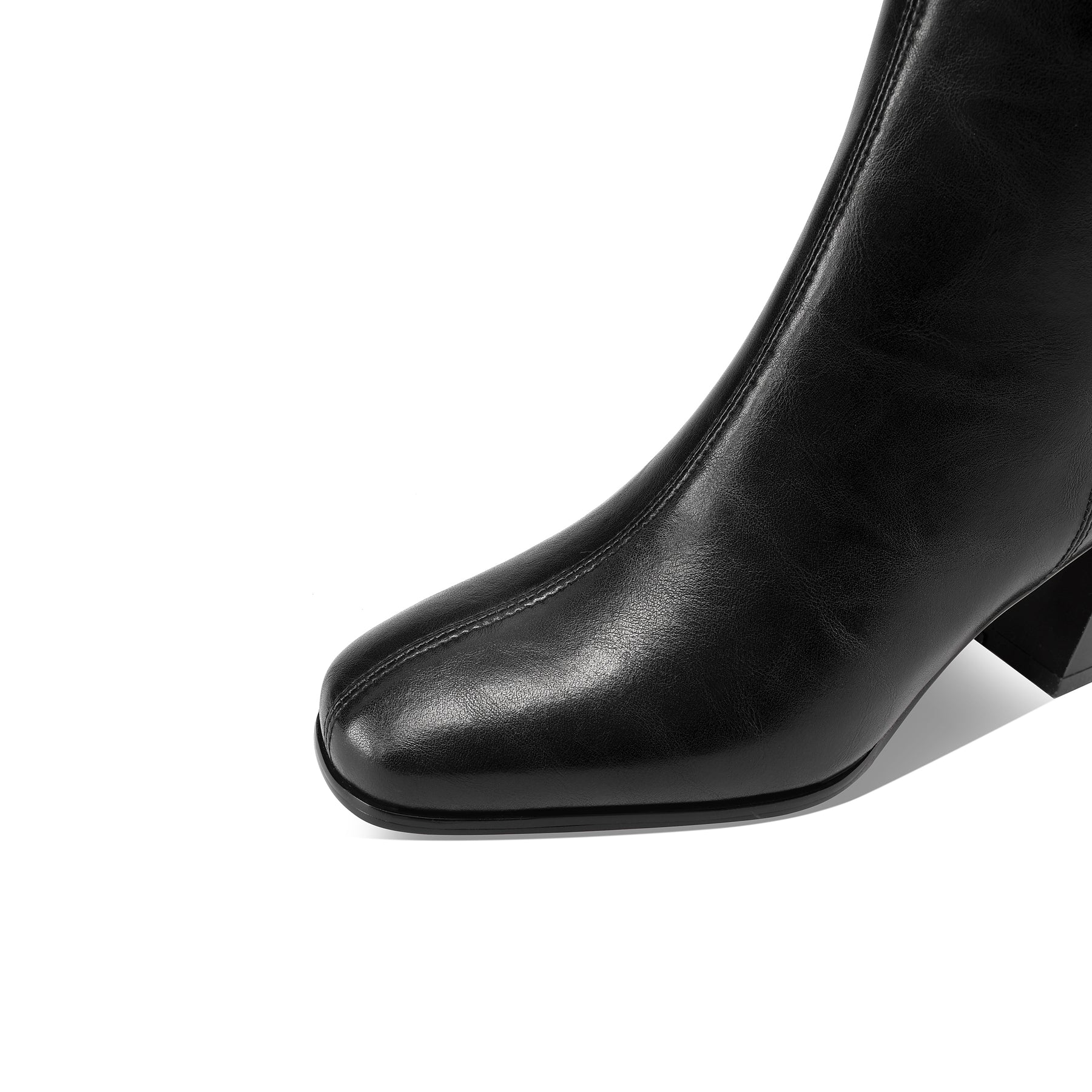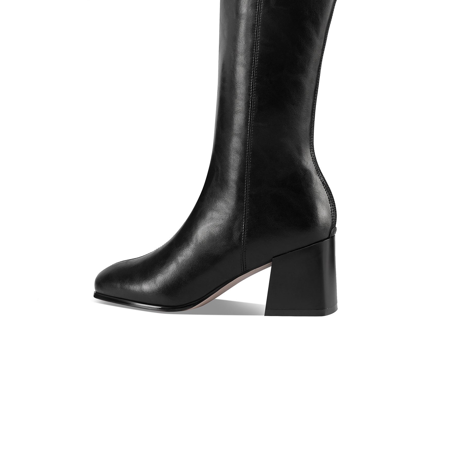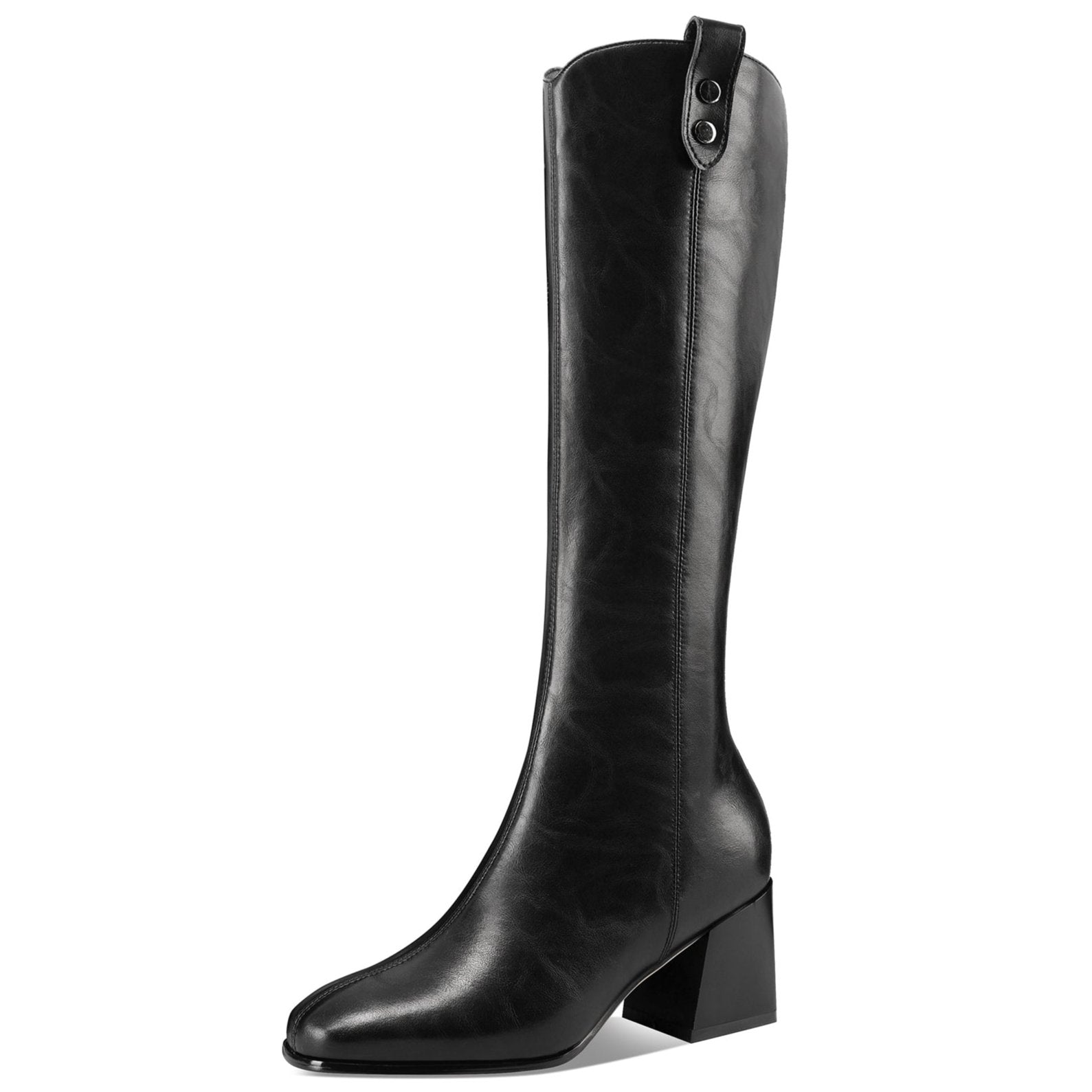 TinaCus Handmade Women's Genuine Leather Back Zipper Round Toe Chunky Heel Knee High Boots