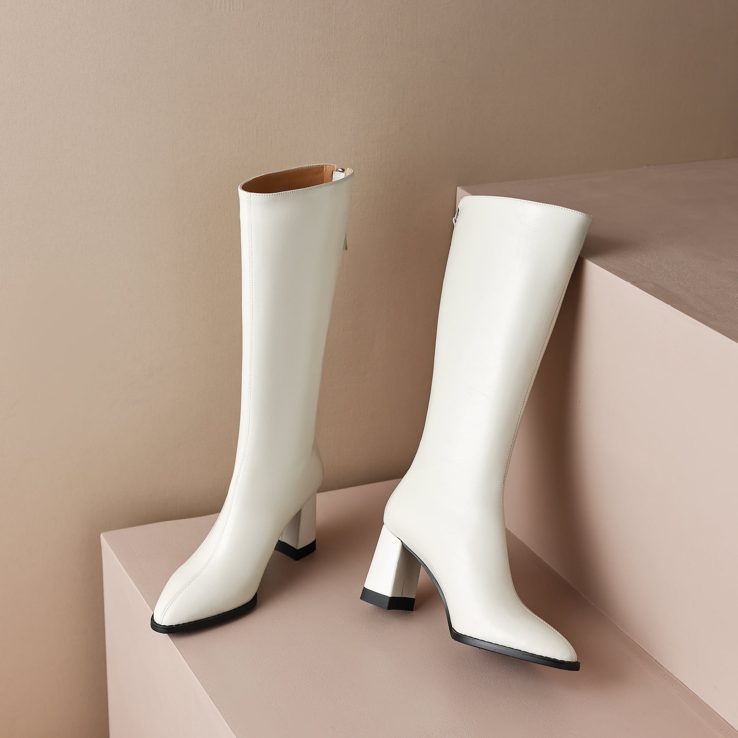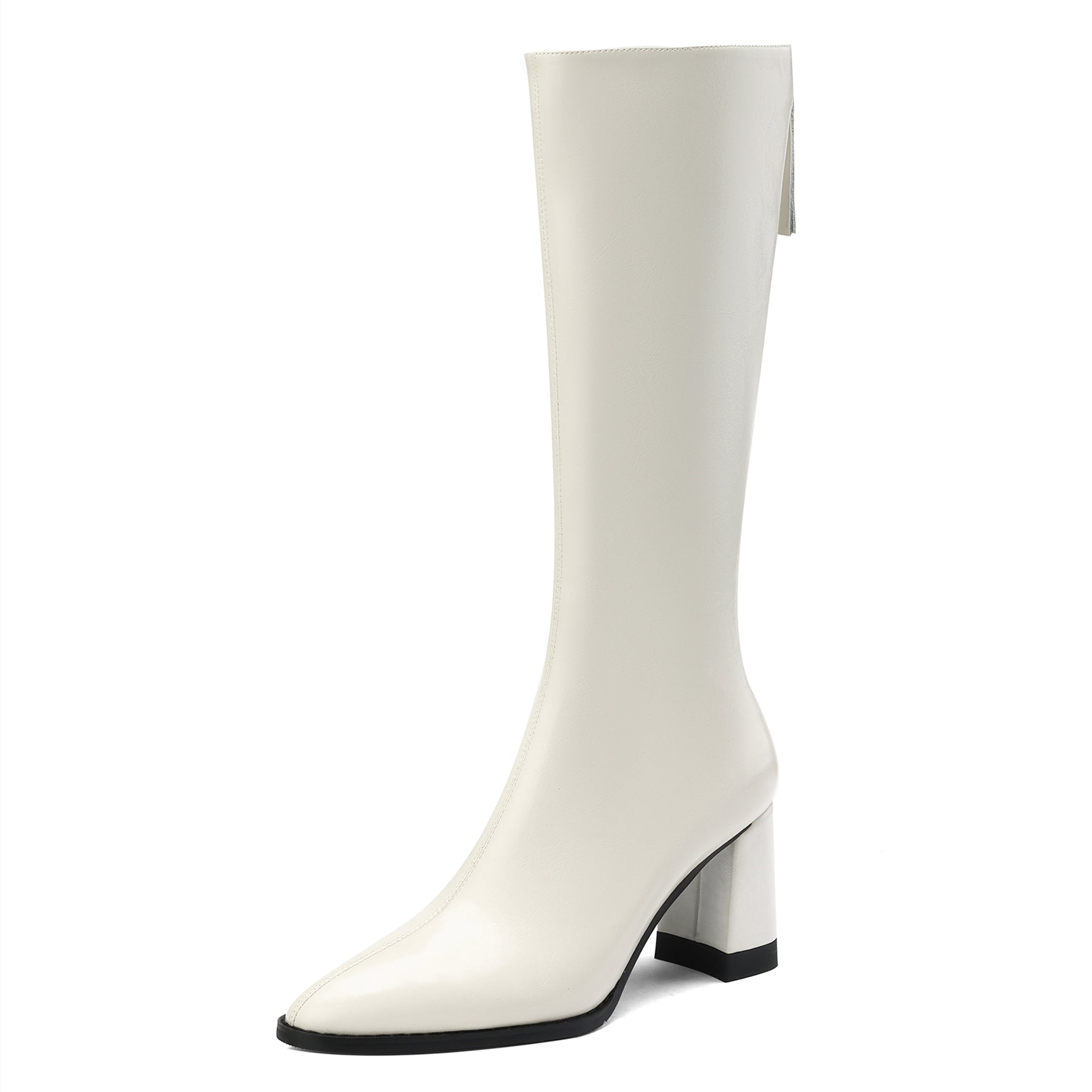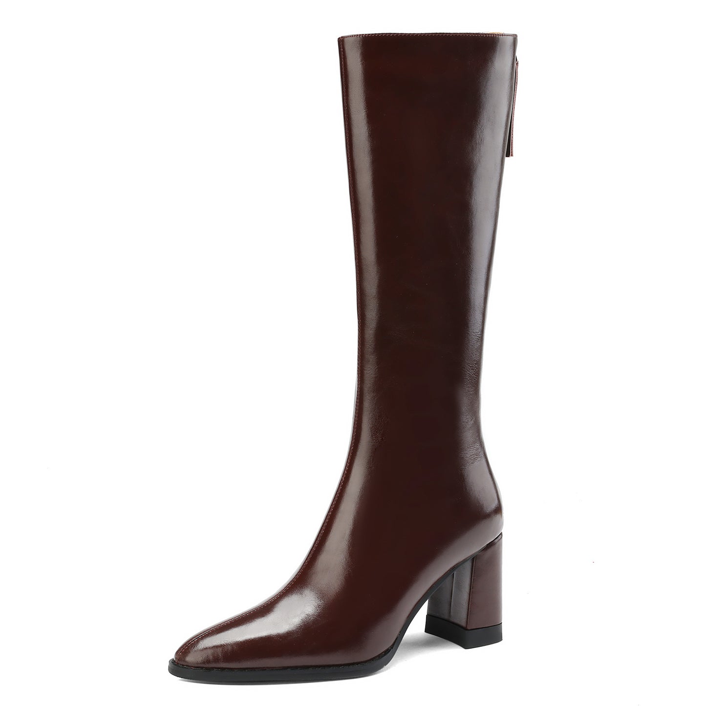 TinaCus Handmade Women's Genuine Leather Chunky Heel Zip Up Knee High Boots