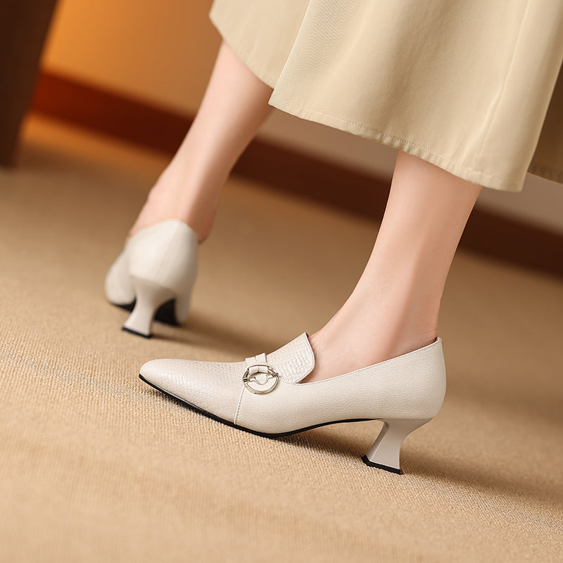 The low heel pumps crafted with high-quality materials and precise stitching.