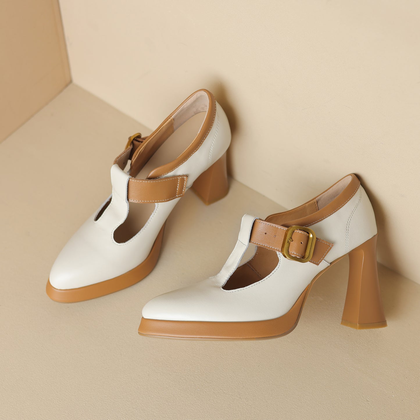 TinaCus Handmade Women's Genuine Leather Platform High Heel Pointed Toe Buckle Pumps Shoes