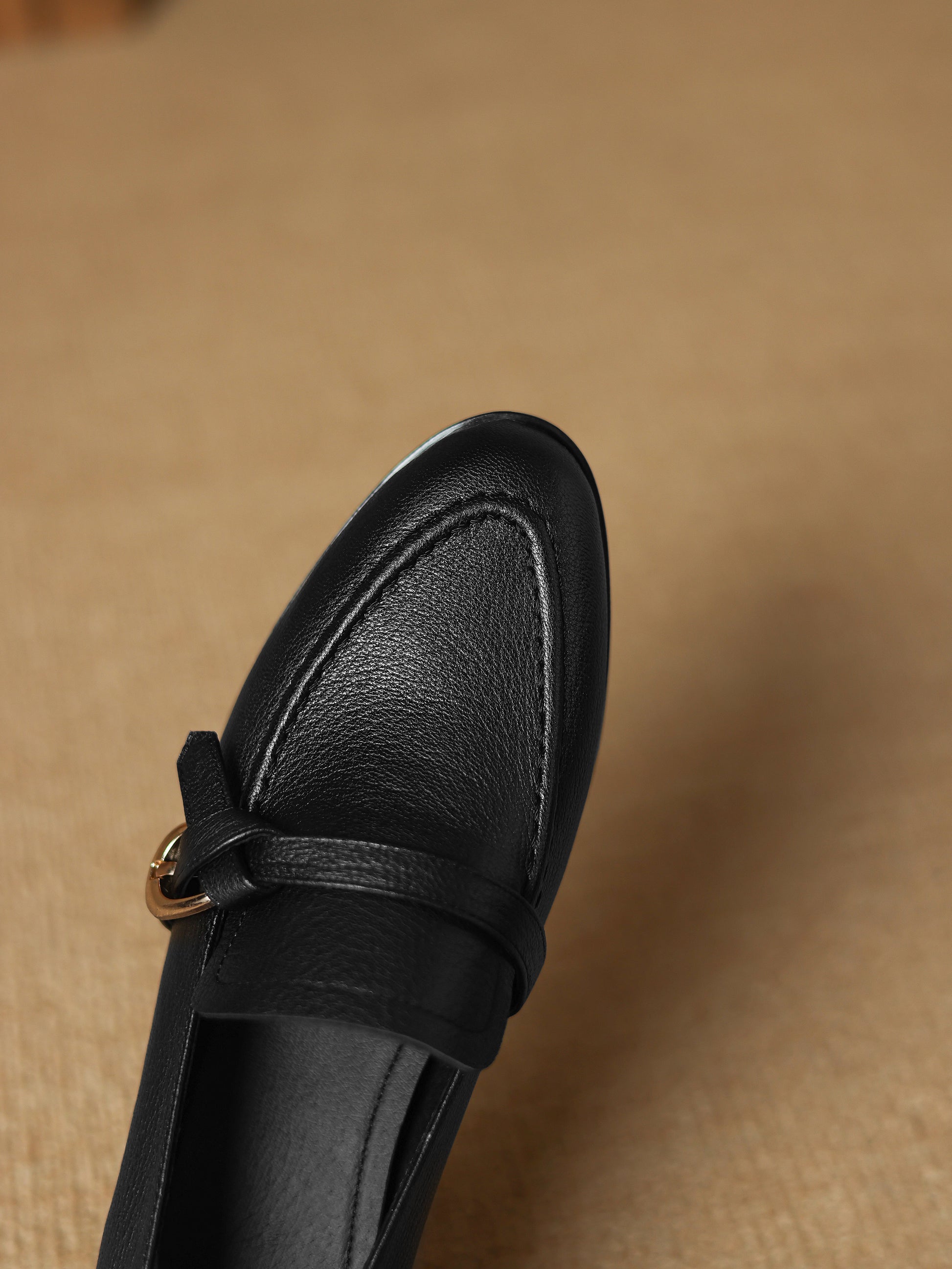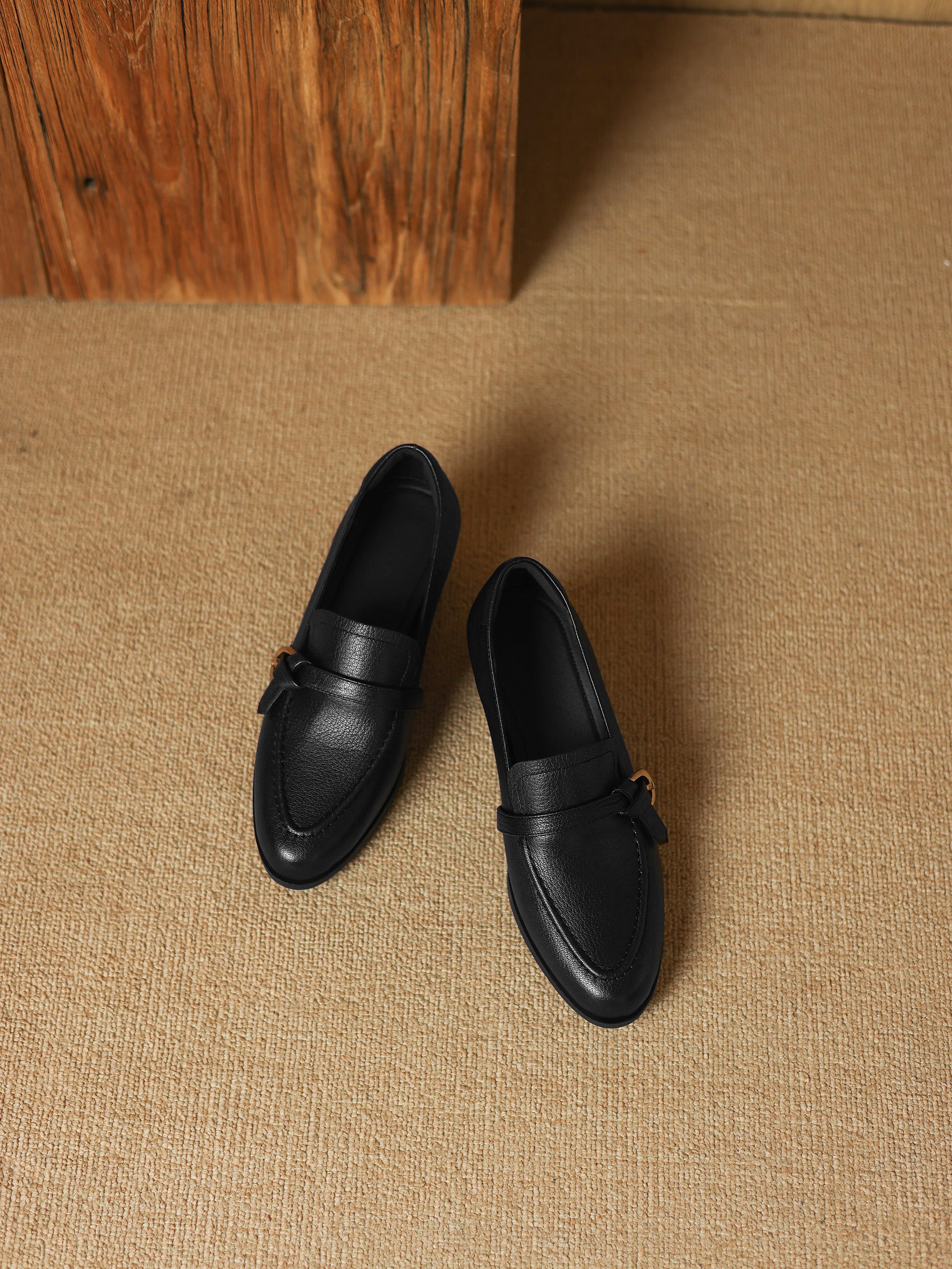 TinaCus Handmade Women's Genuine Leather Round Toe Slip-on Office Loafer Shoes with Decor Knot