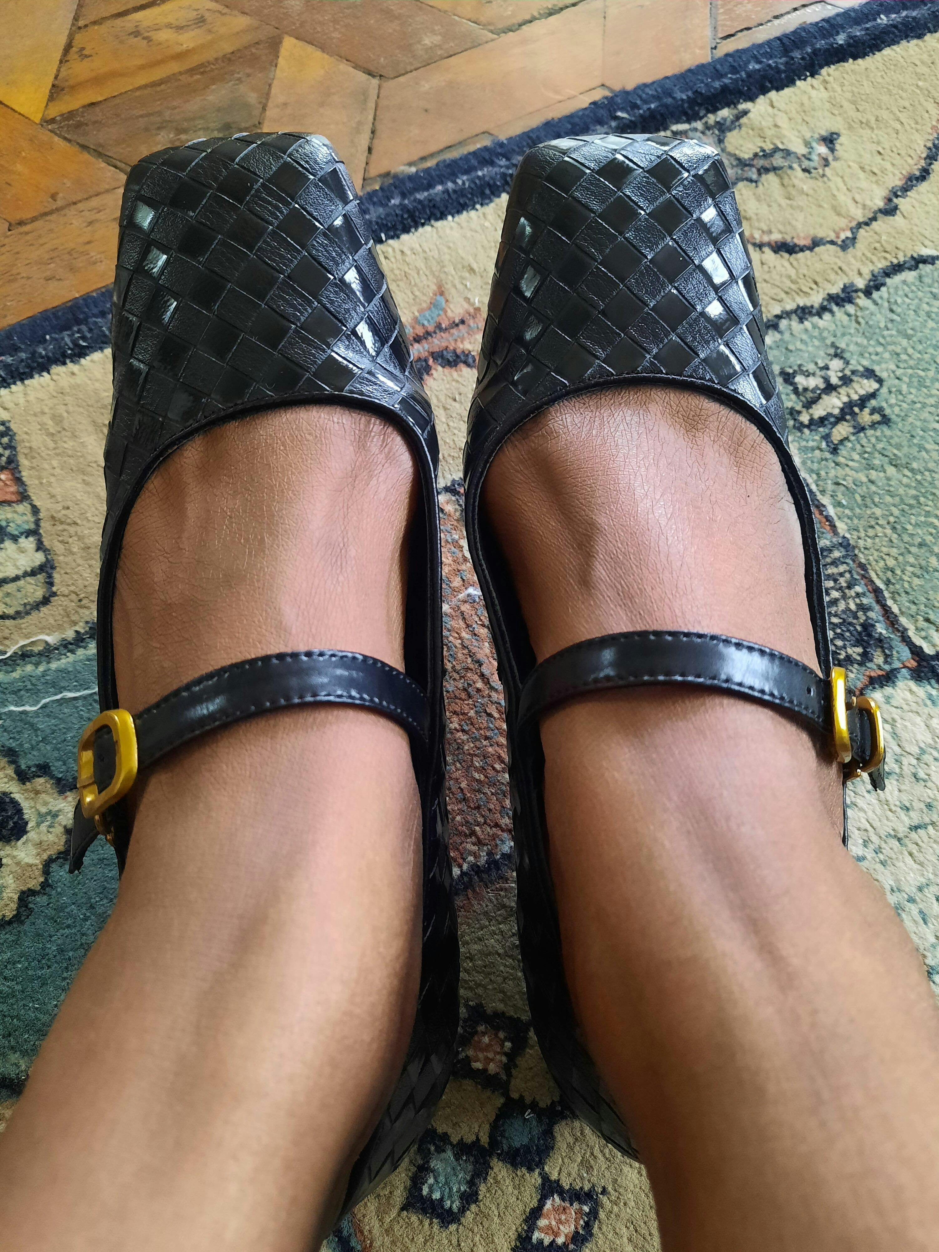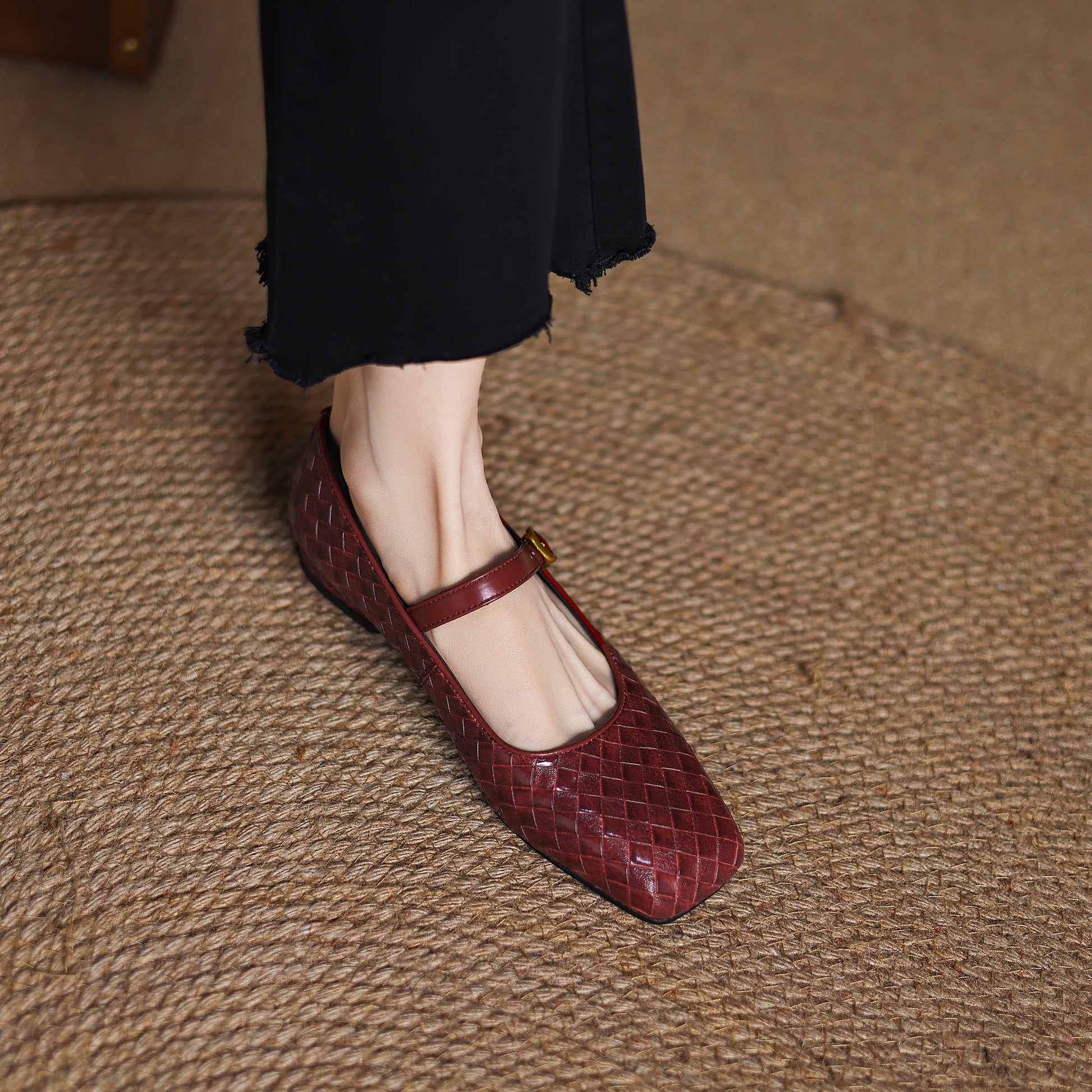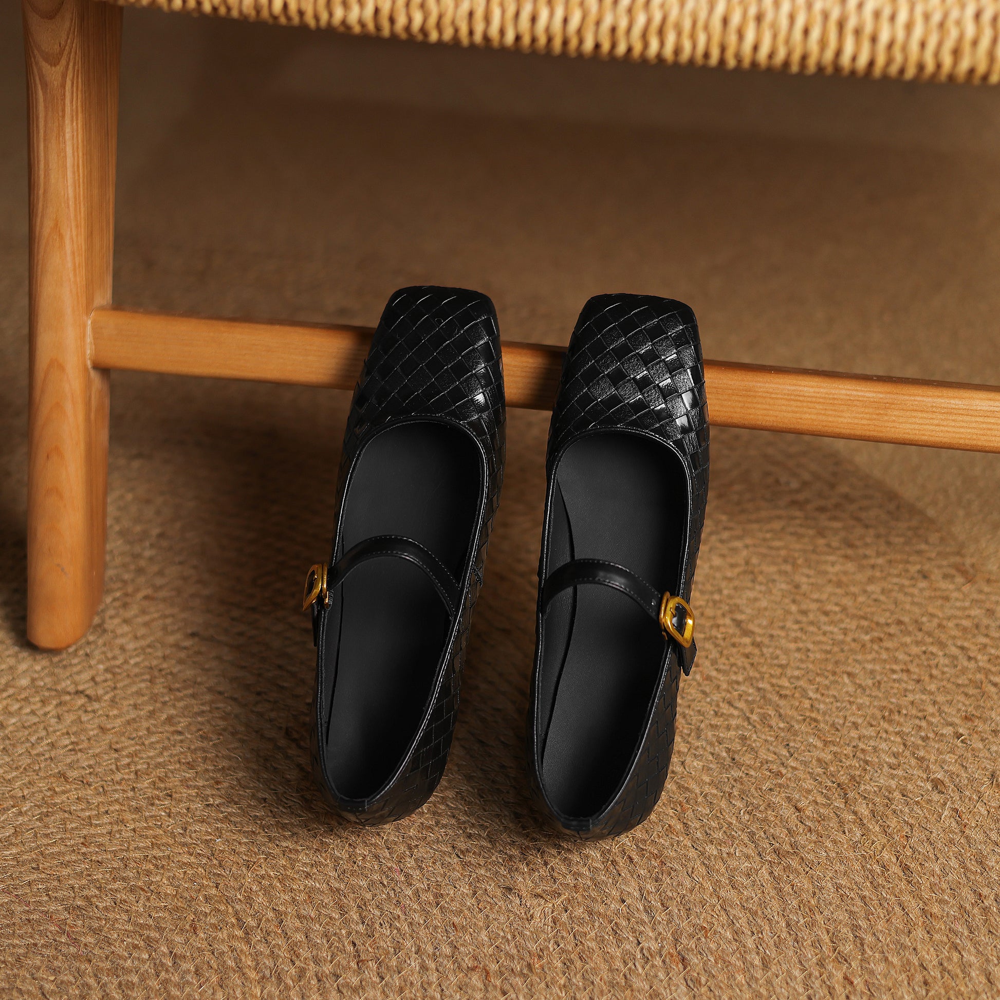 TinaCus Handmade Women's Genuine Leather Weave Buckle Square Toe Mary Jane Flats