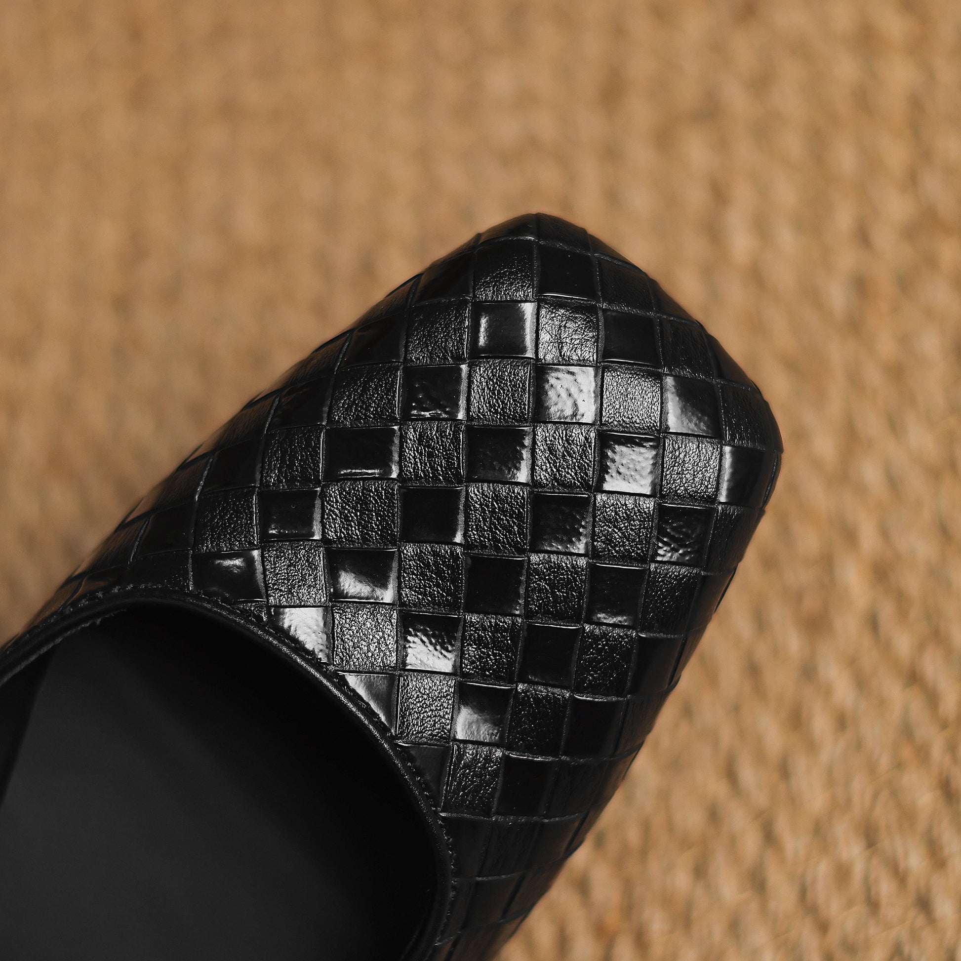 Features an elegant woven leather pattern across the entire upper, creating a sophisticated and textured appearance.