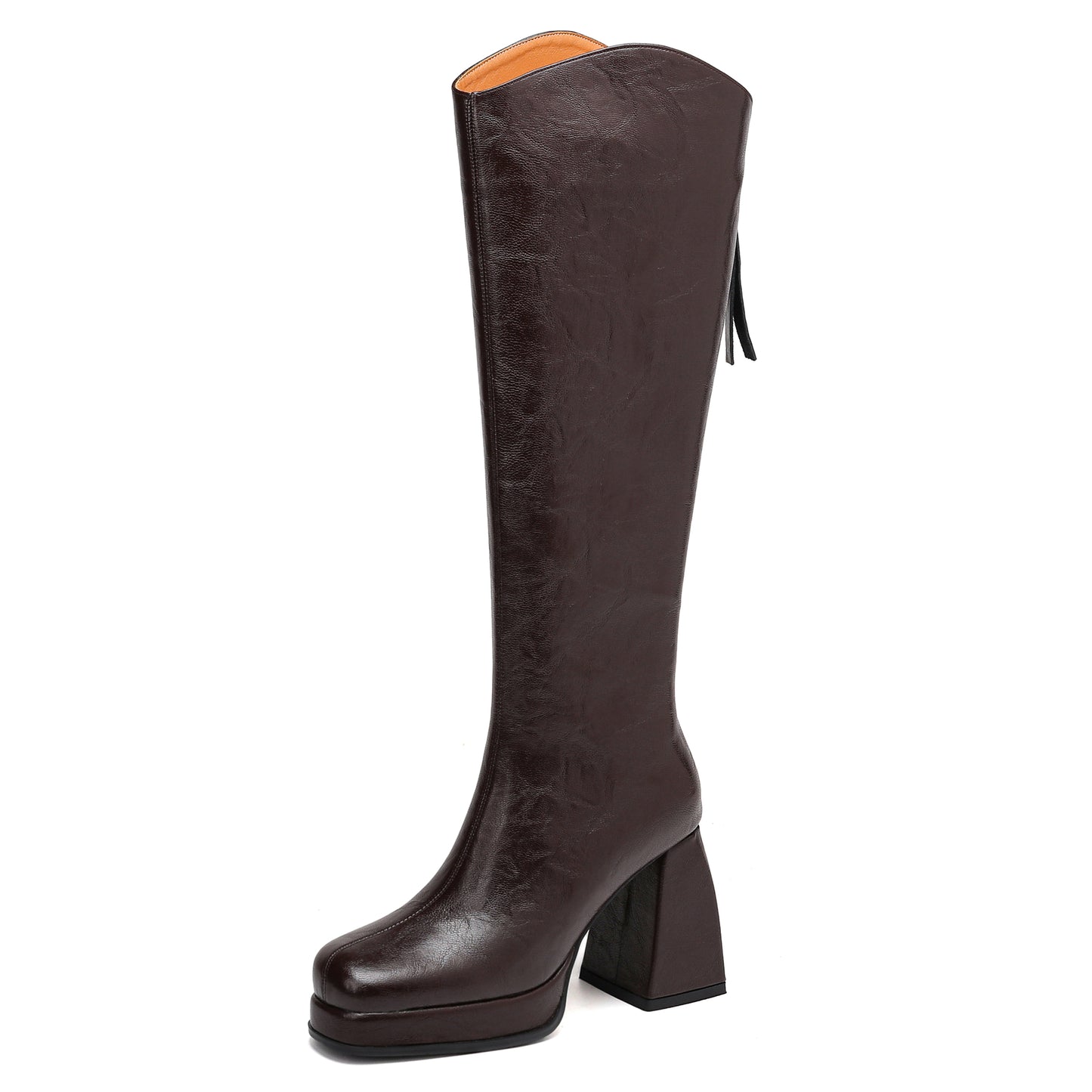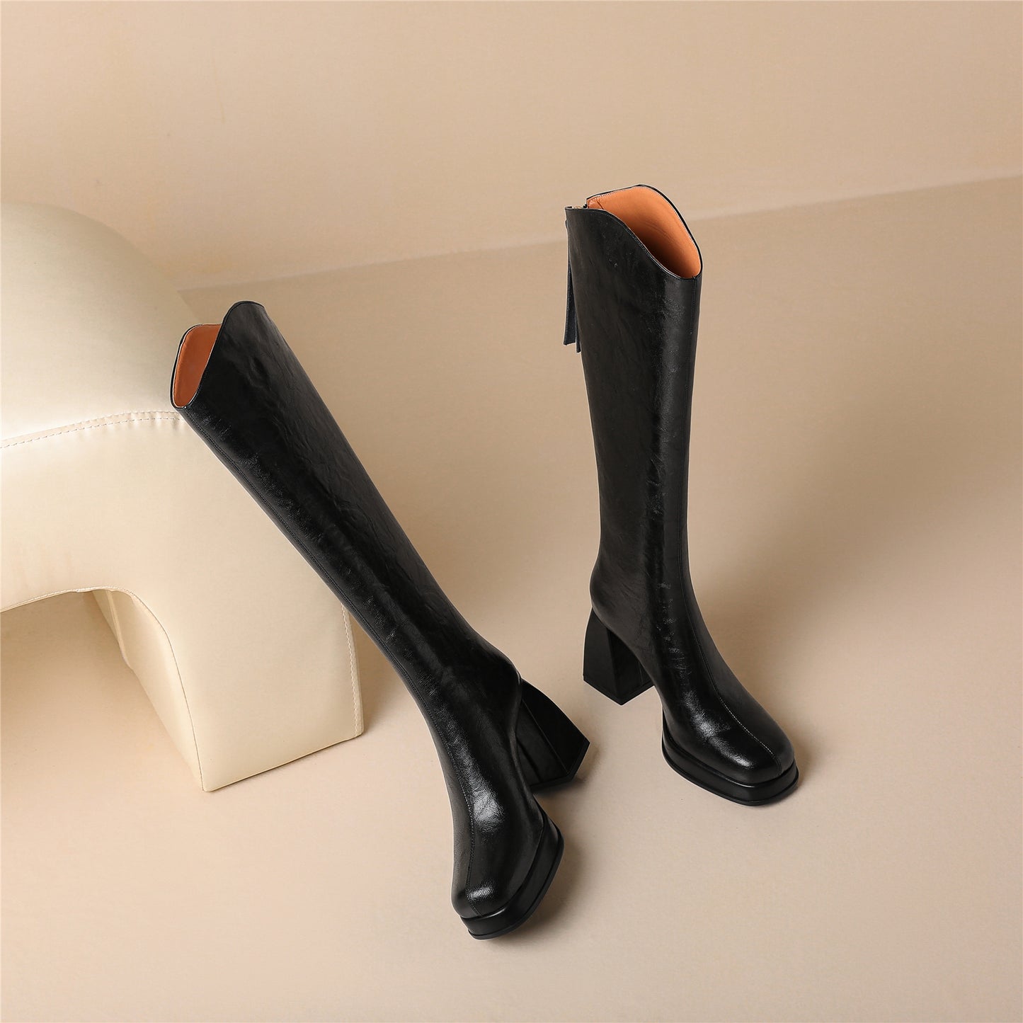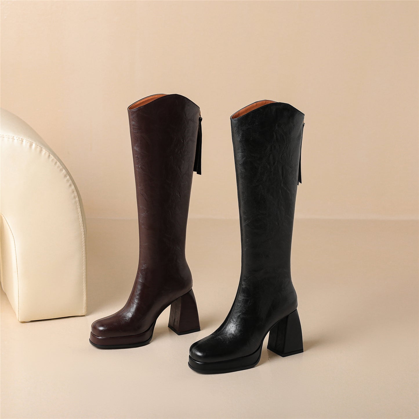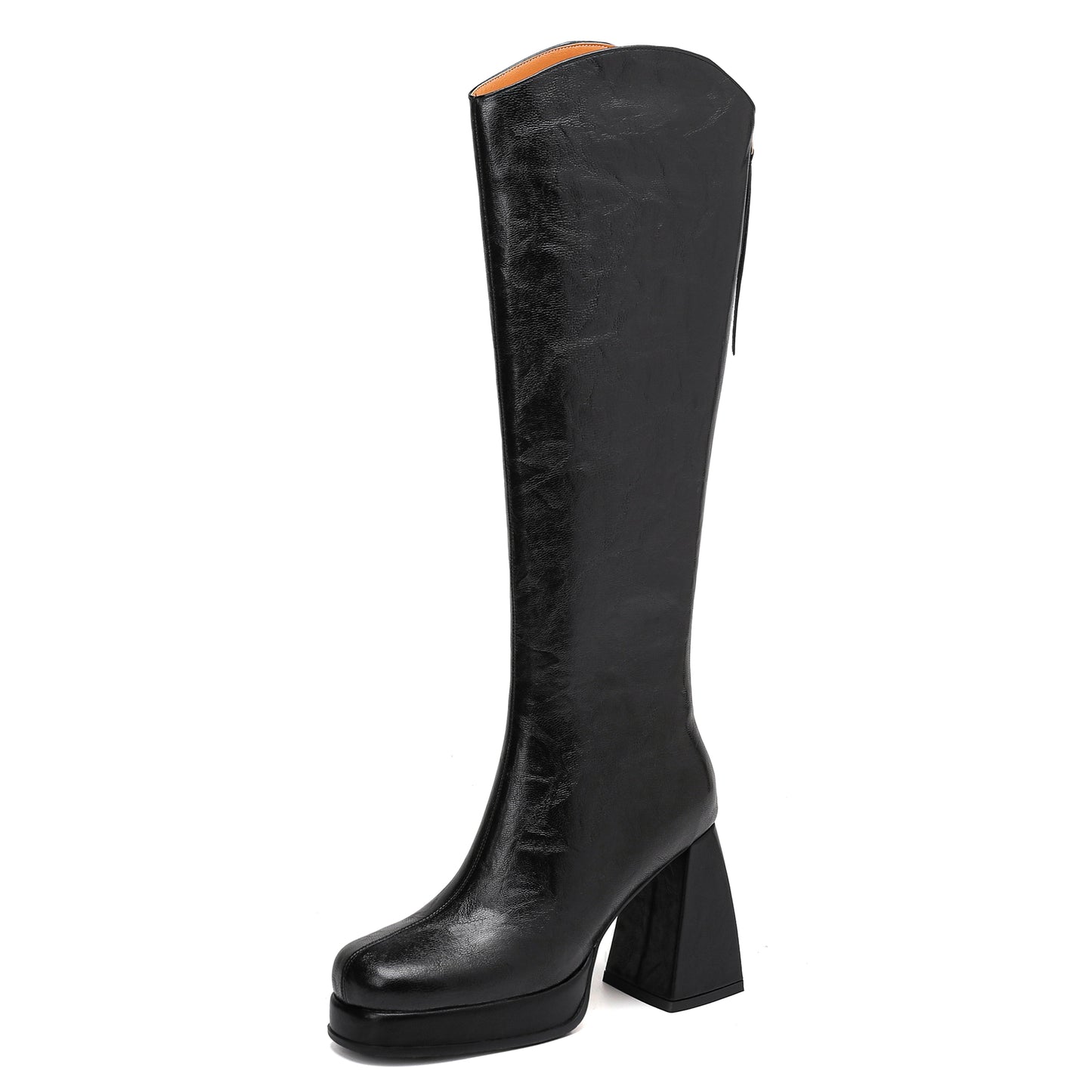 TinaCus Handmade Women's Genuine Leather Zip Up High Heel Platform Knee High Boots