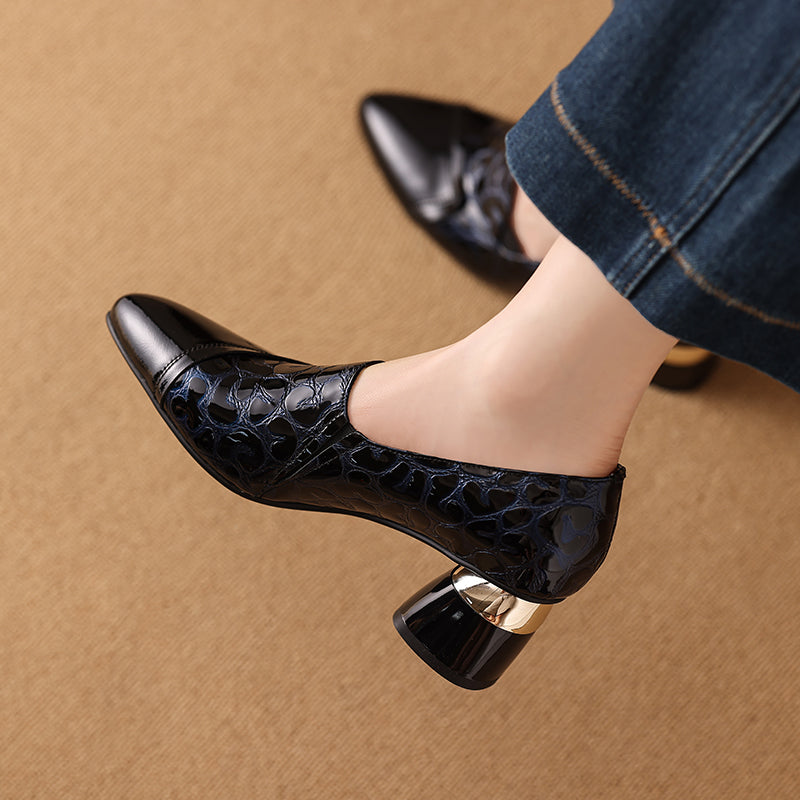 - These women's leather chunky low heel pumps are perfect for various occasions.