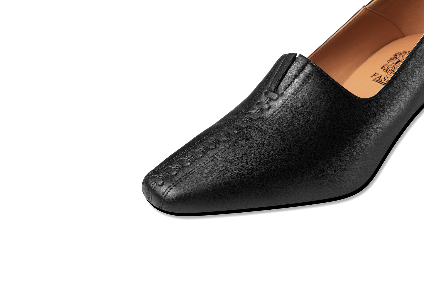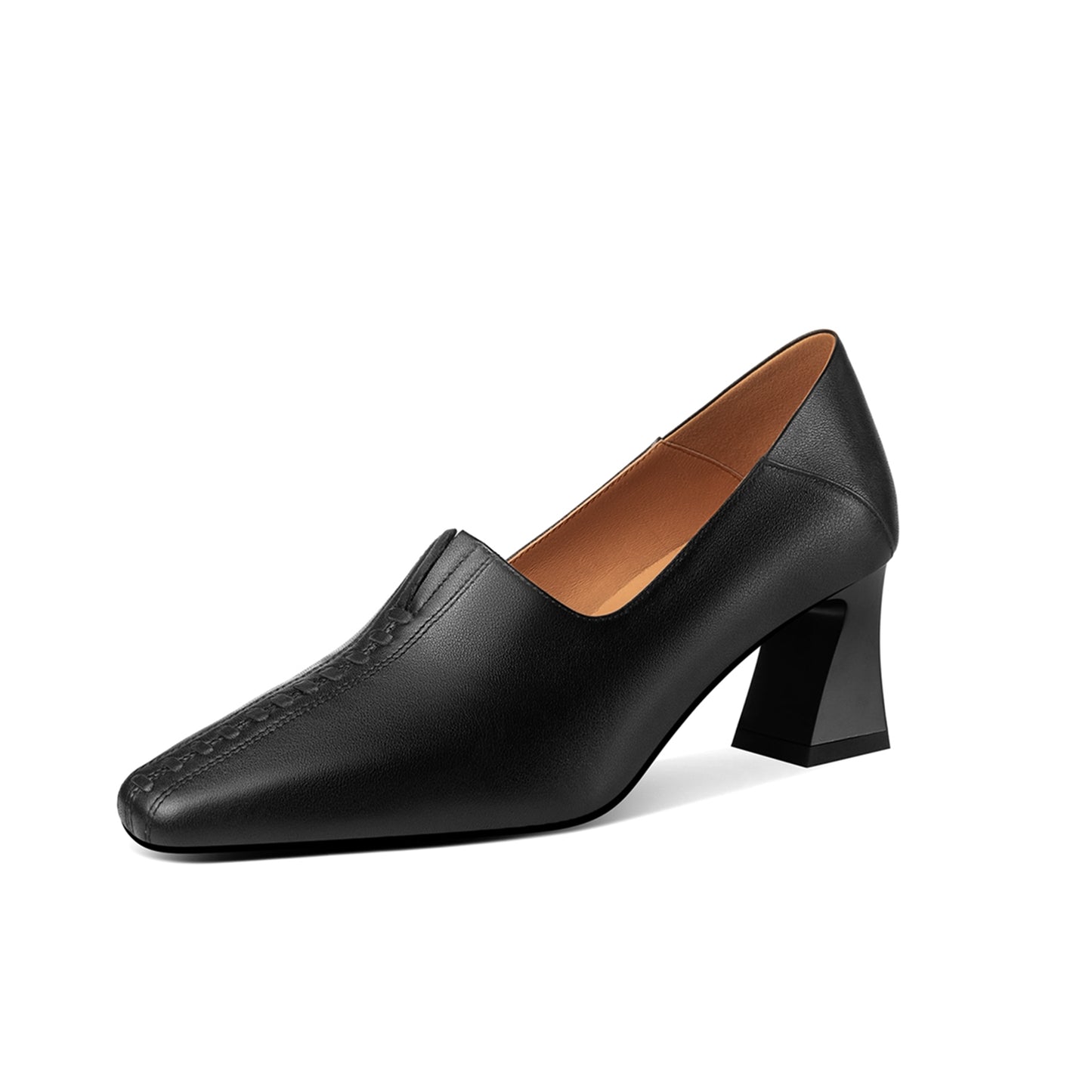 Pumps shoes with genuine leather, slip on and mid heel can go with your dress, jeans and pants.