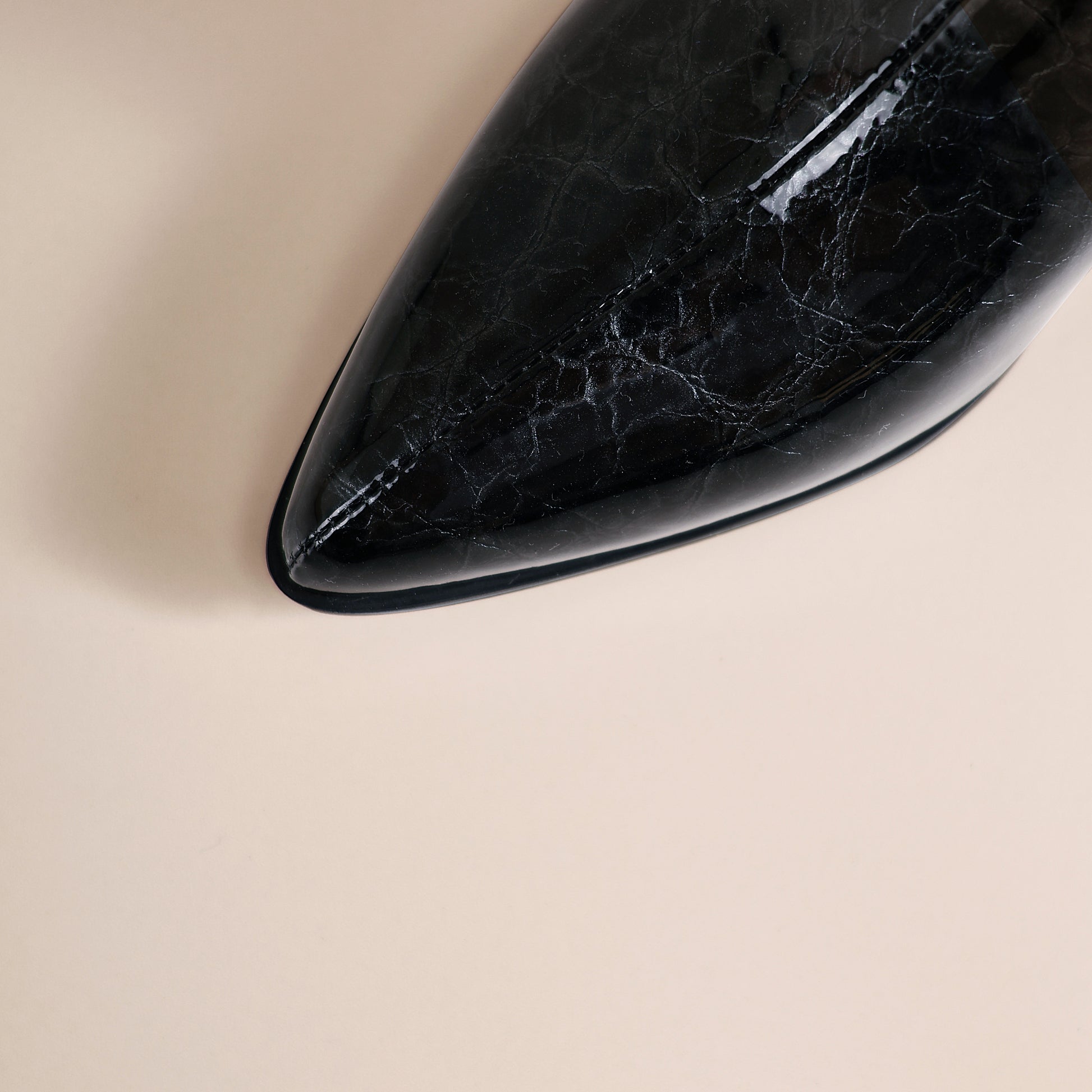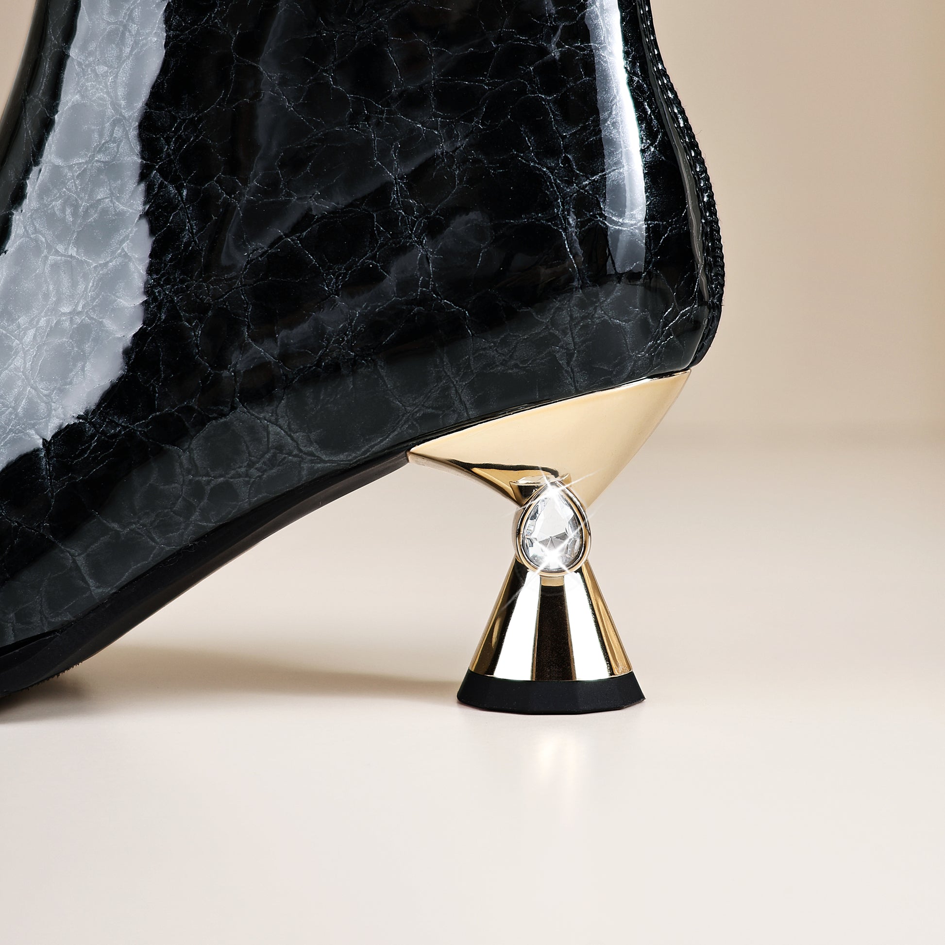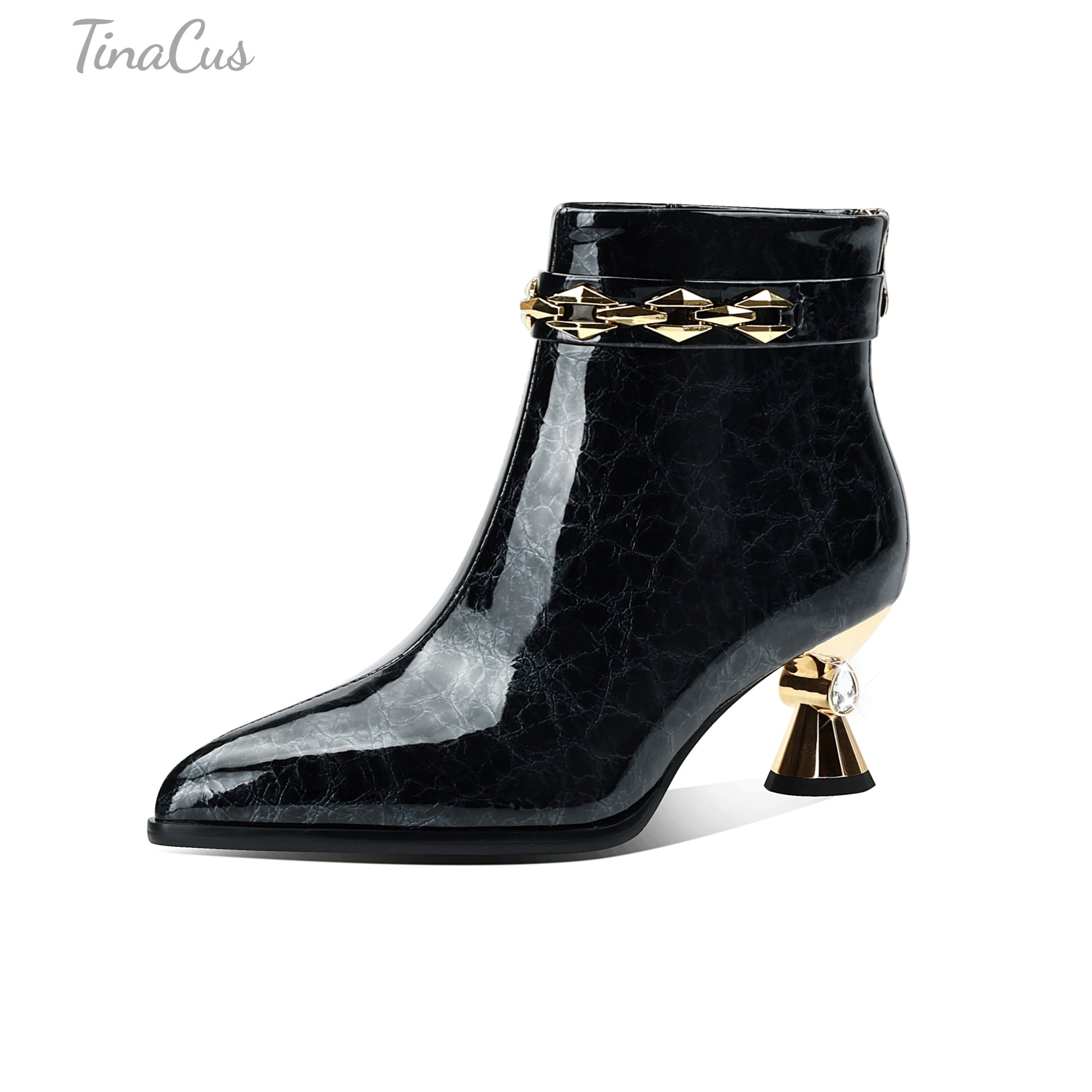 TinaCus Patent Leather Ankle Boots Women's Pointed Toe Handmade Mid Heels Zip up Booties with Chain