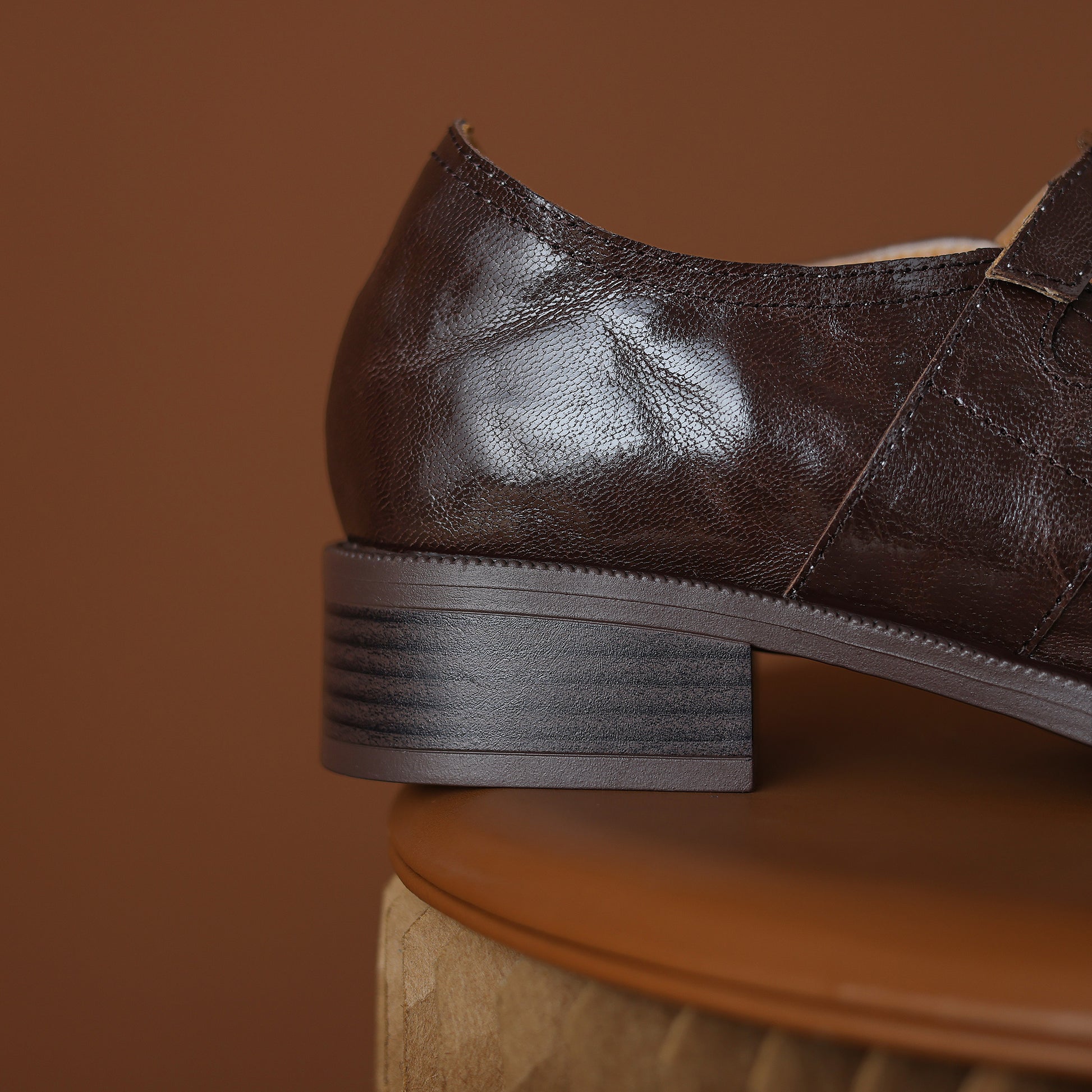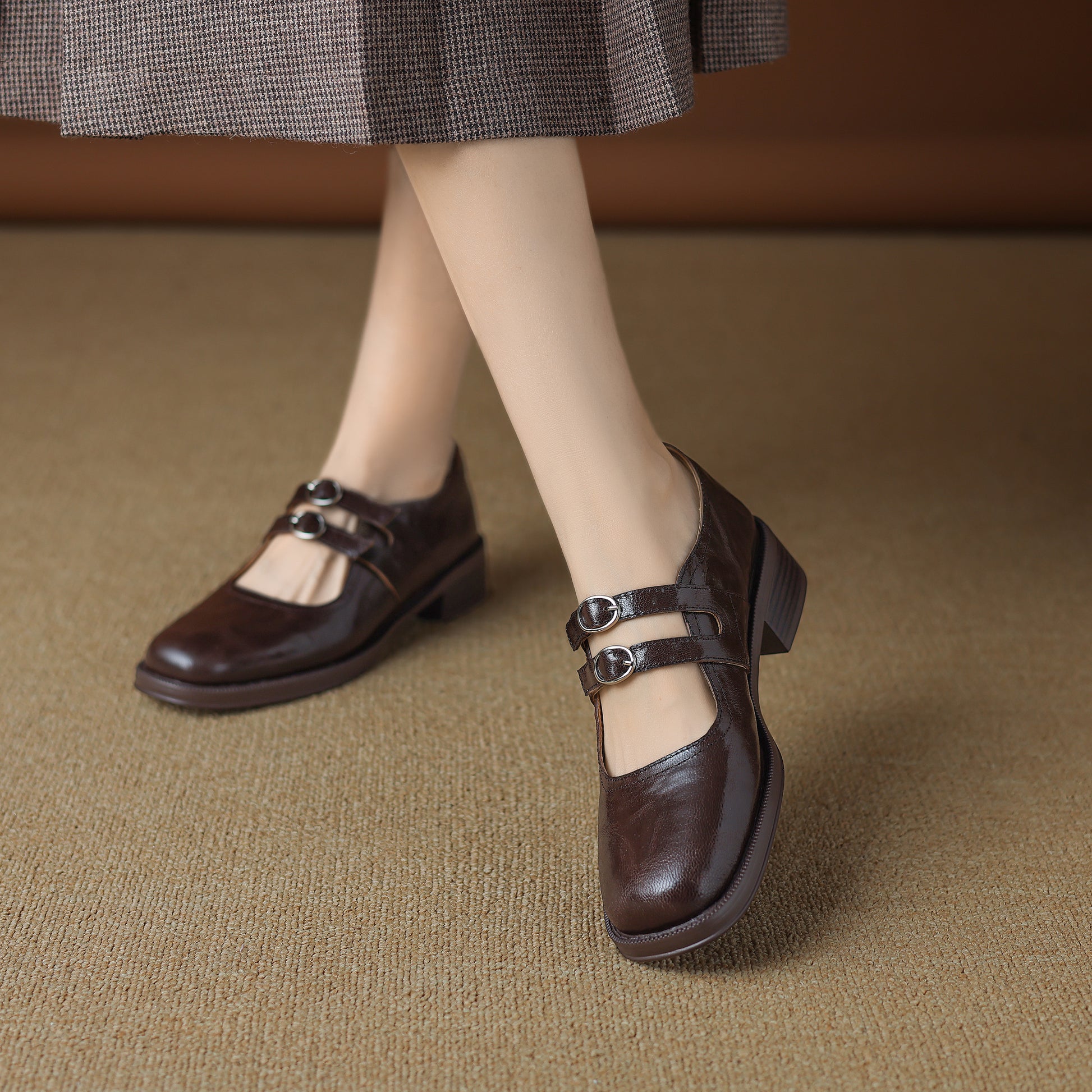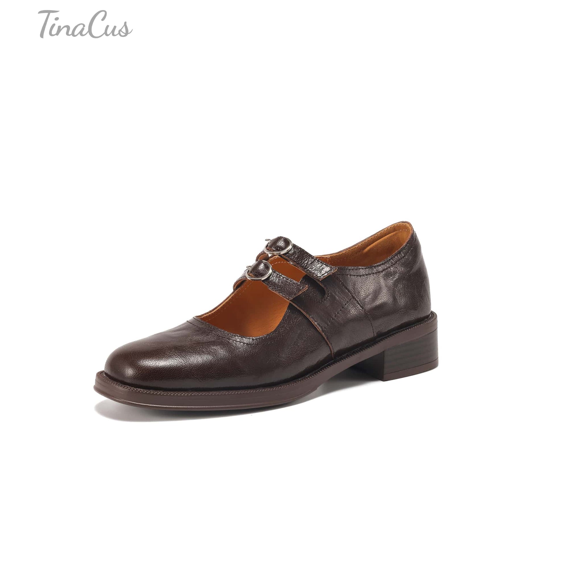 TinaCus Handmade Women's Genuine Leather Square Toe Mary Janes for Women with Double Straps Buckle