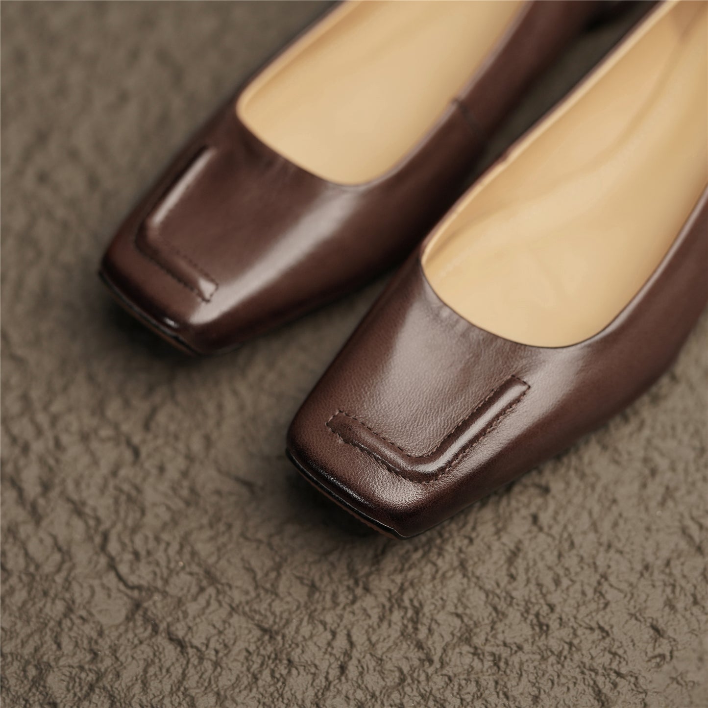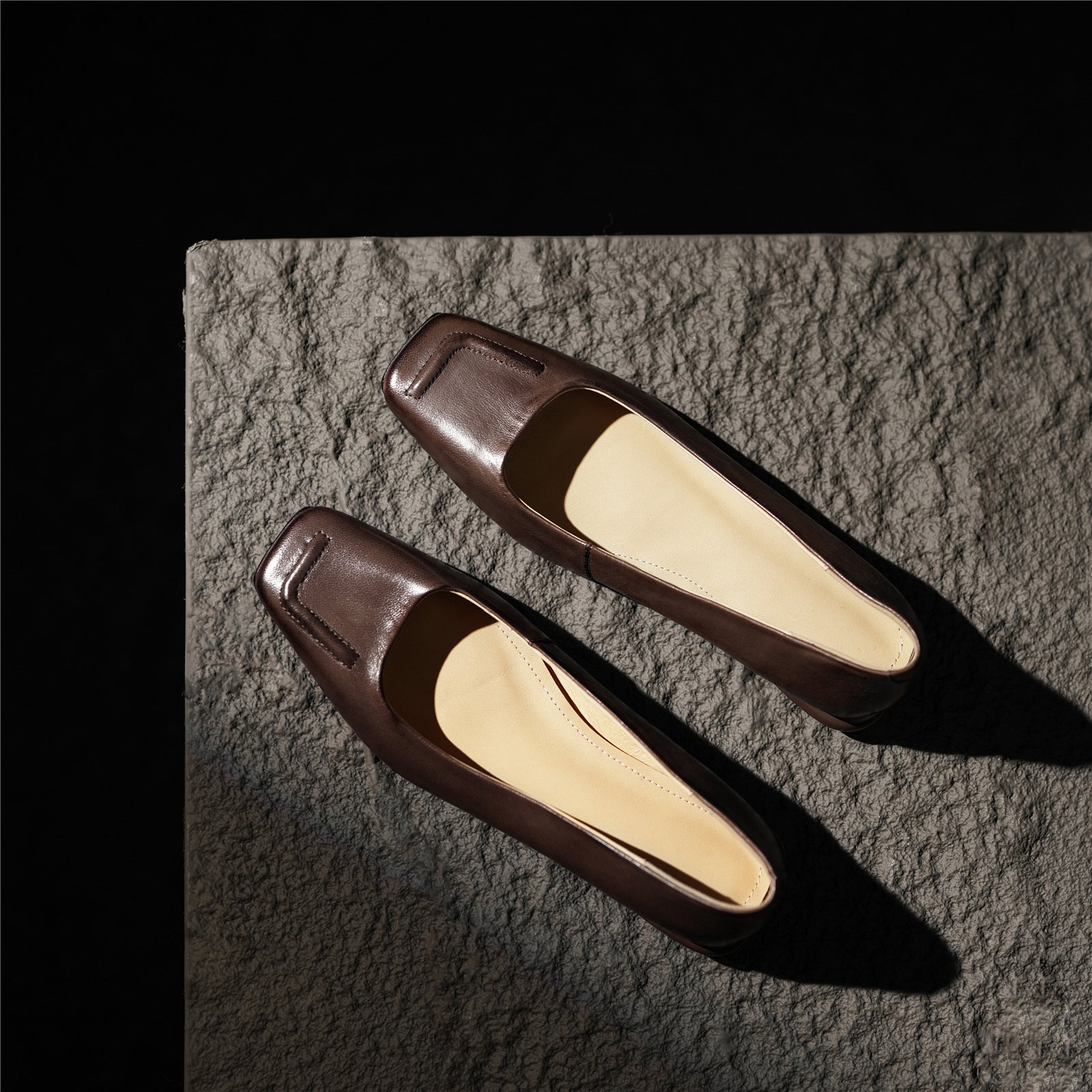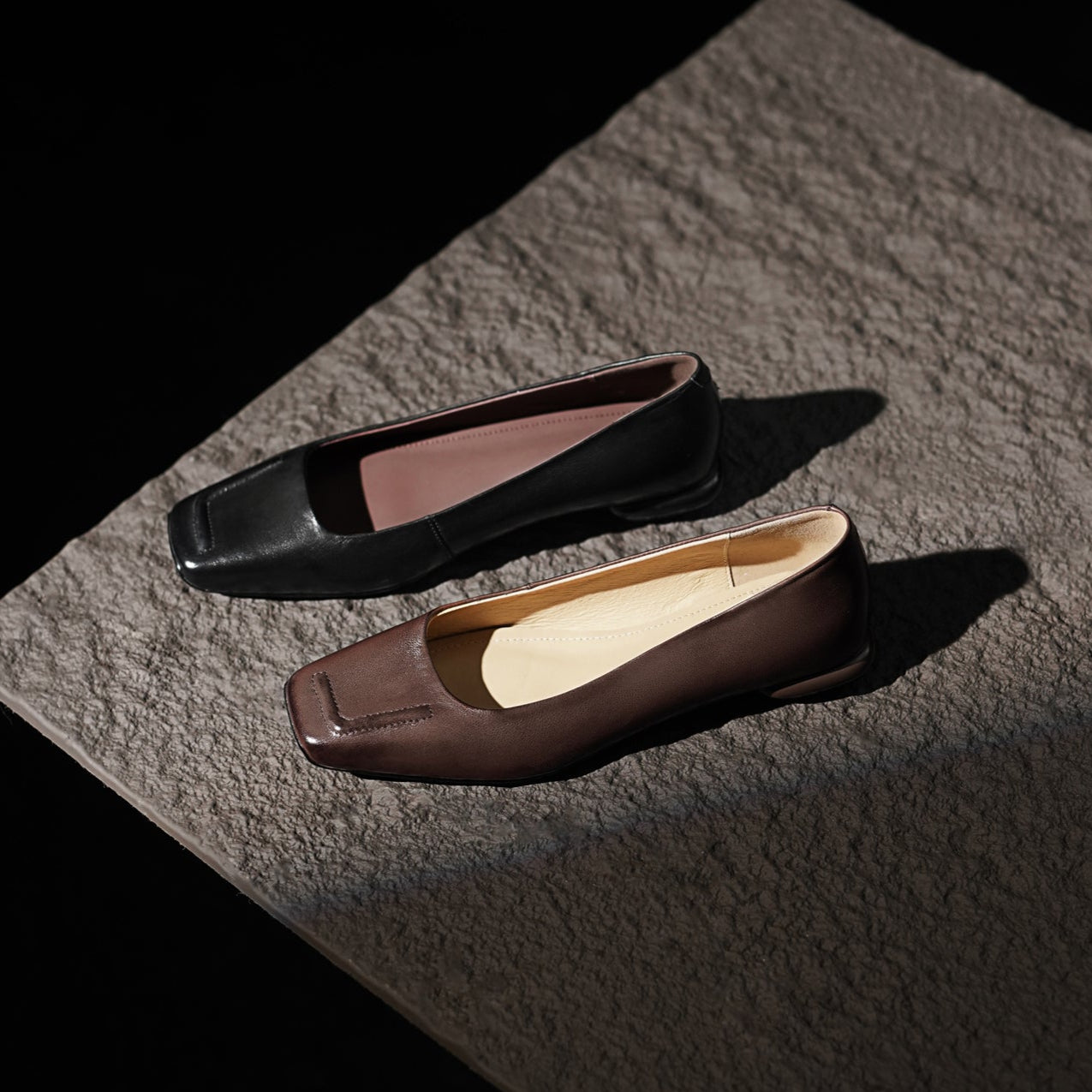 Flats with genuine leather, square toe and slip on closure can go with your dress, jeans and pants.