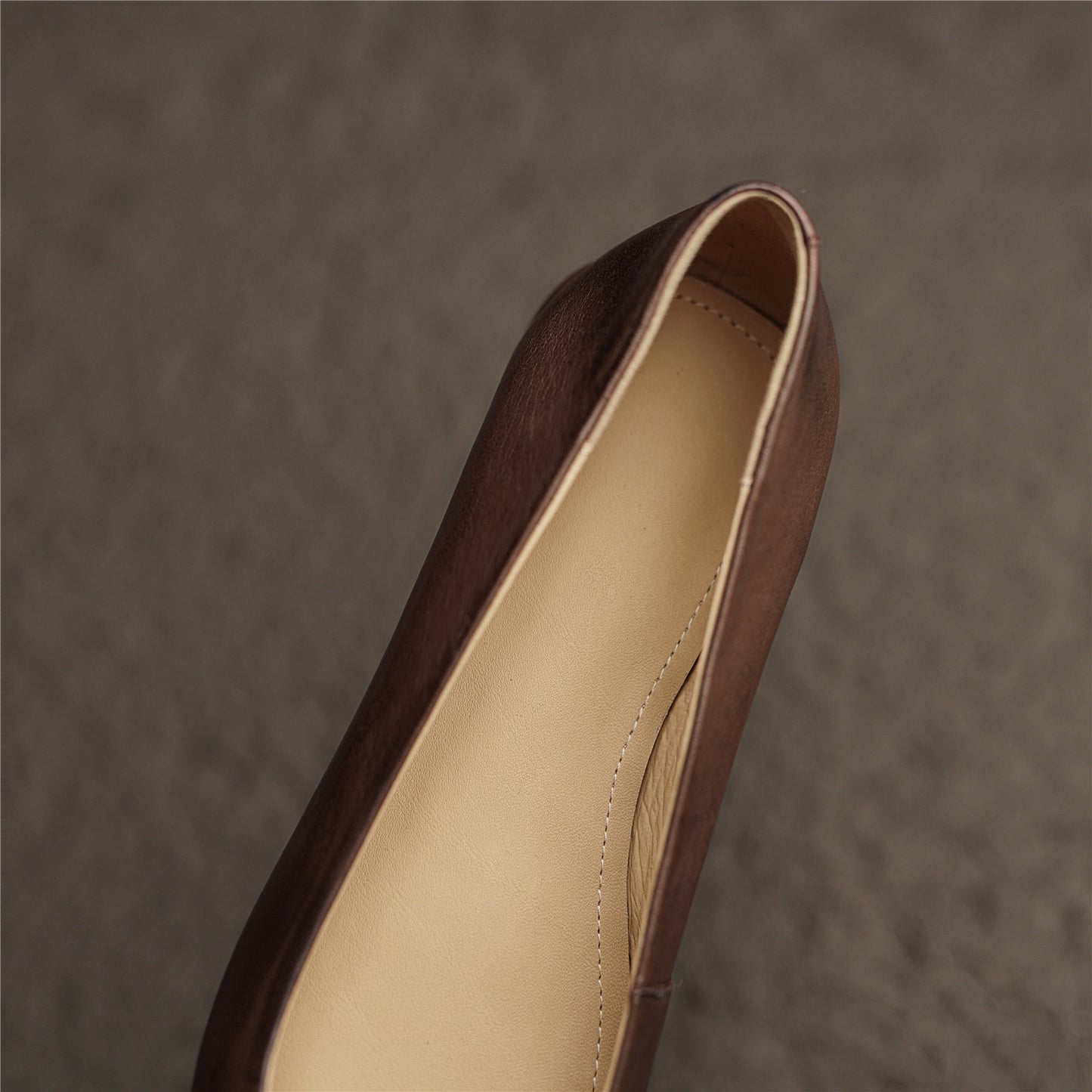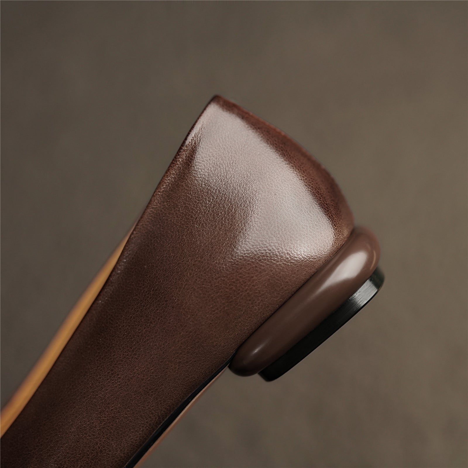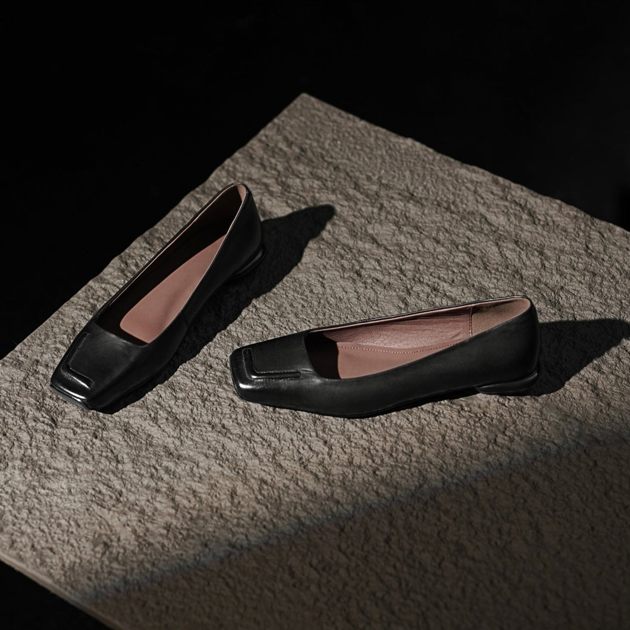 Flats with genuine leather, square toe and slip on closure can go with your dress, jeans and pants.