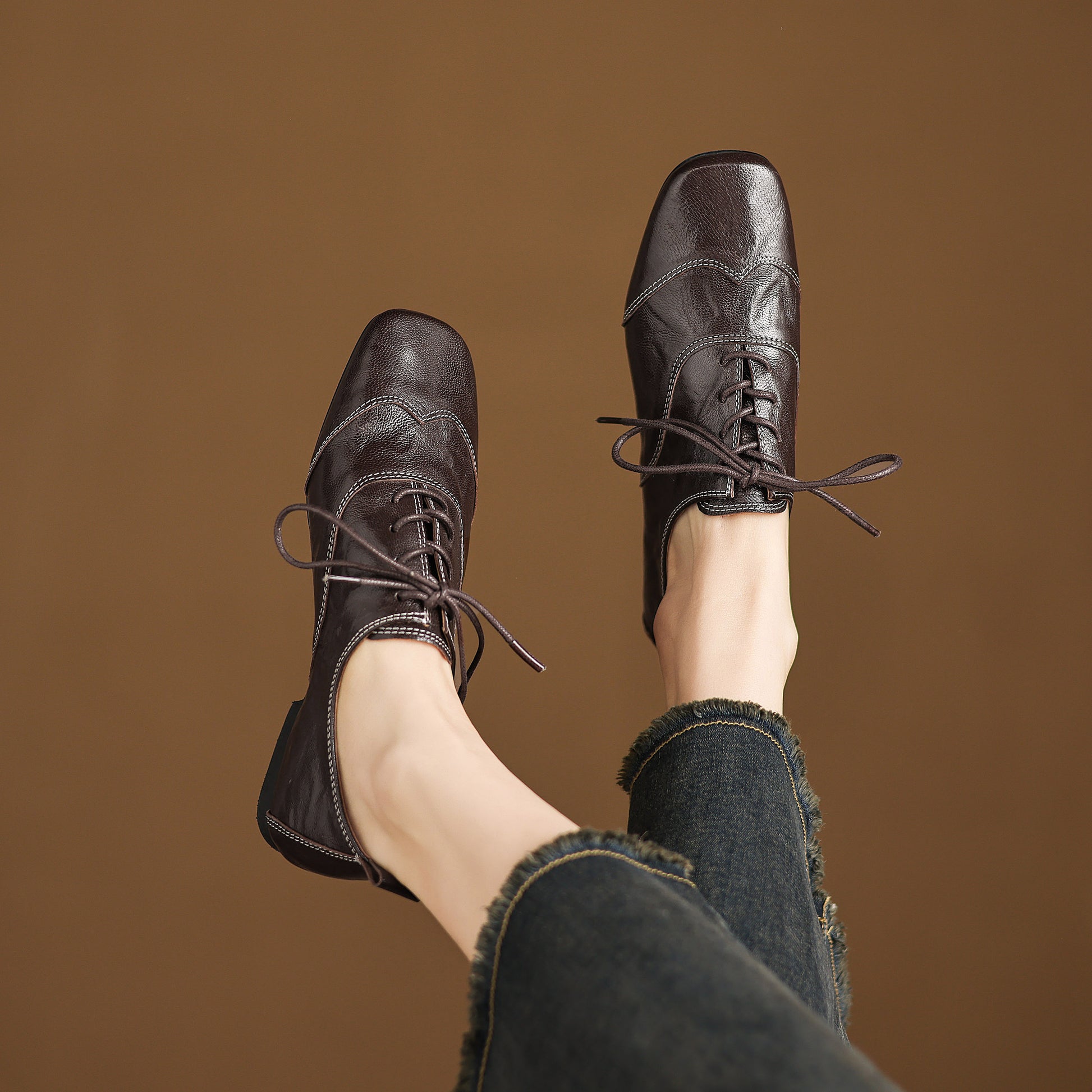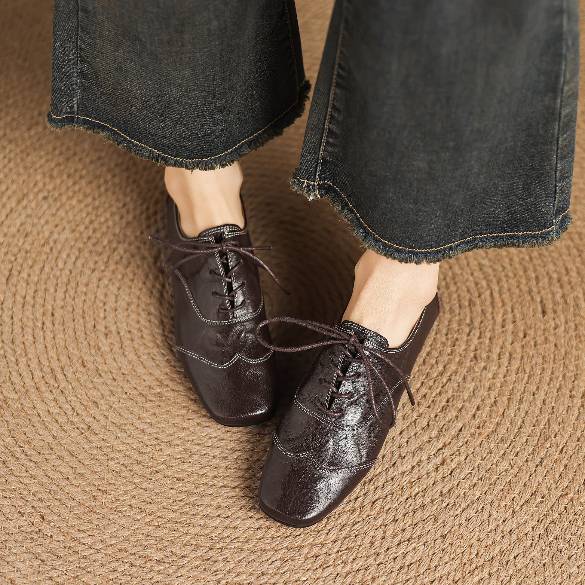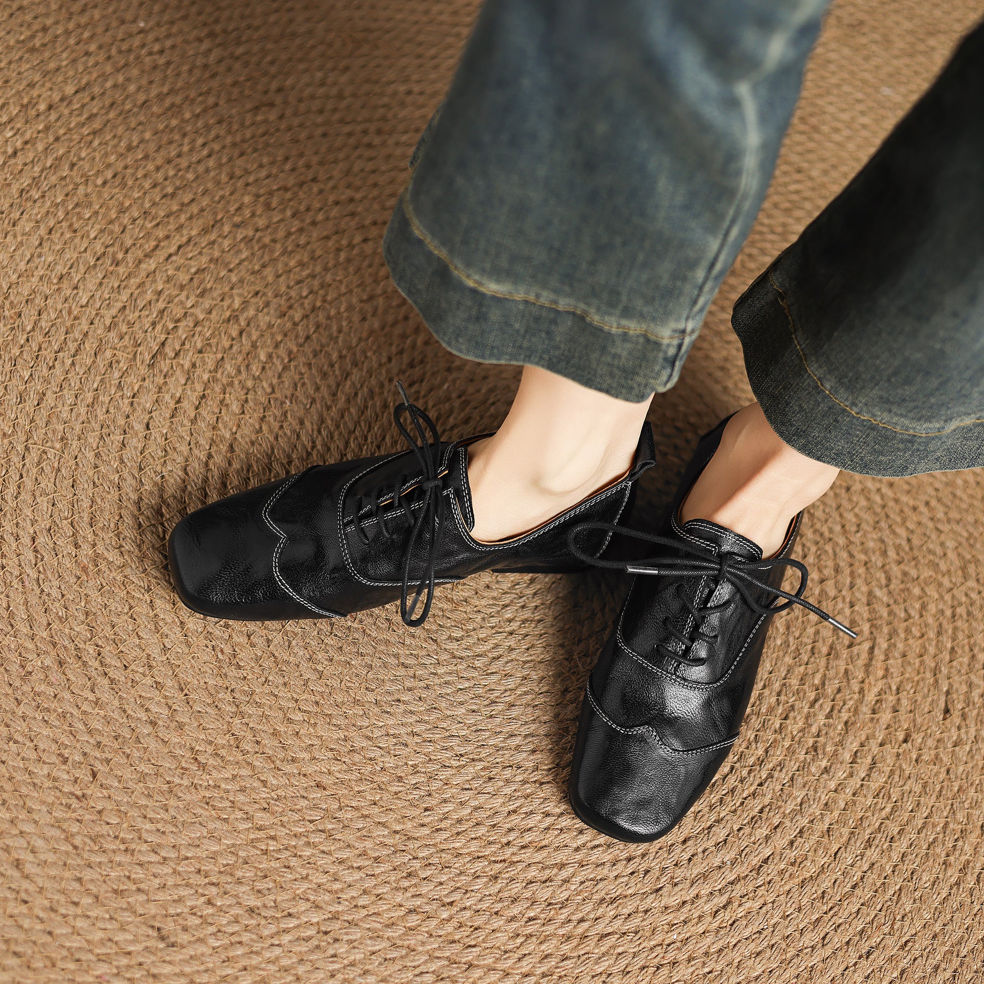 Square-toe lace-up flats for comfortable all-day wear