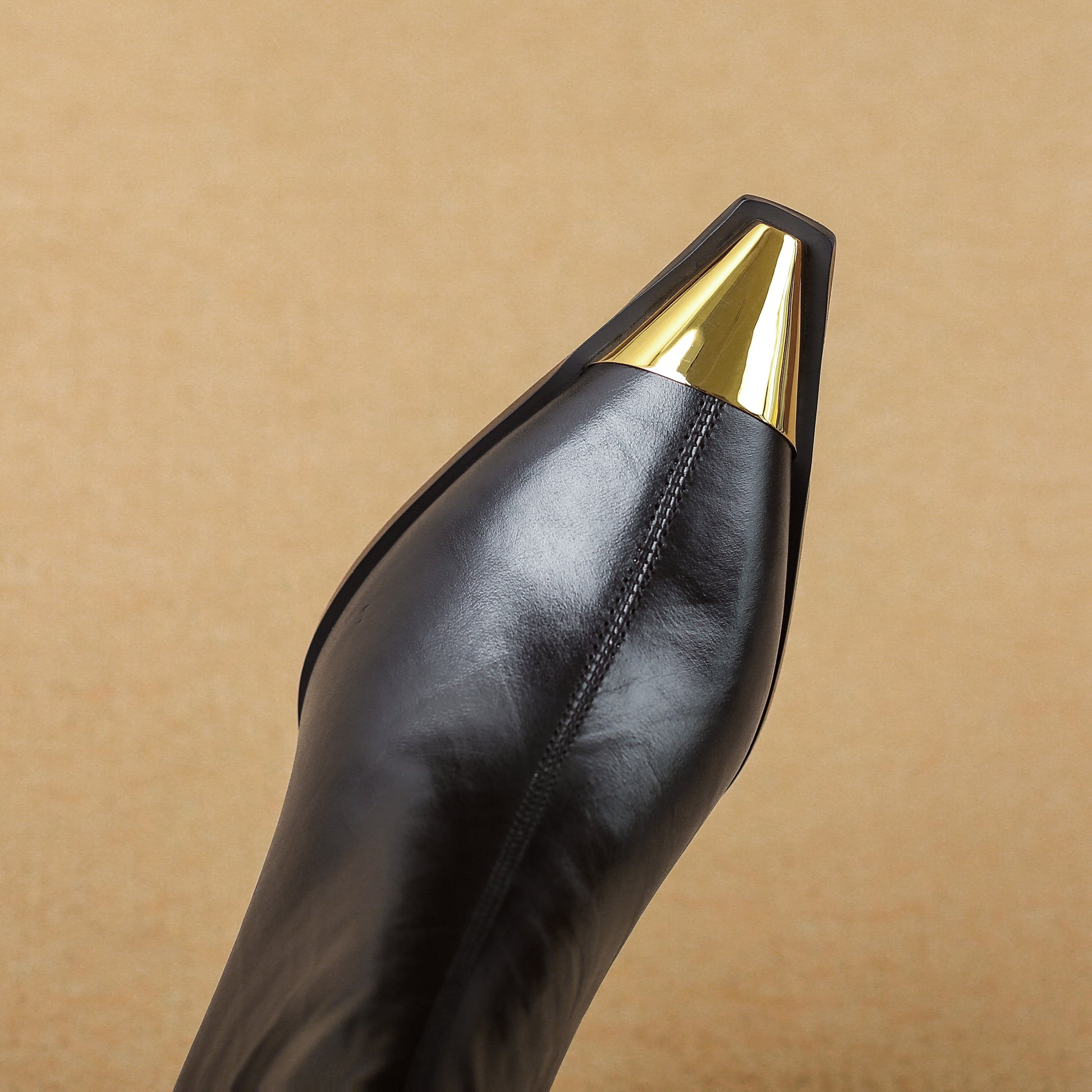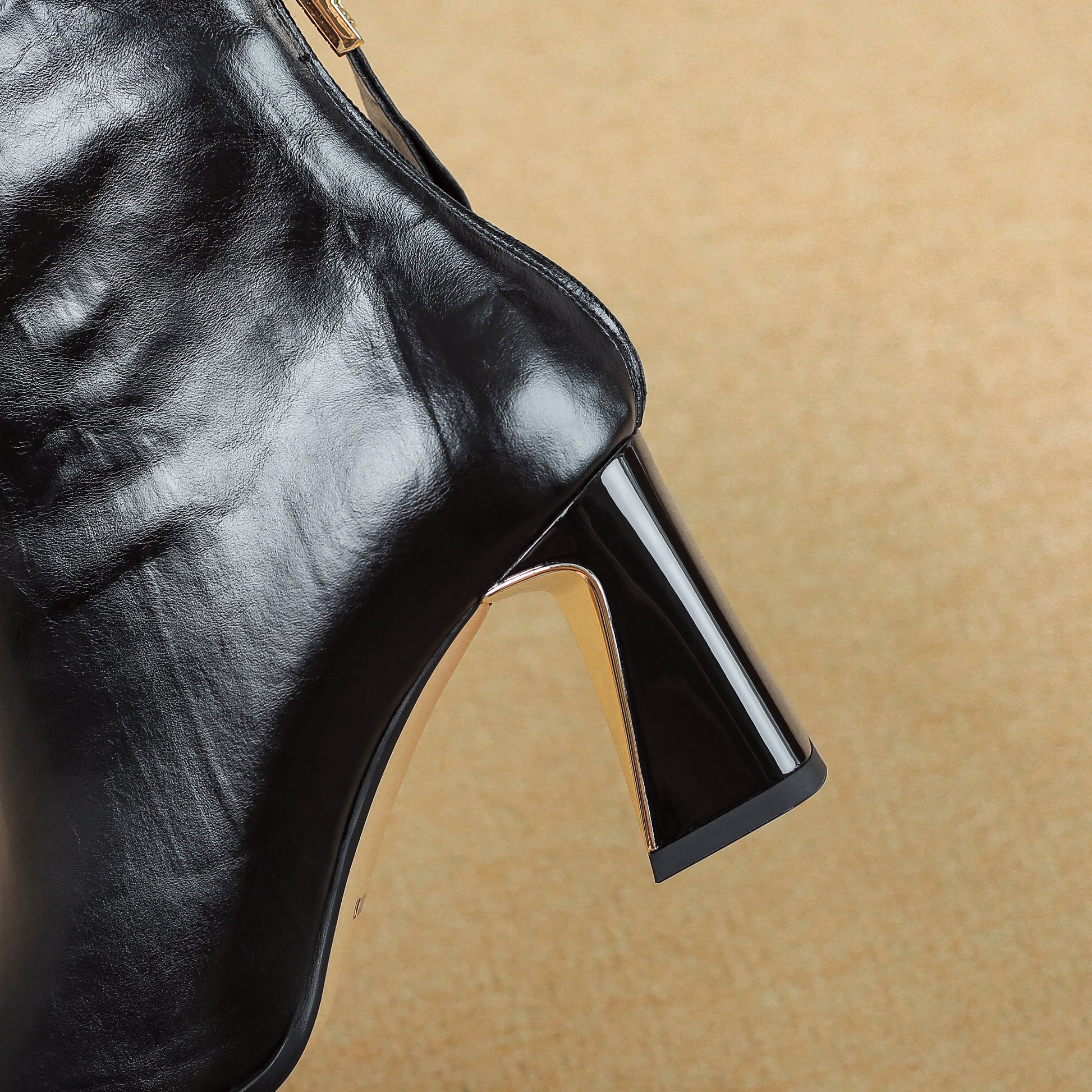 Ankle boots with genuine leather, pointed toe, high heels and zipper can go kinds of outfits