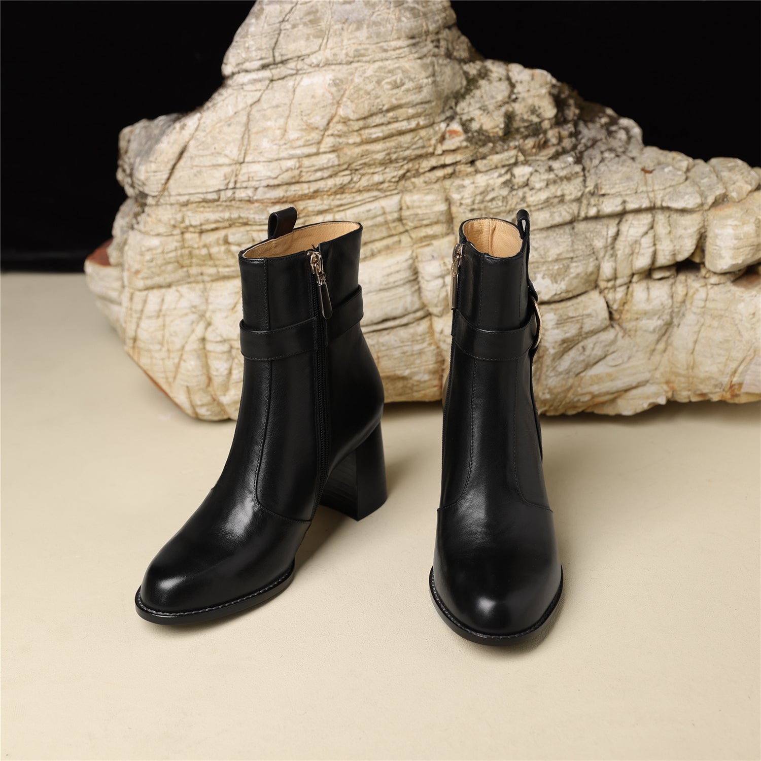 TinaCus Women's Genuine Leather Block Heel Handmade Side Zip Ankle Boots
