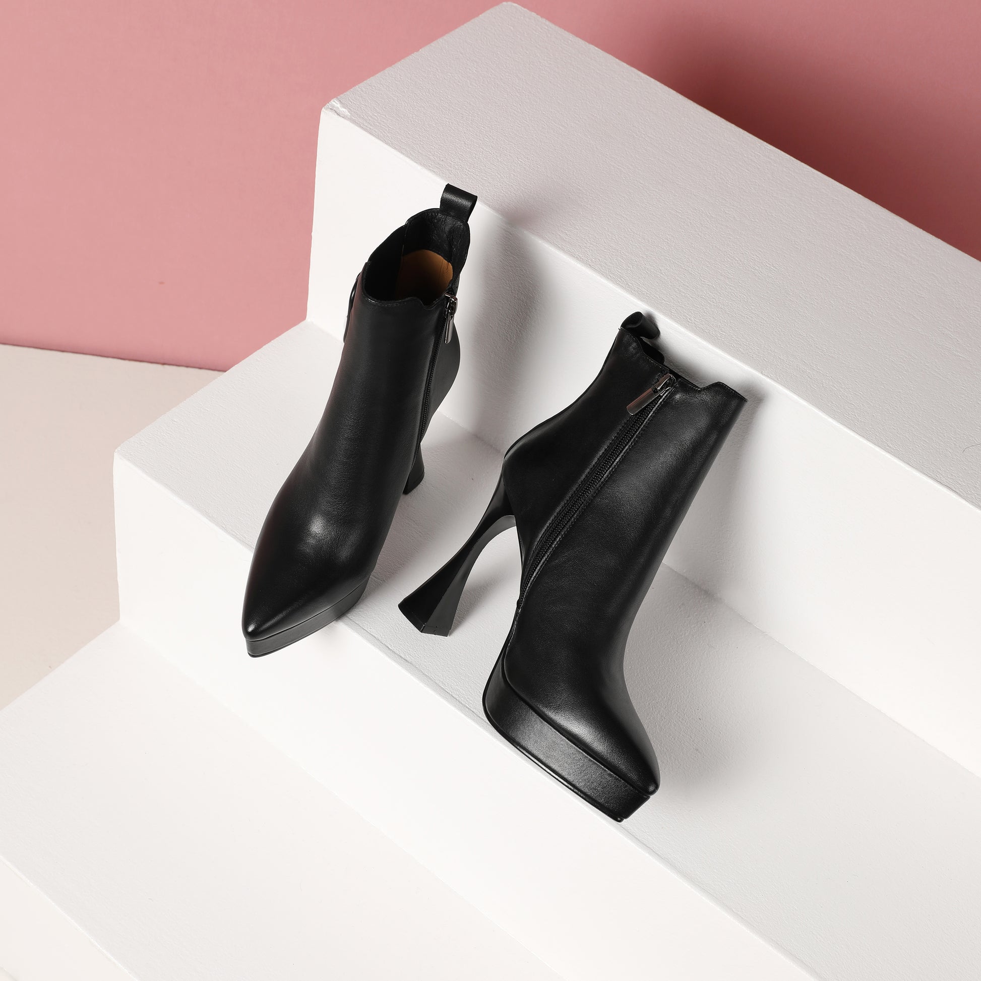 Ankle boots are designed with genuine leather, platform, high heel and zip up to keep up with fashion trend. These fashion booties go with almost any outfit.
