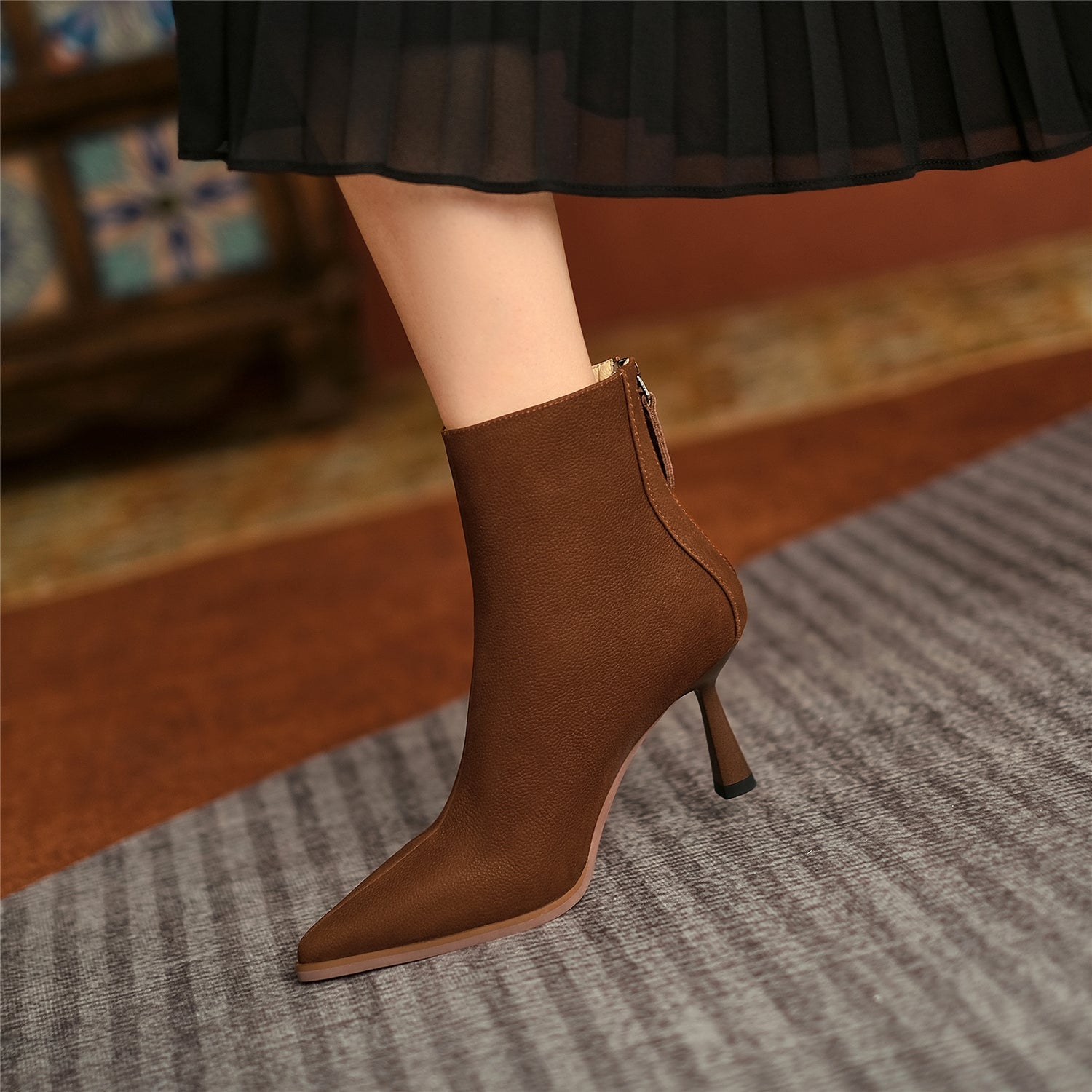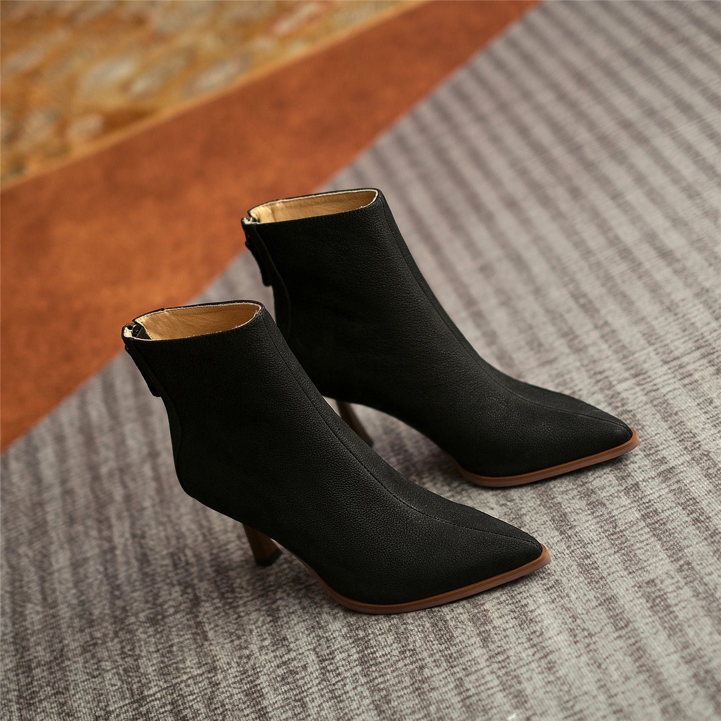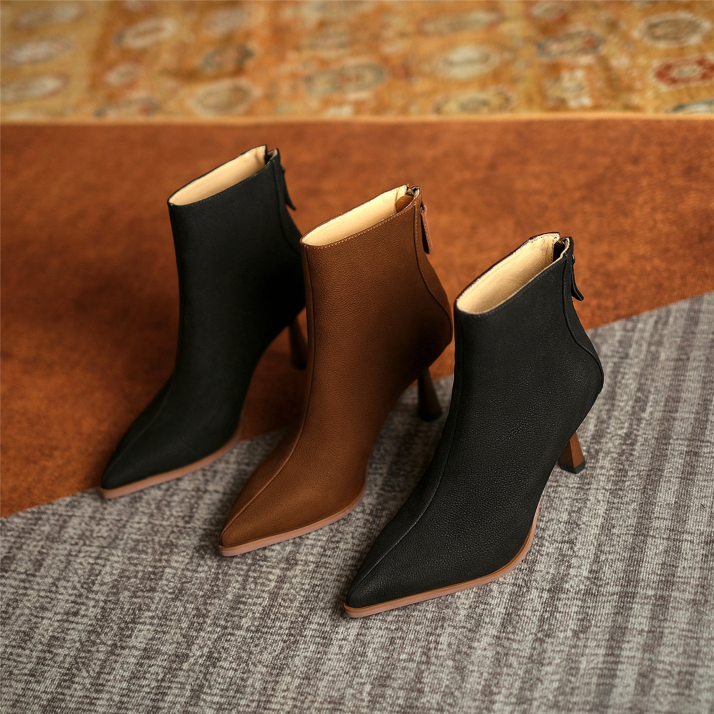 TinaCus Women's Genuine Leather Handmade Back Zip Up Pointed Toe Mid Stiletto Heel Ankle Booties