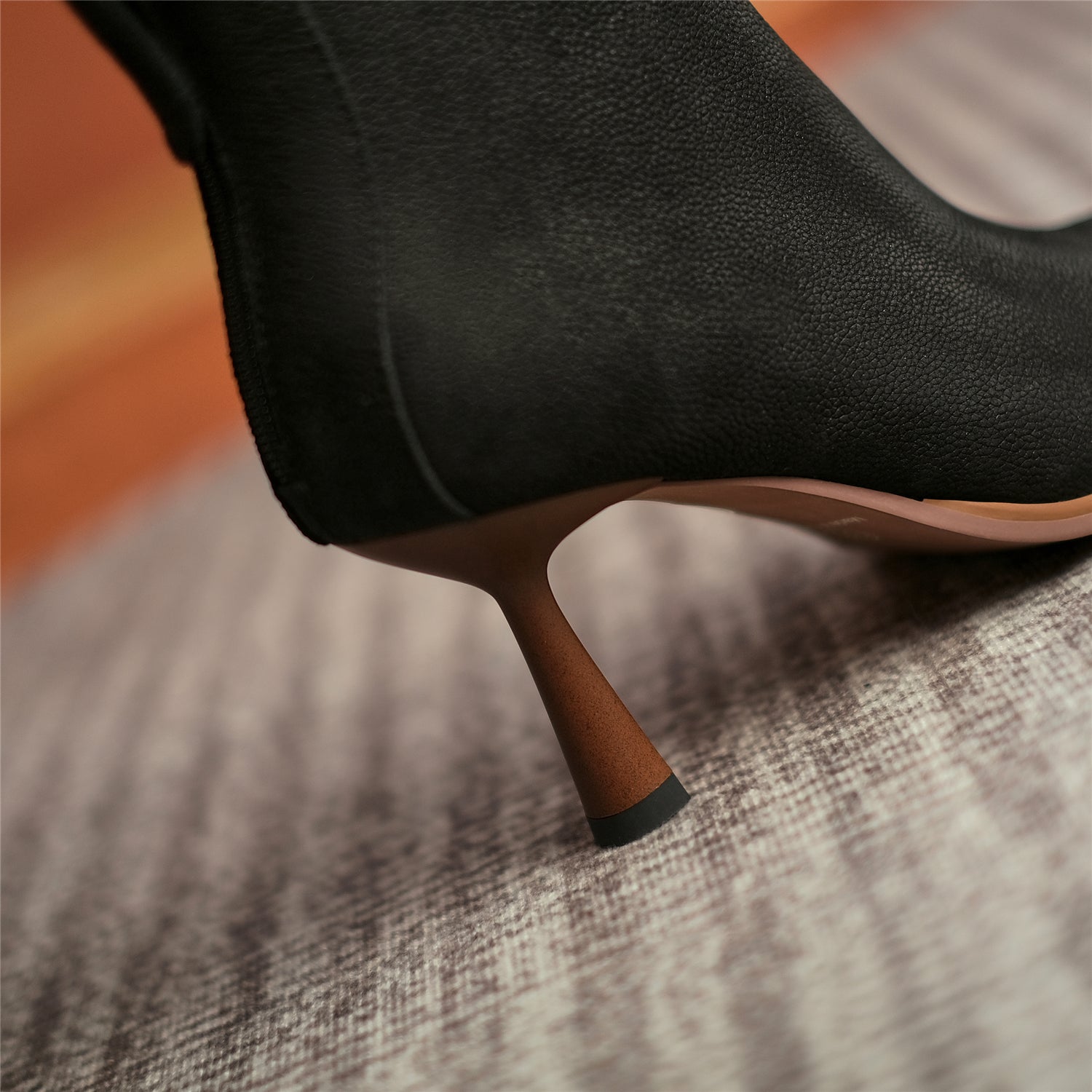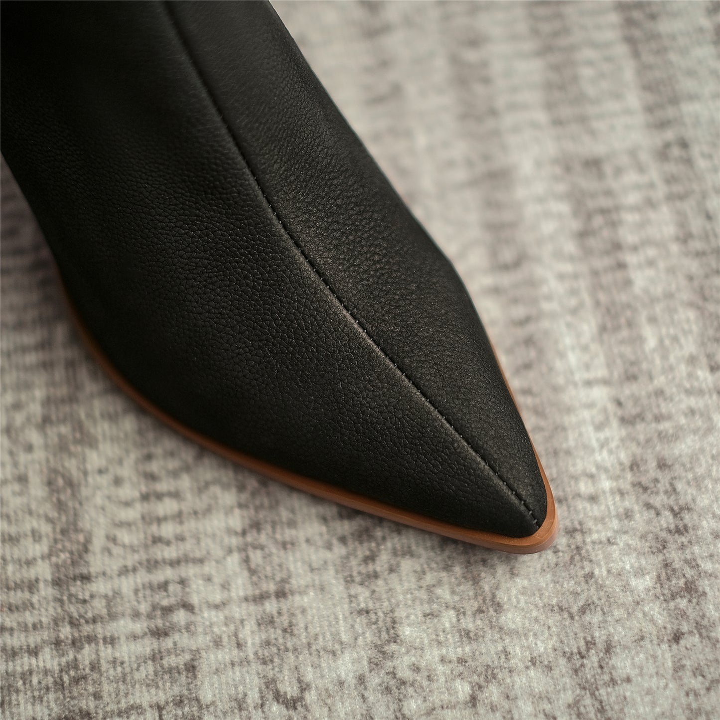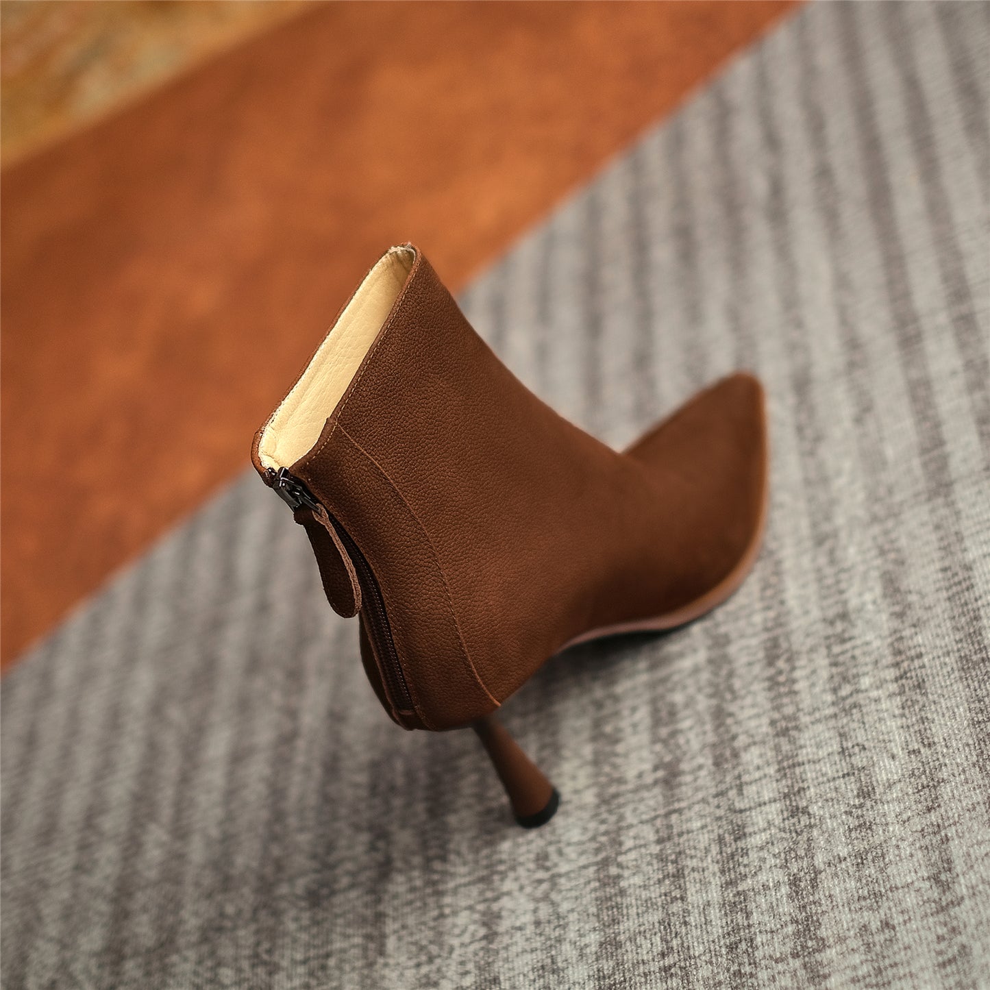 TinaCus Women's Genuine Leather Handmade Back Zip Up Pointed Toe Mid Stiletto Heel Ankle Booties