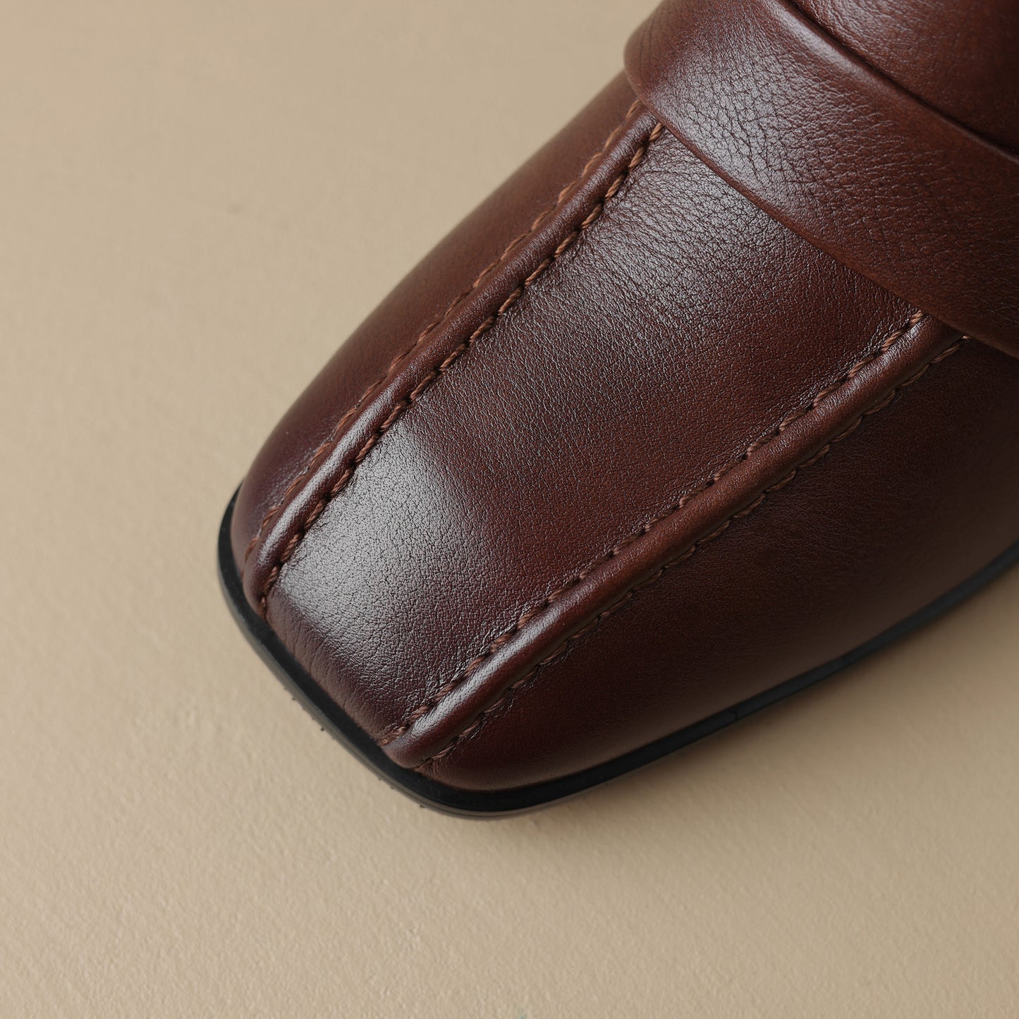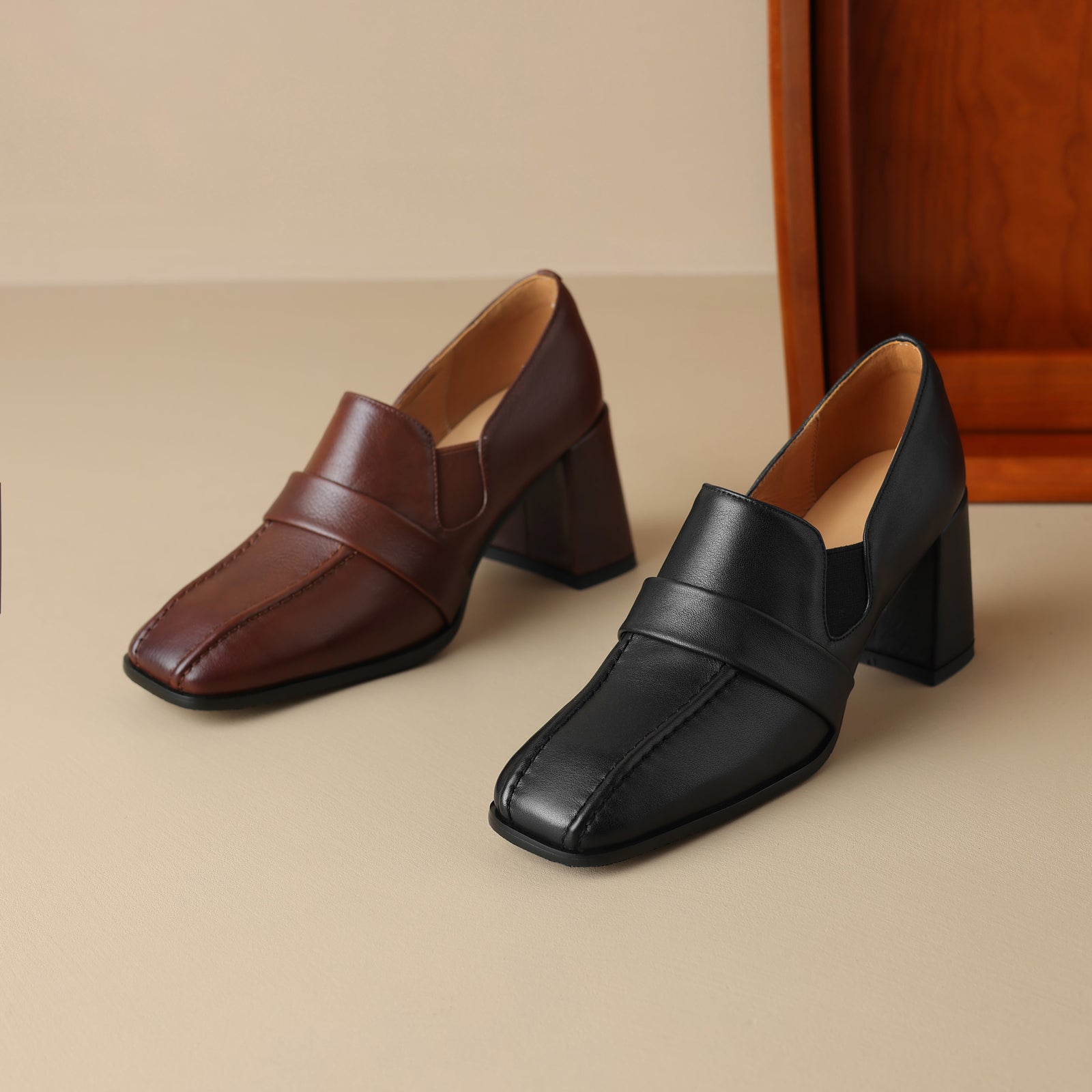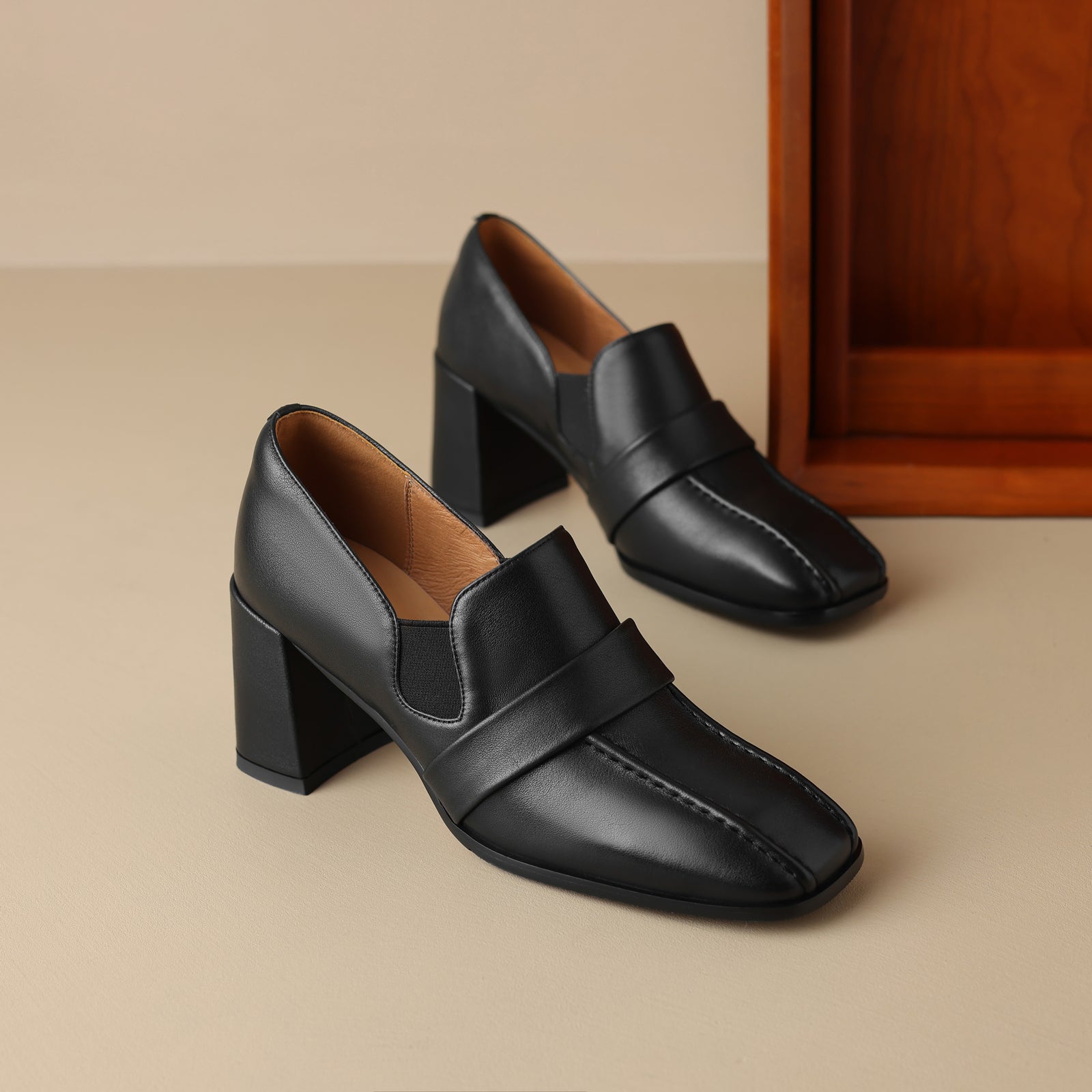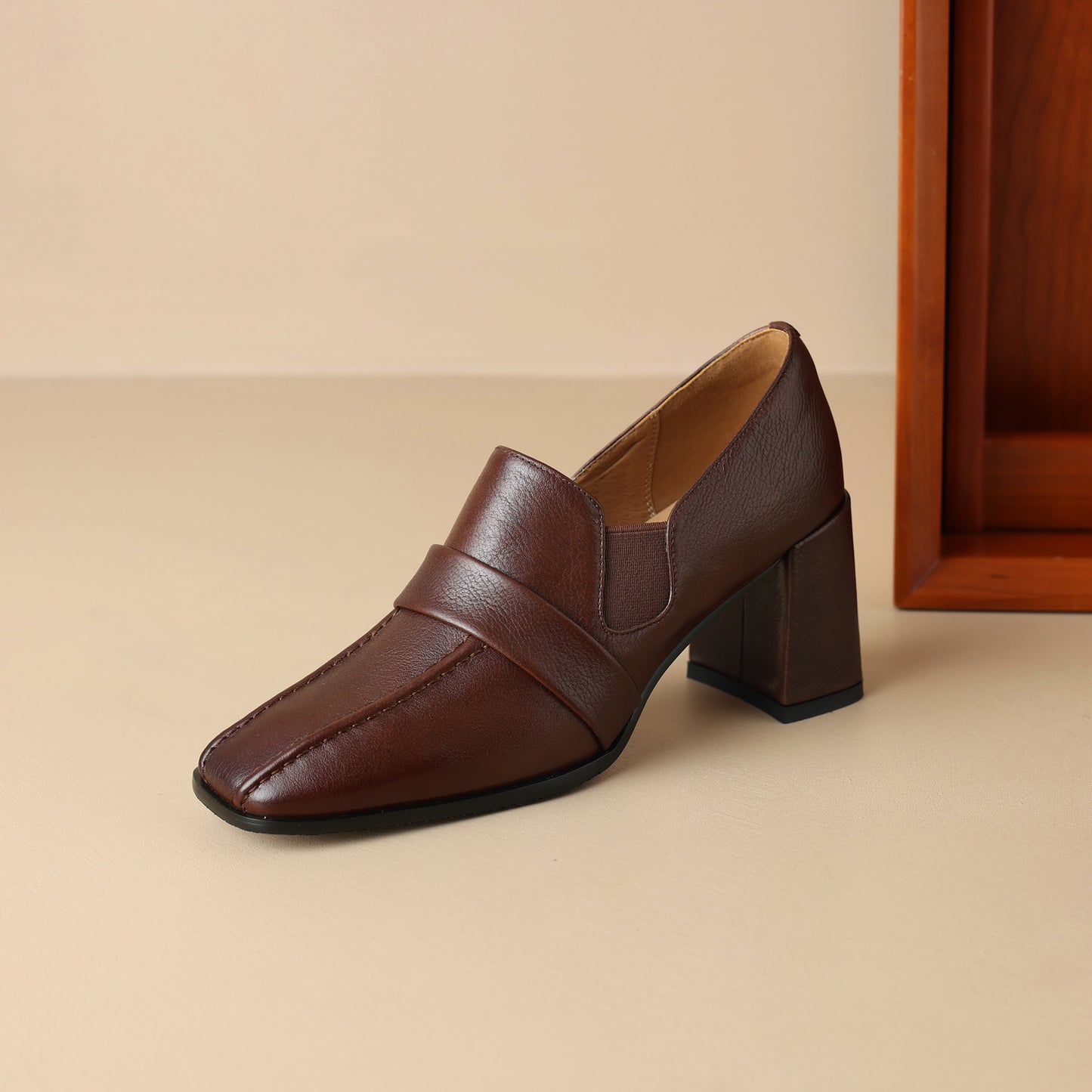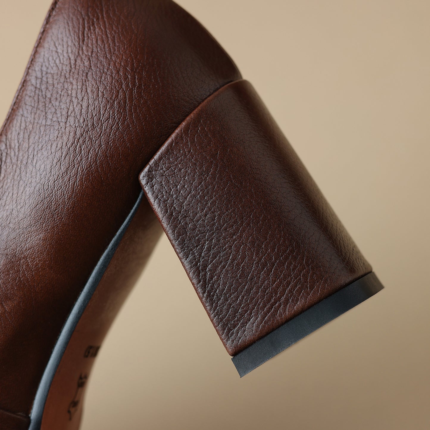 TinaCus Women's Genuine Leather Handmade Chunky Heel Square Toe Pumps