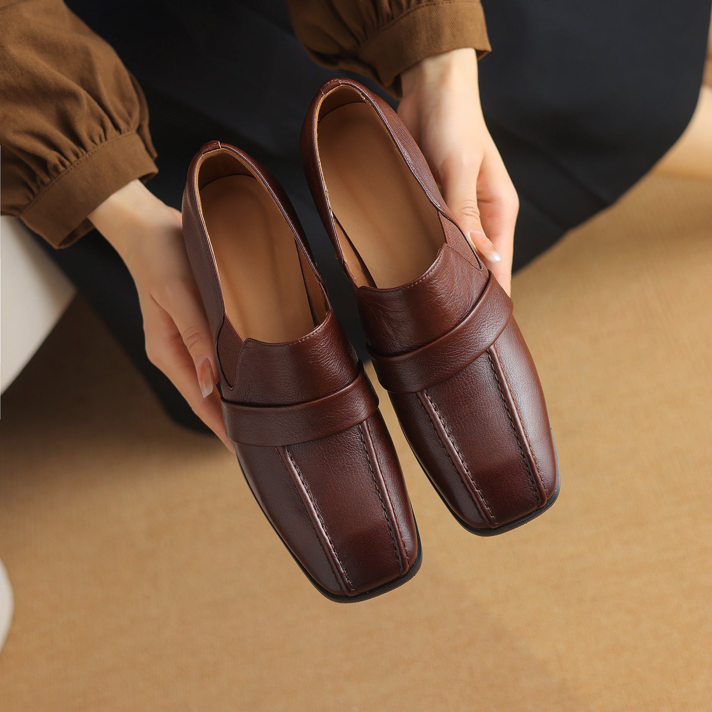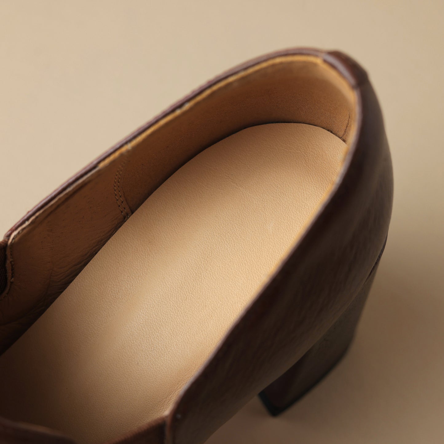 Comfortable shoes with genuine leather and block heel can go with your dress, jeans and pants.