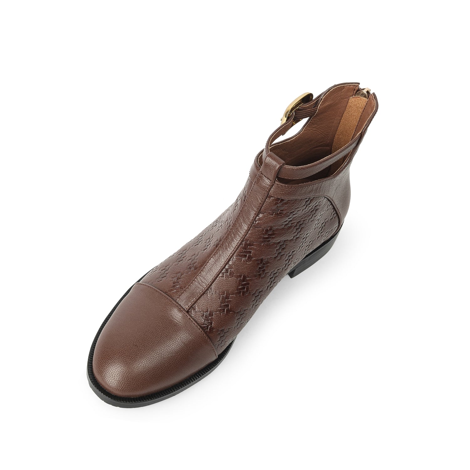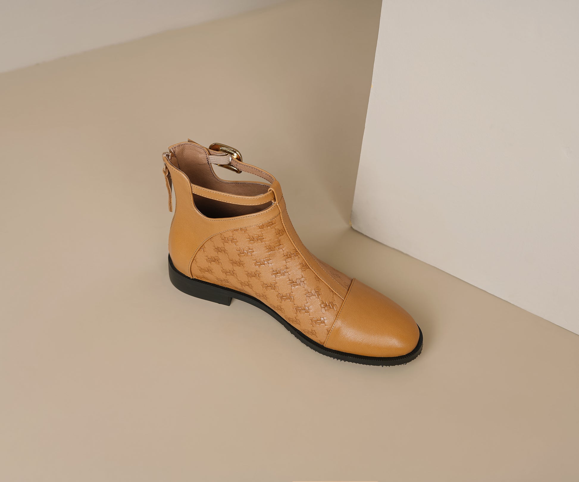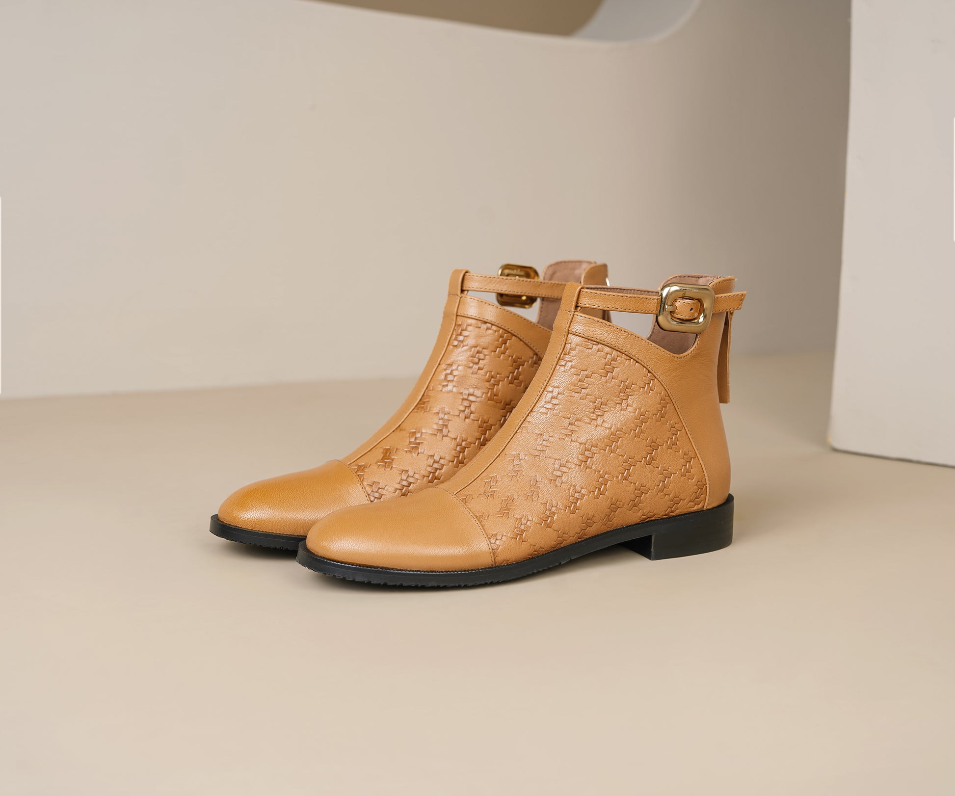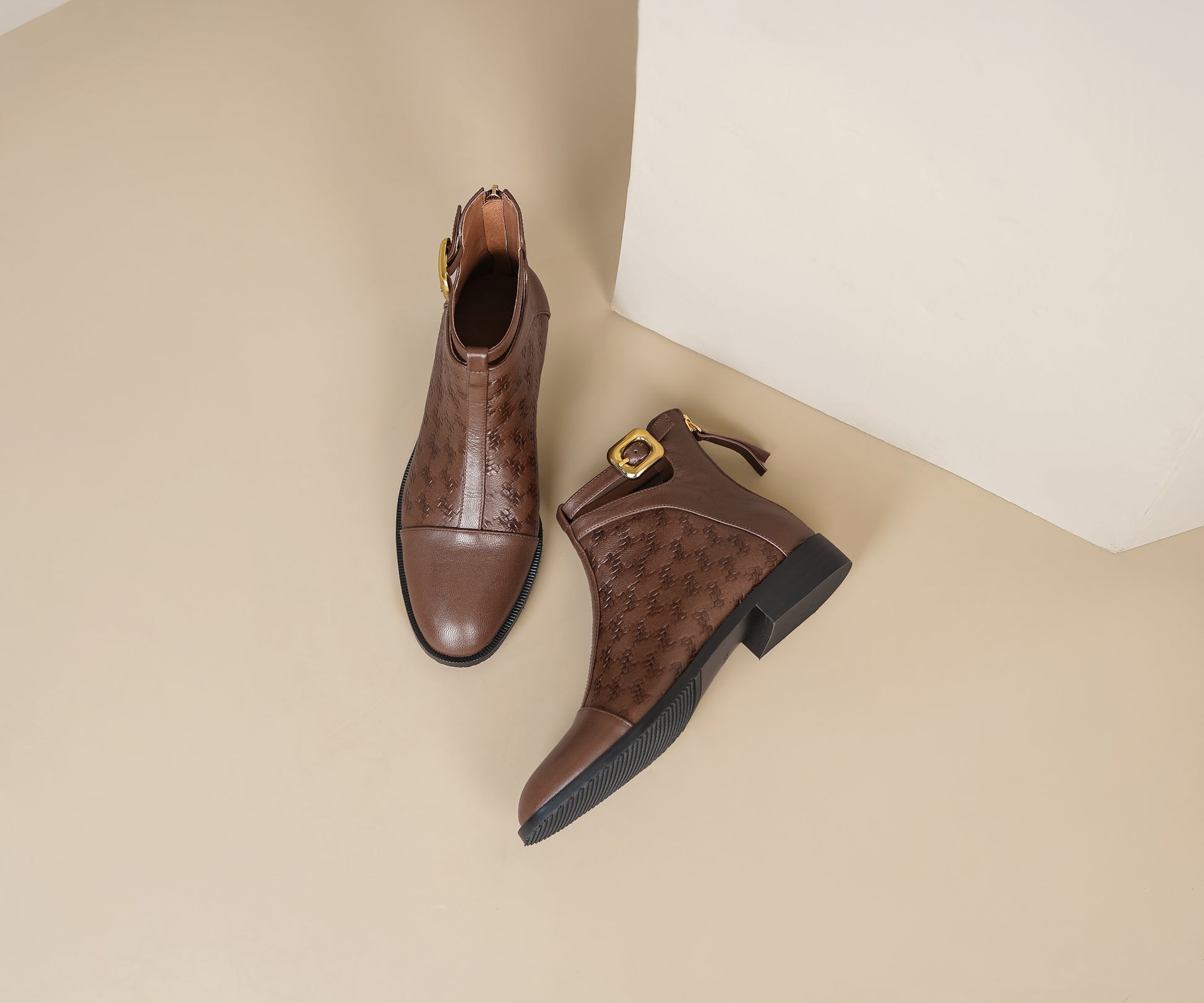 Ankle boots are designed with genuine leather, flat, buckle and zip up to keep up with fashion trend.