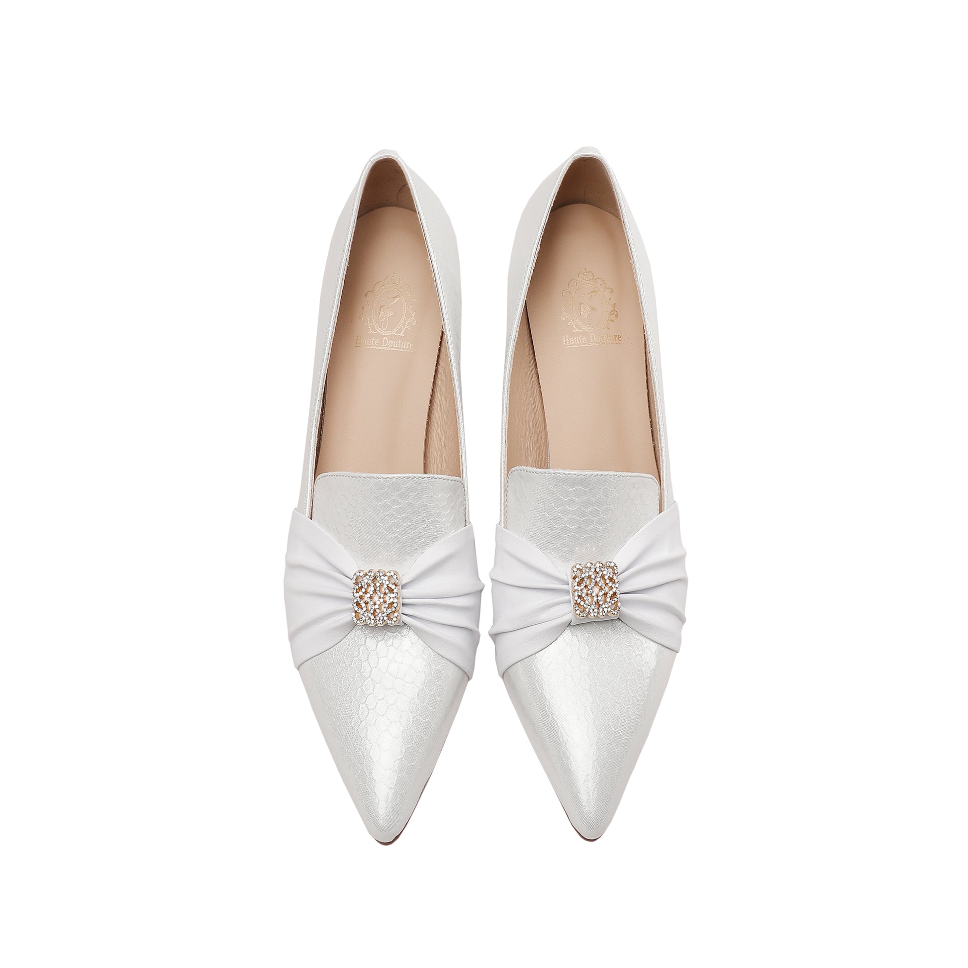 Modern pumps are designed with genuine leather, pointed toe, mid heel, bow and slip on to keep up with fashion trend. These fashion shoes can go with many different styles of outfits.