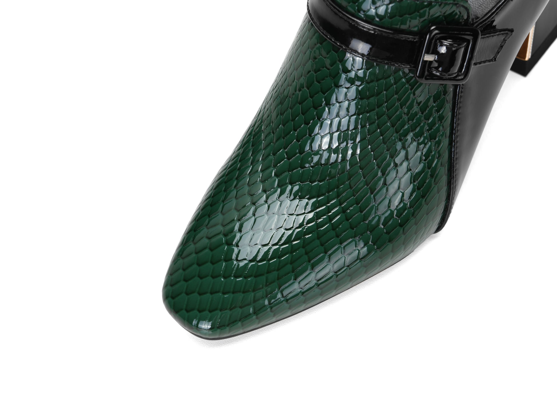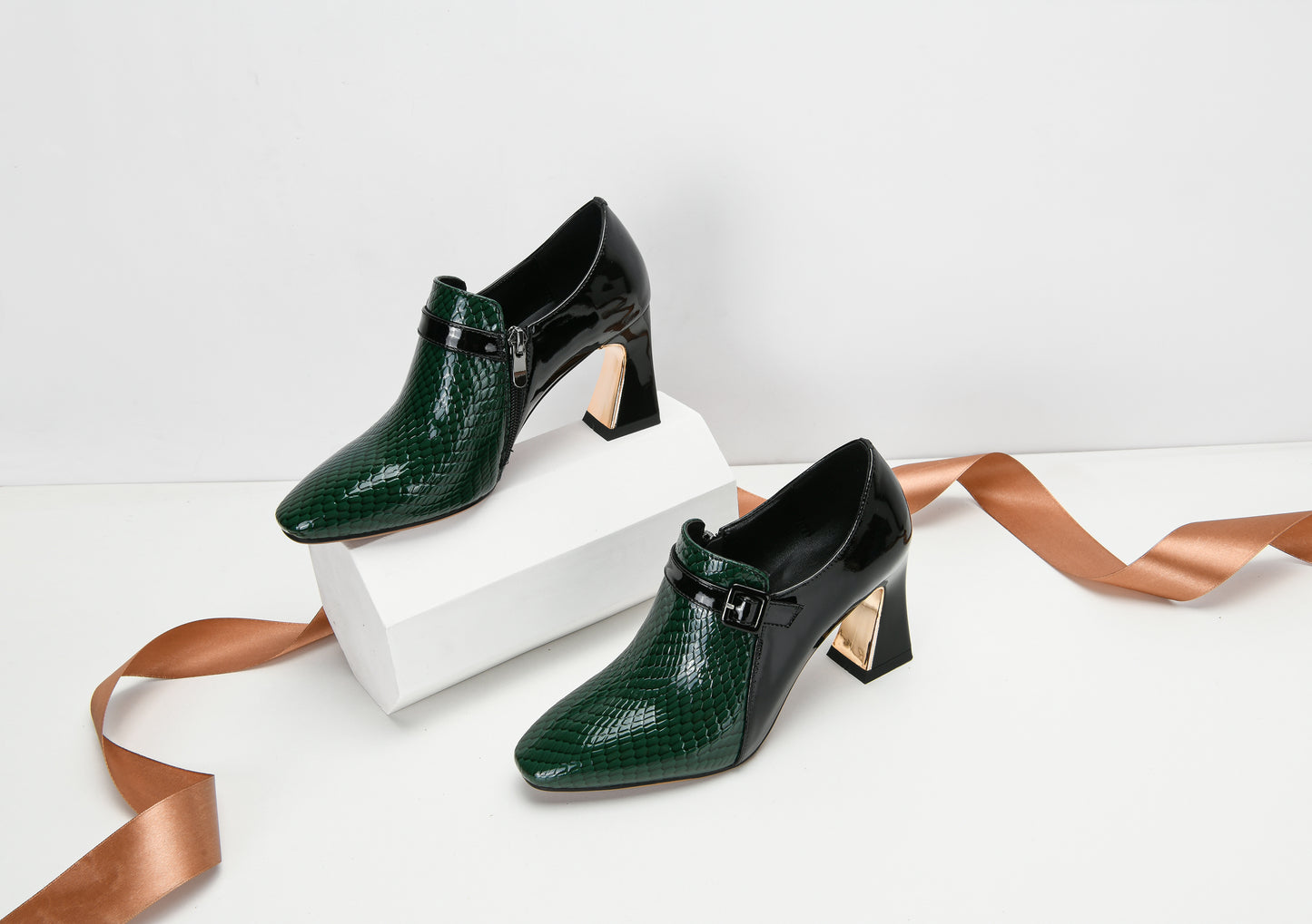 Stylish pumps shoes designed with genuine leather, round toe, side zipper, mid chunky heels and buckle can go with almost all your outfits.