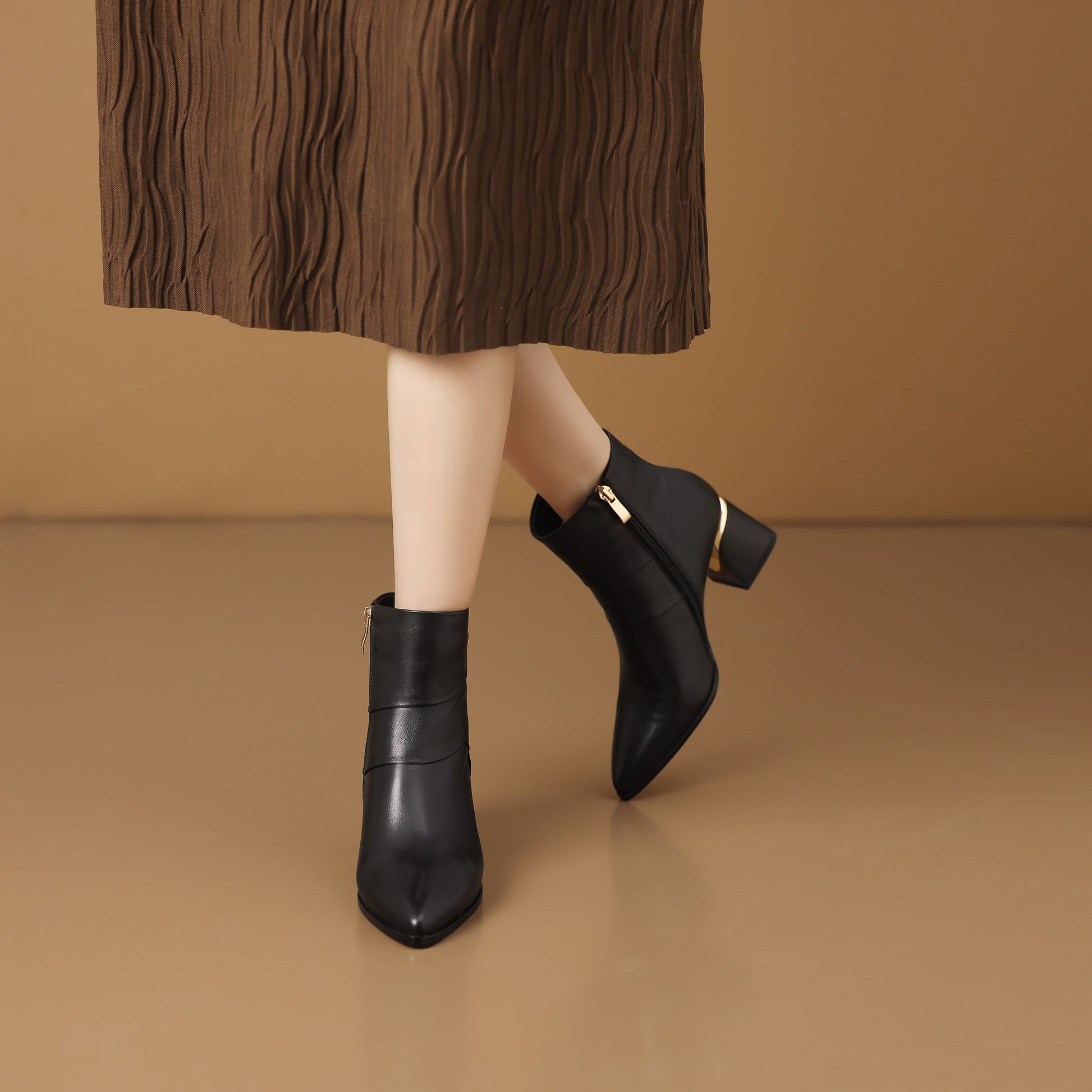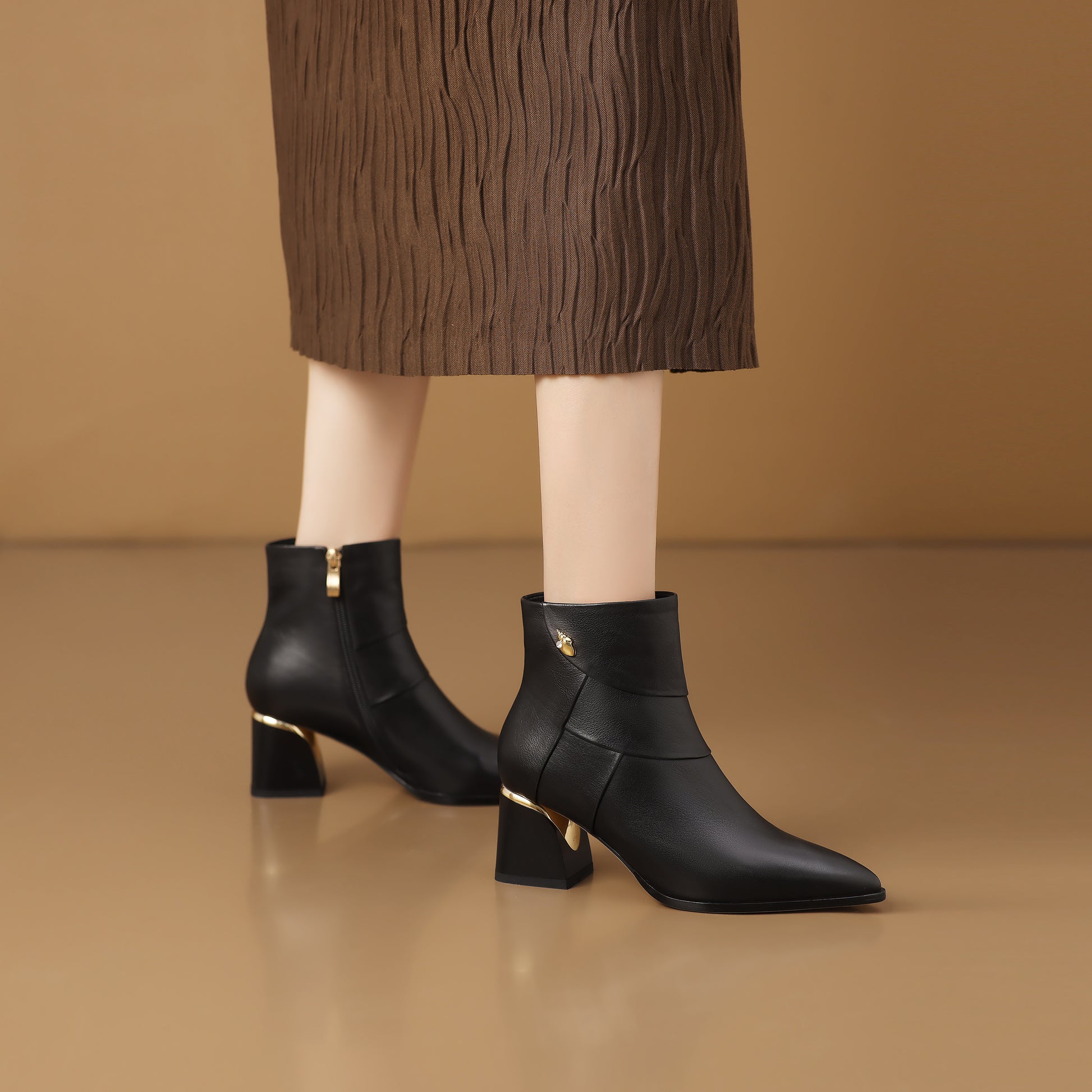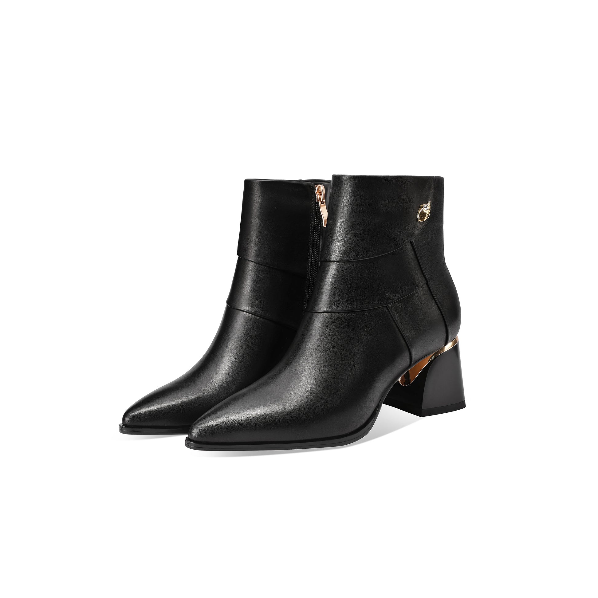 These pointed-toe ankle boots have a convenient side zipper for easy wear.
