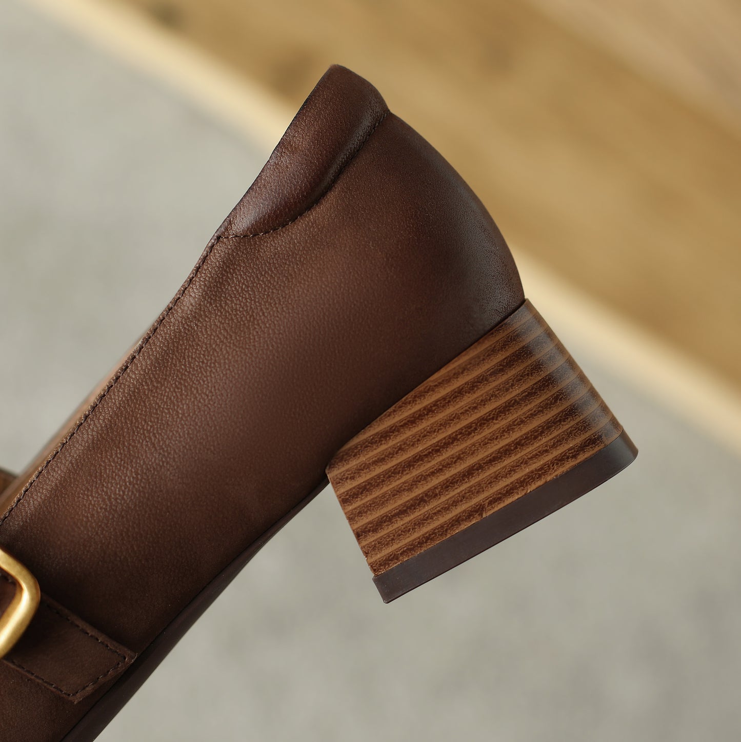 Pumps shoes with genuine leather and chunky heel can go with your dress, jeans and pants.