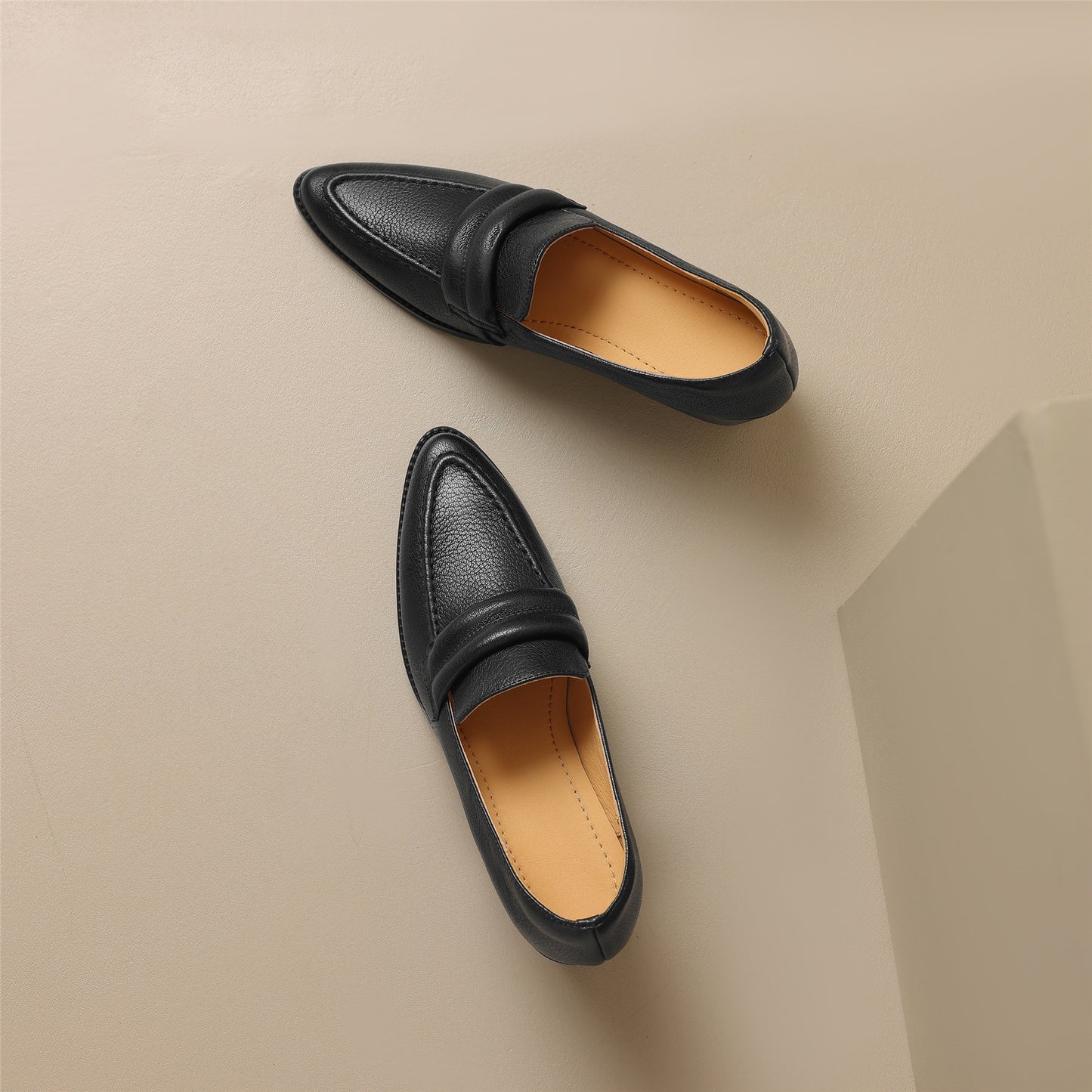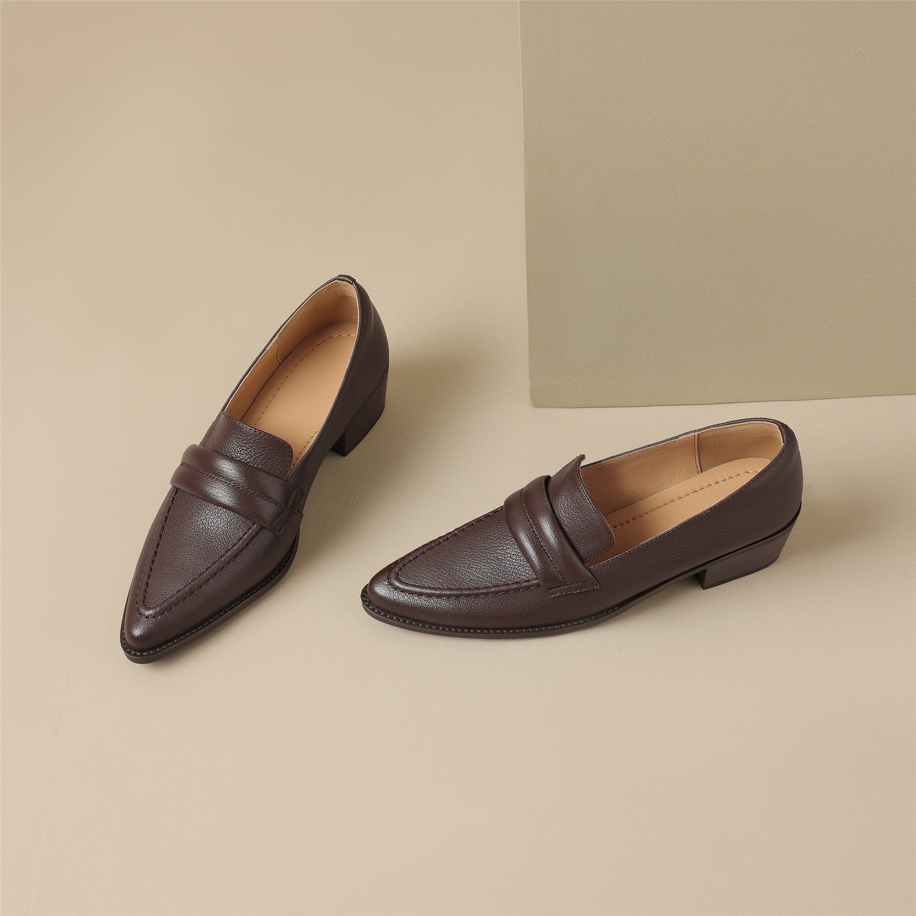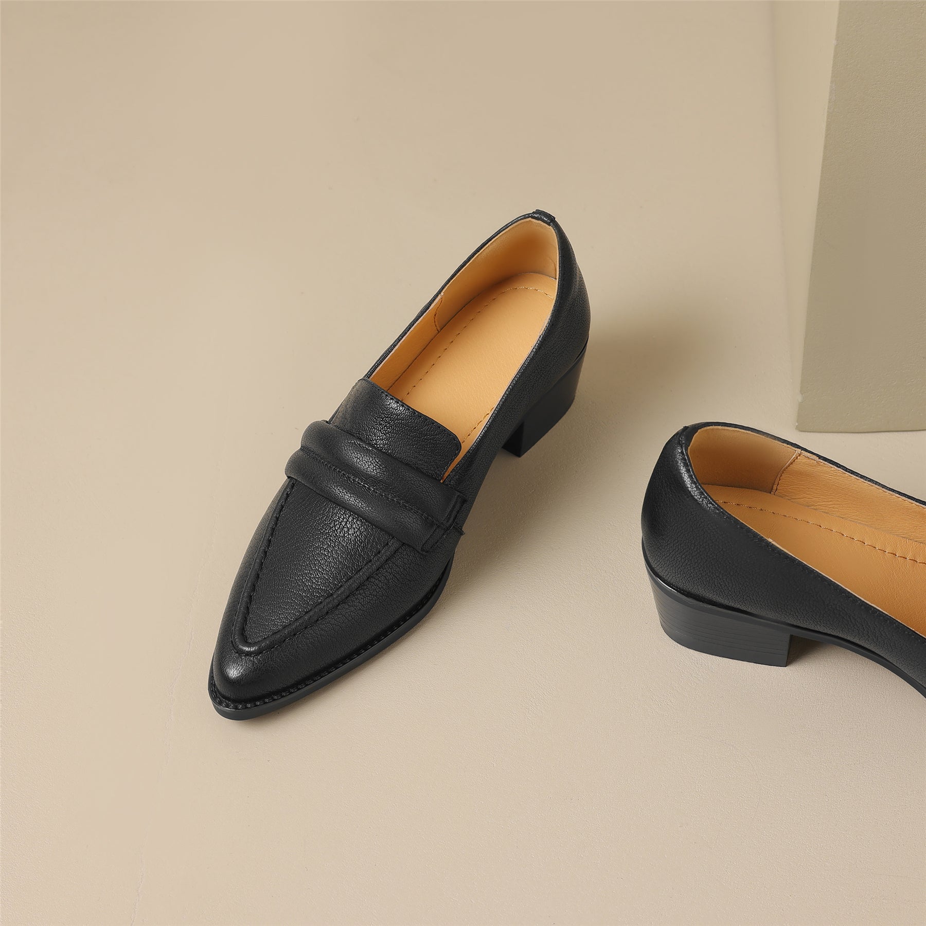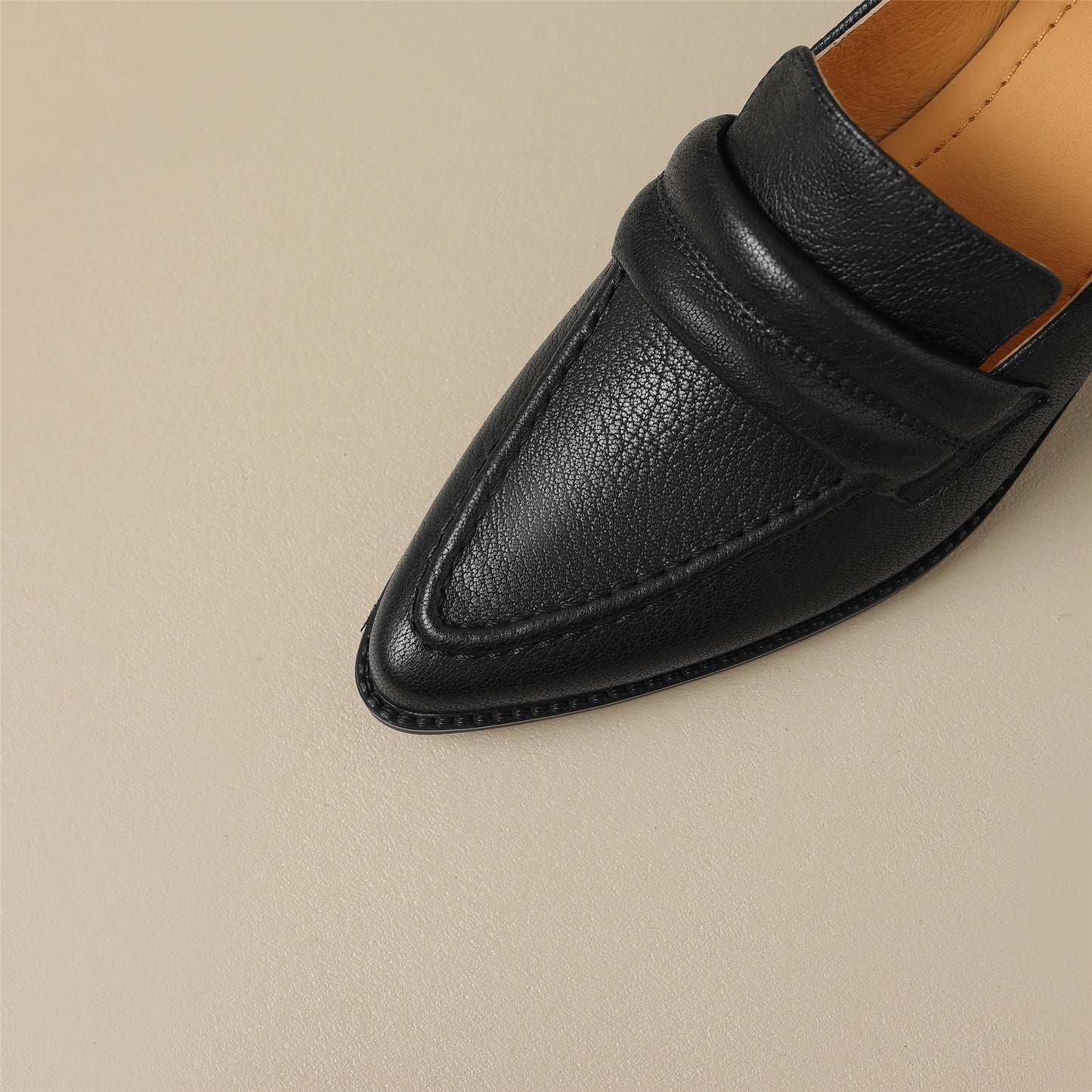 TinaCus Women's Handmade Genuine Leather Pointy Toe Chunky Heel Loafer Pumps