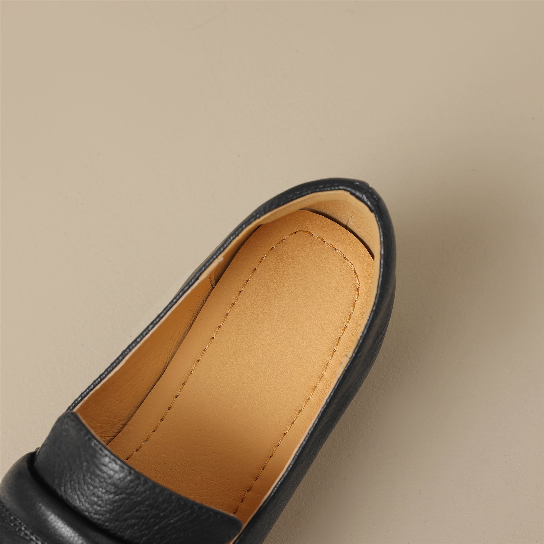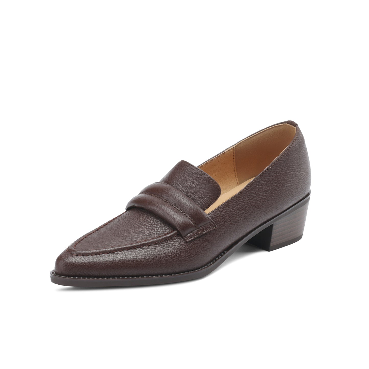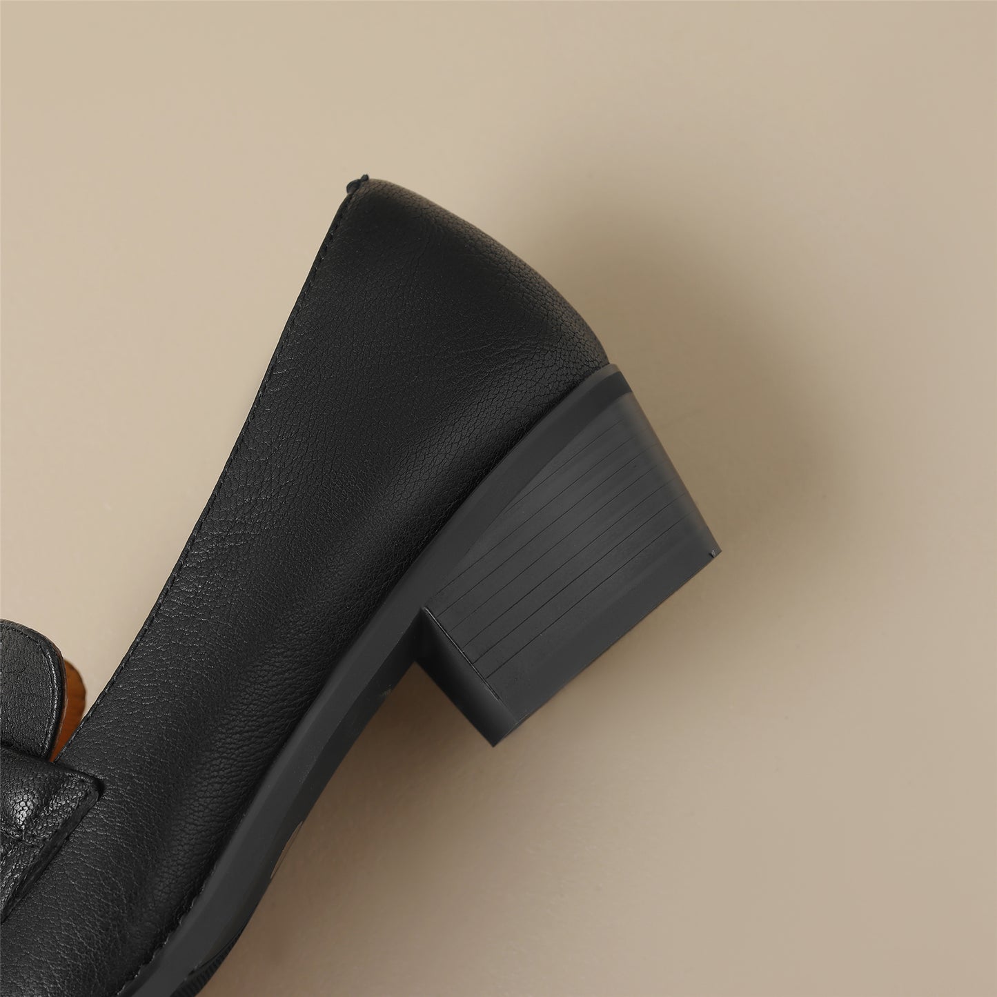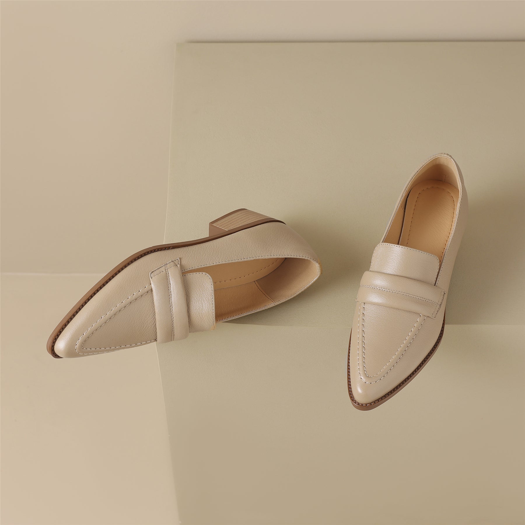 TinaCus Women's Handmade Genuine Leather Pointy Toe Chunky Heel Loafer Pumps