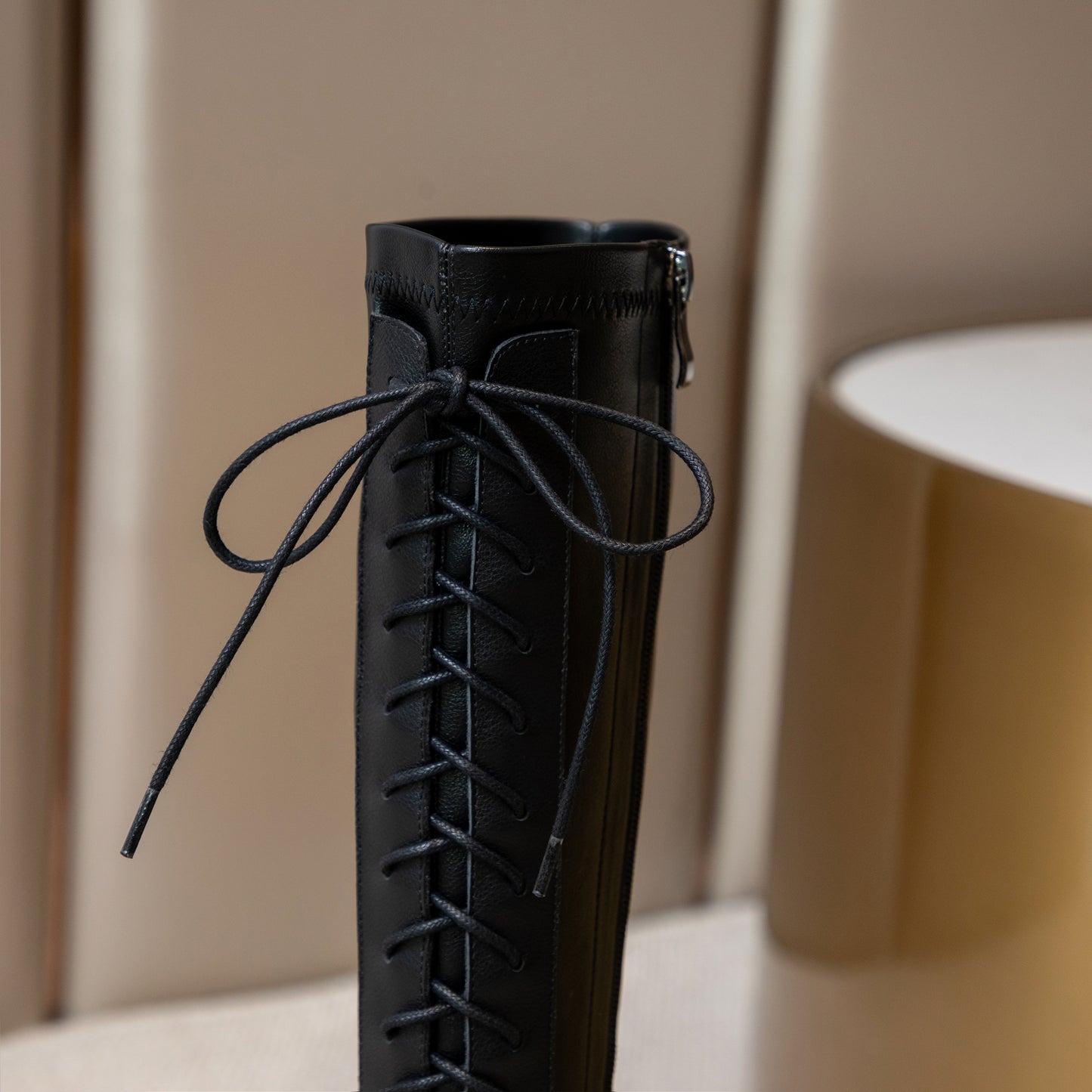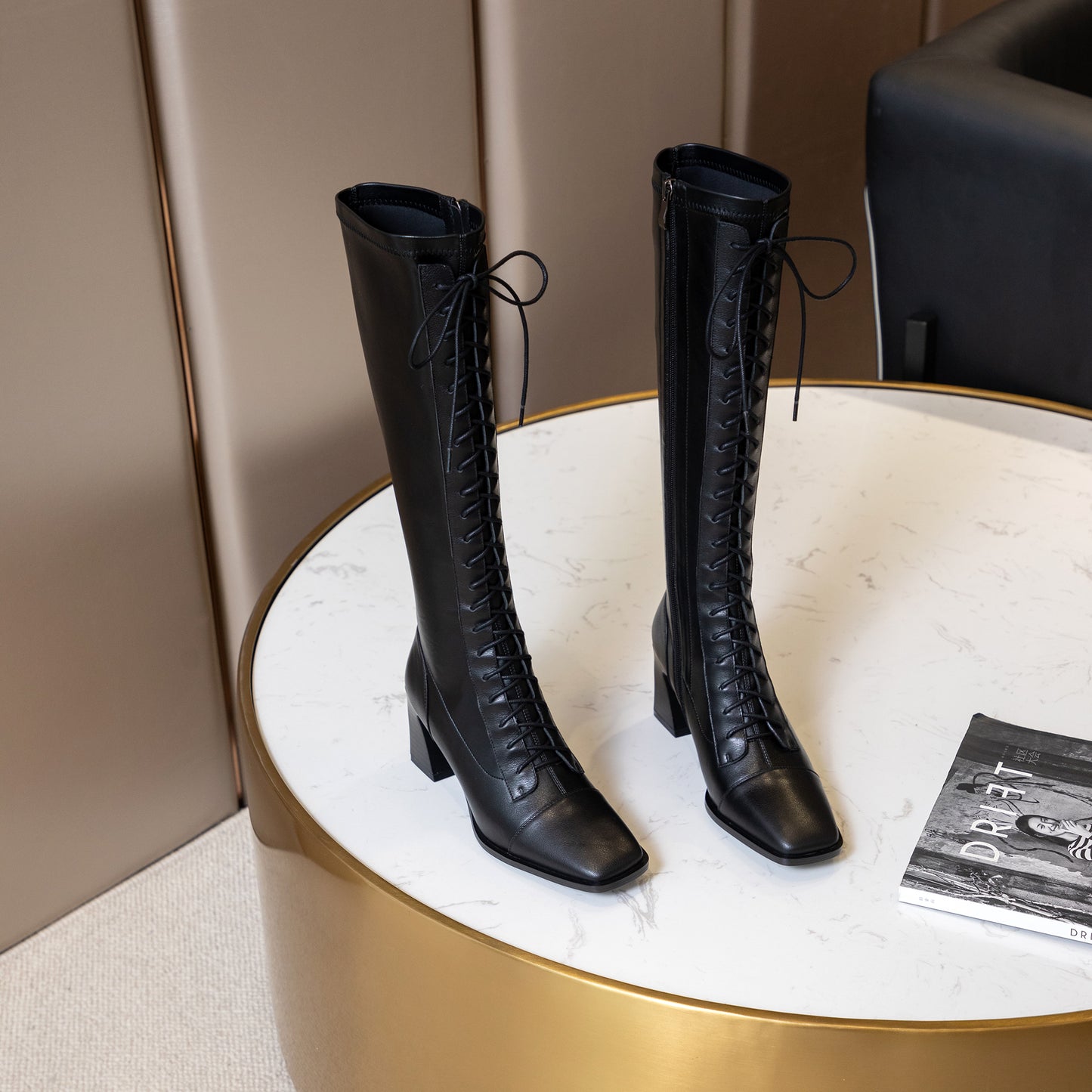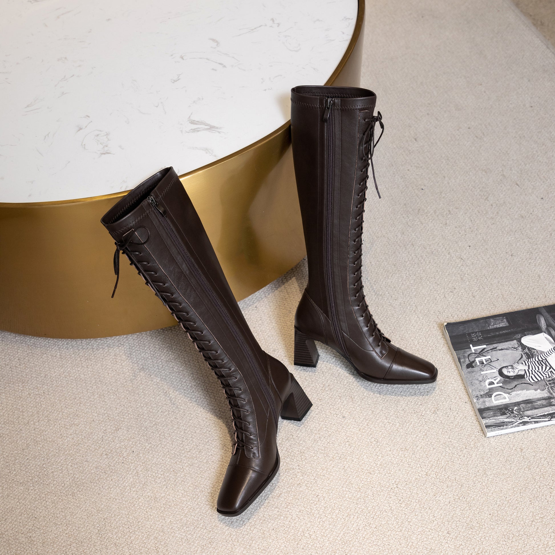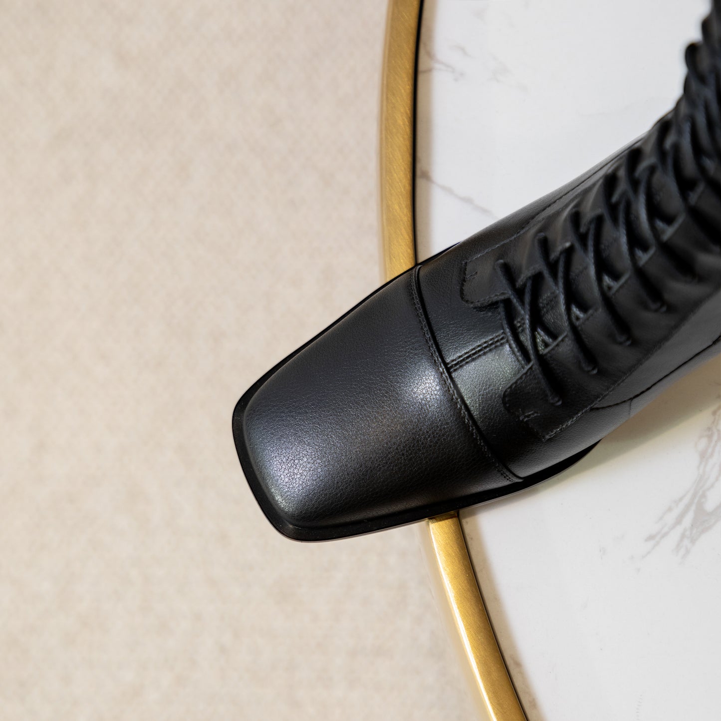 Stylish walking dress boots are designed with genuine leather, square toe, lace, side zipper to keep up with fashion trend. These fashion boots could go with different outfit and comfort with every step for the day.