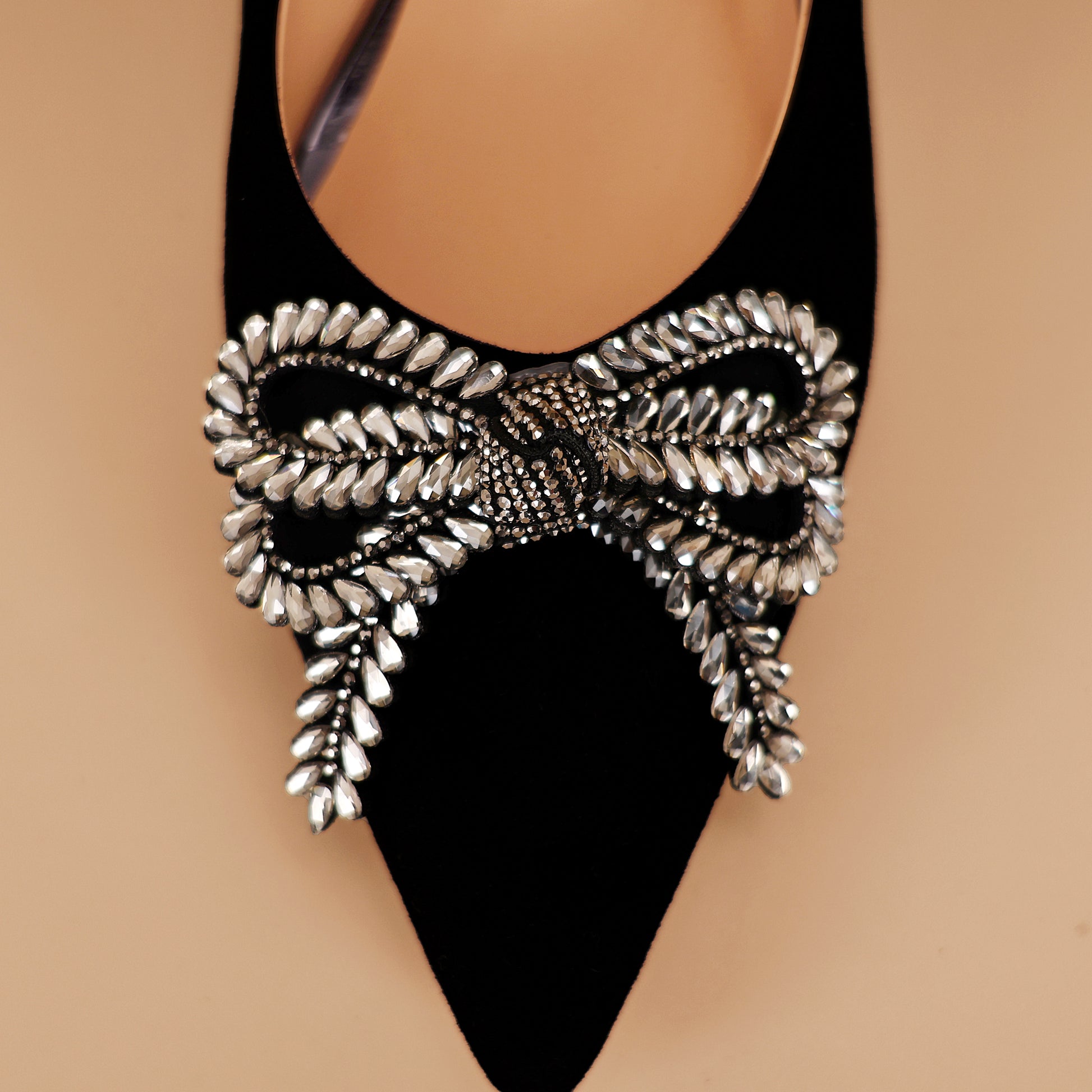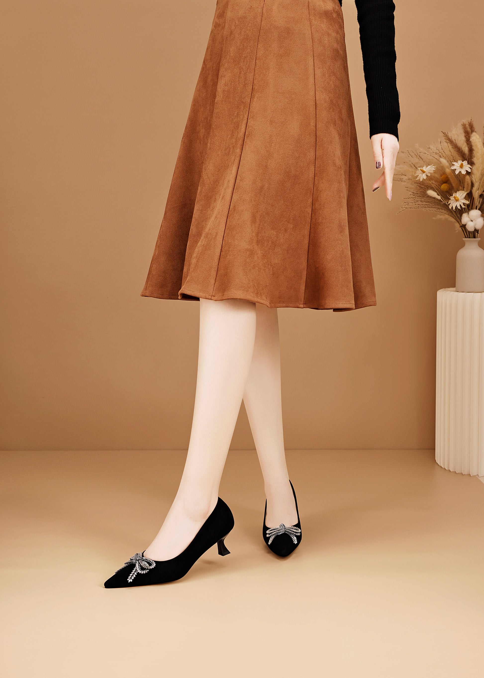 TinaCus Women's Kitten Heel Pumps Handmade Suede Leather Rhinestone Bow Pointed Toe Dress Shoes Wedding Business
