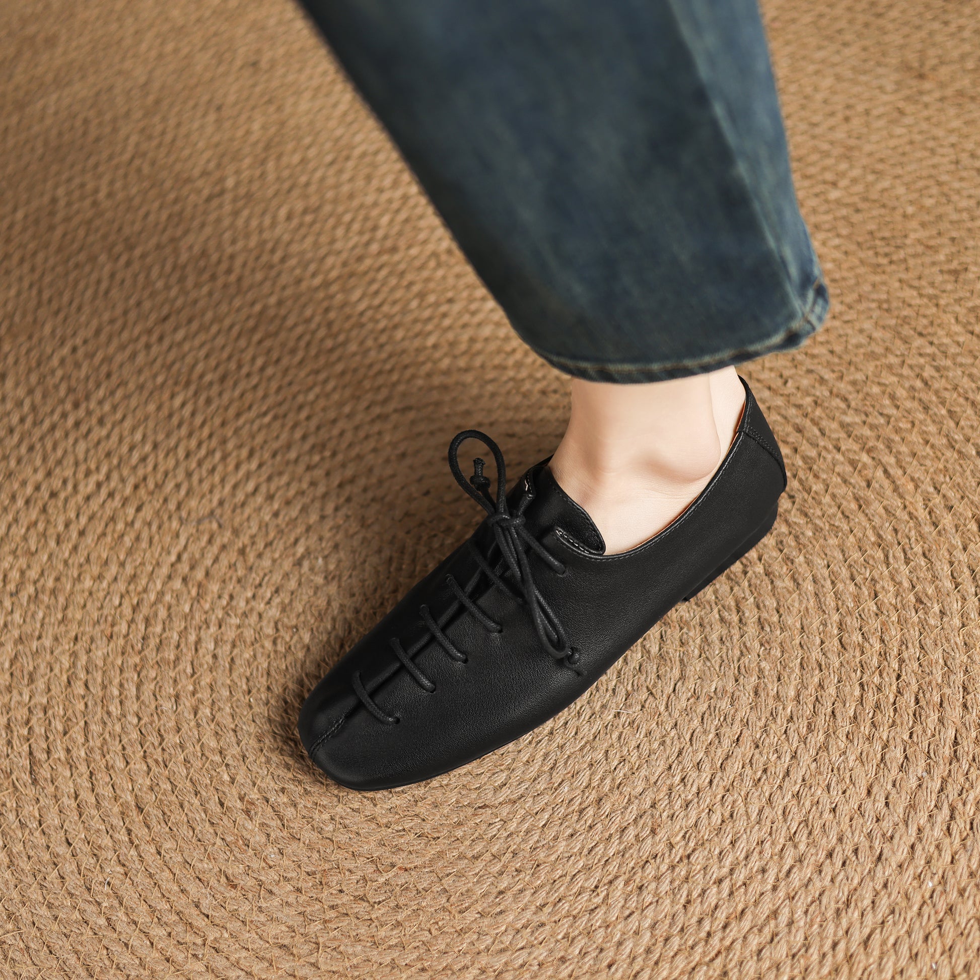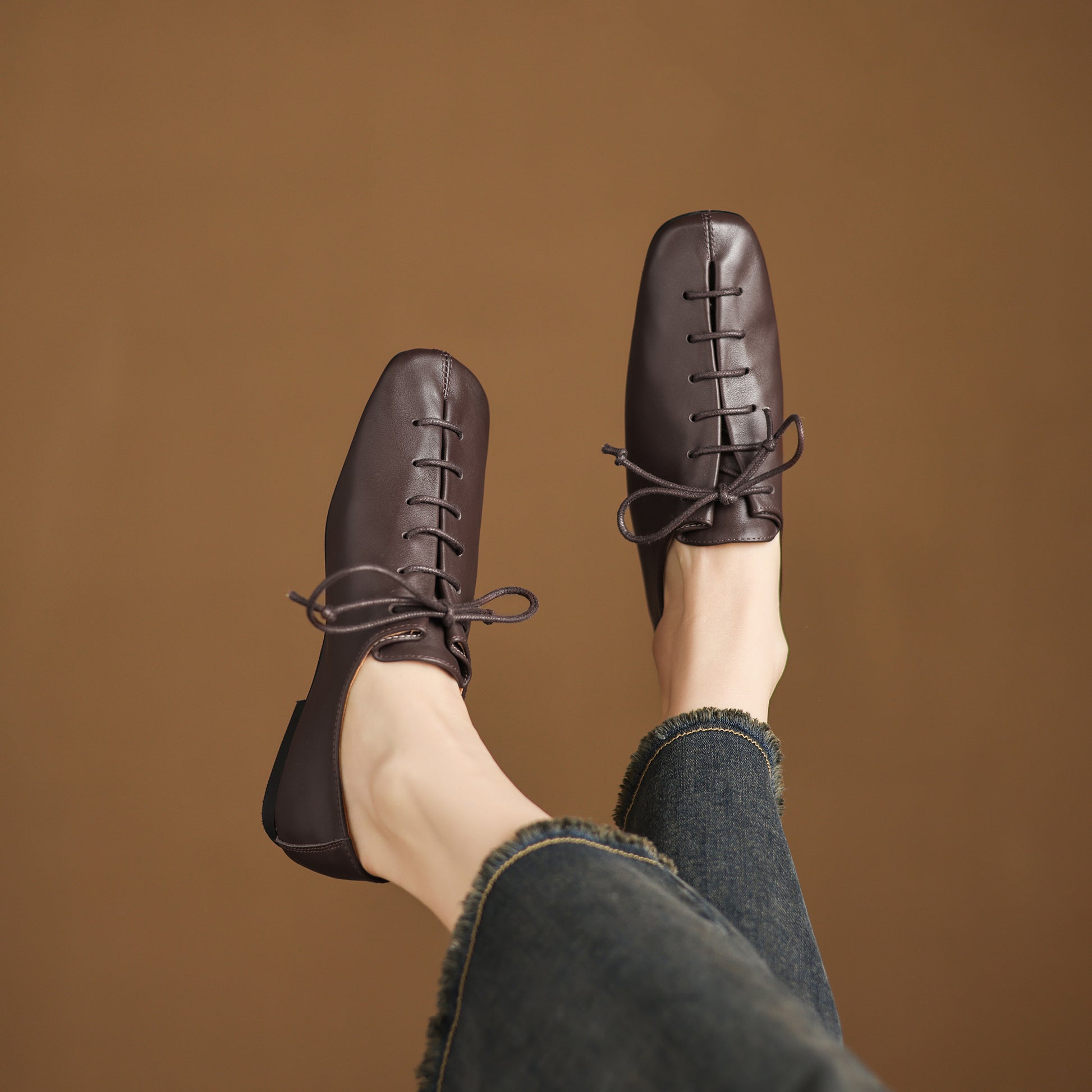 Square-toe lace-up flats for comfortable all-day wear
