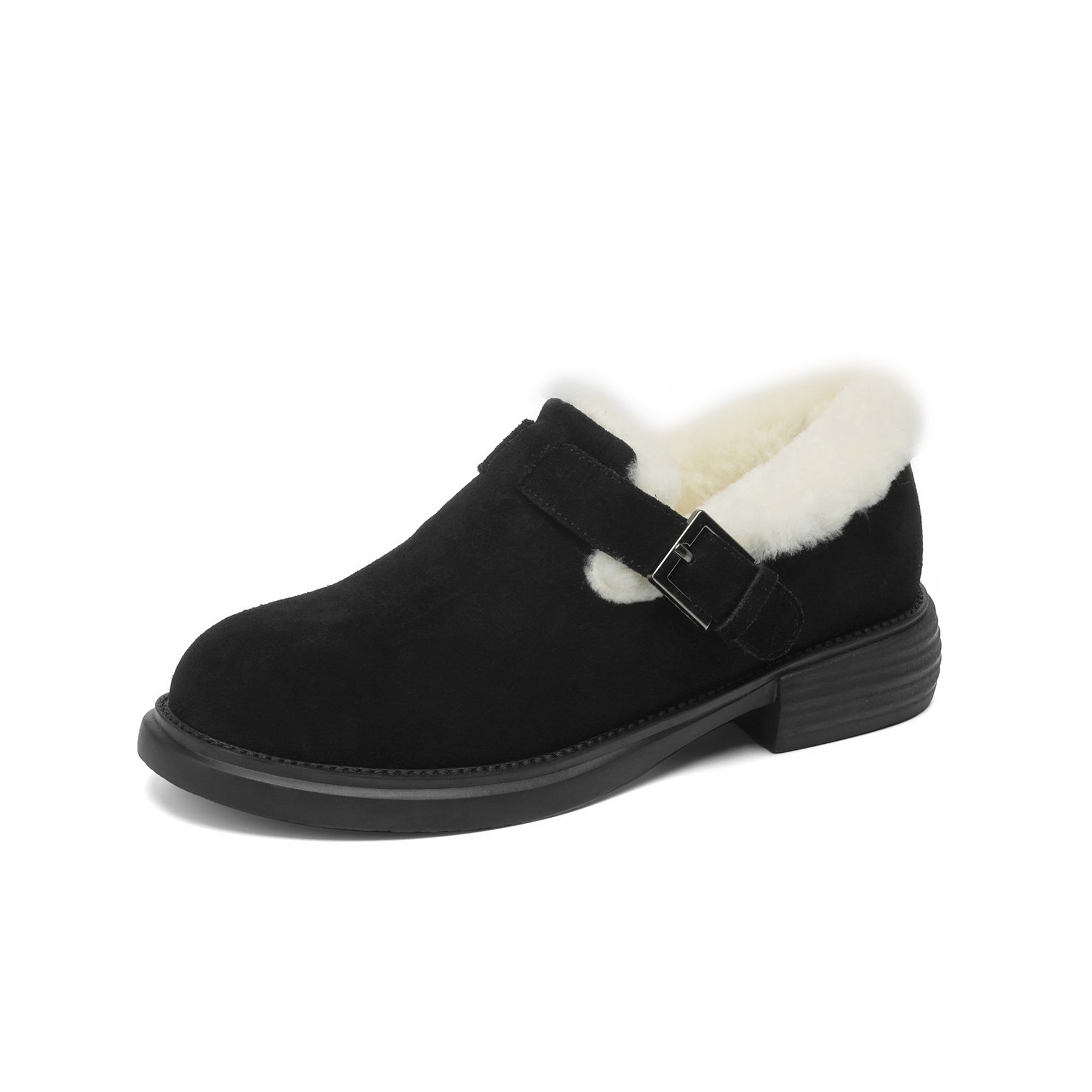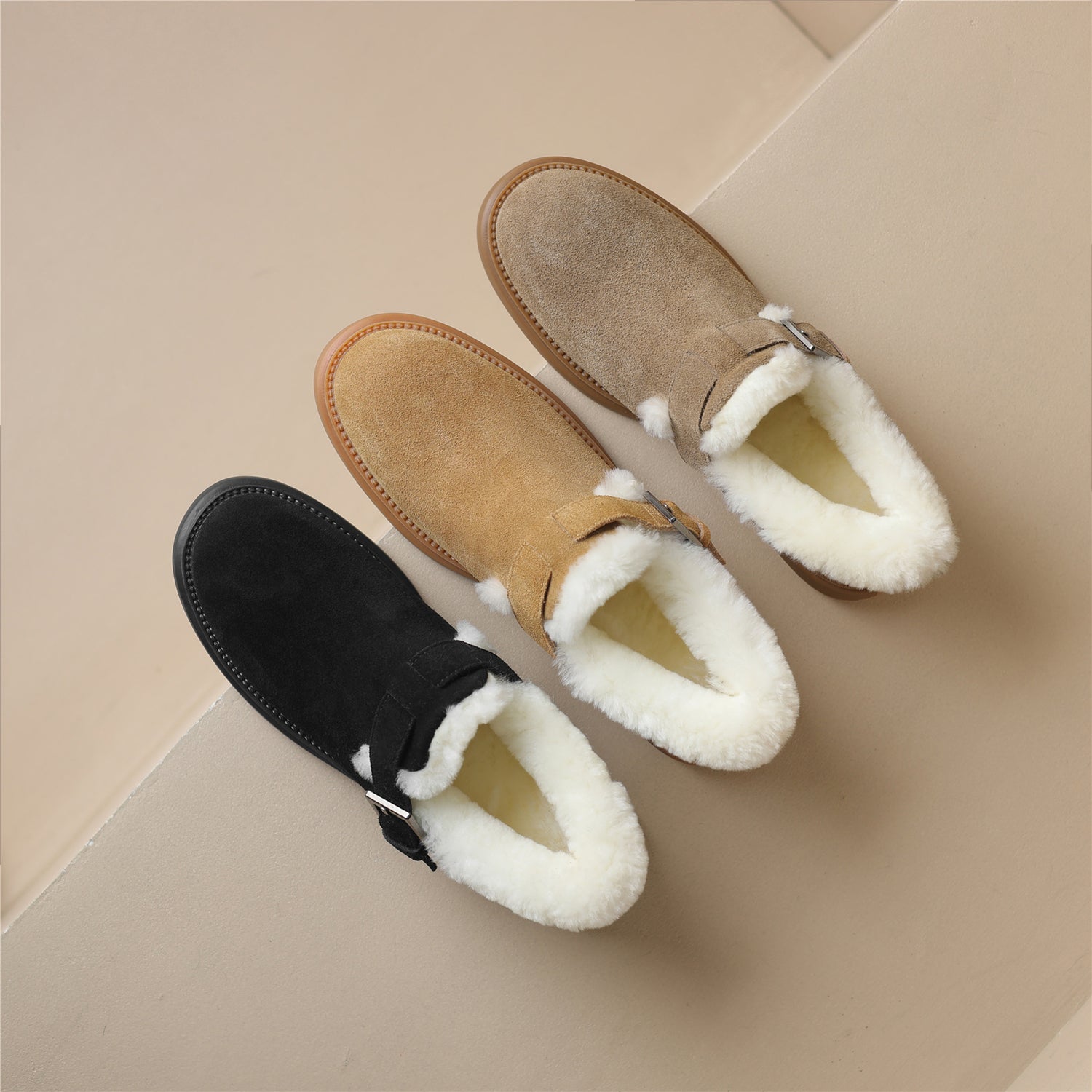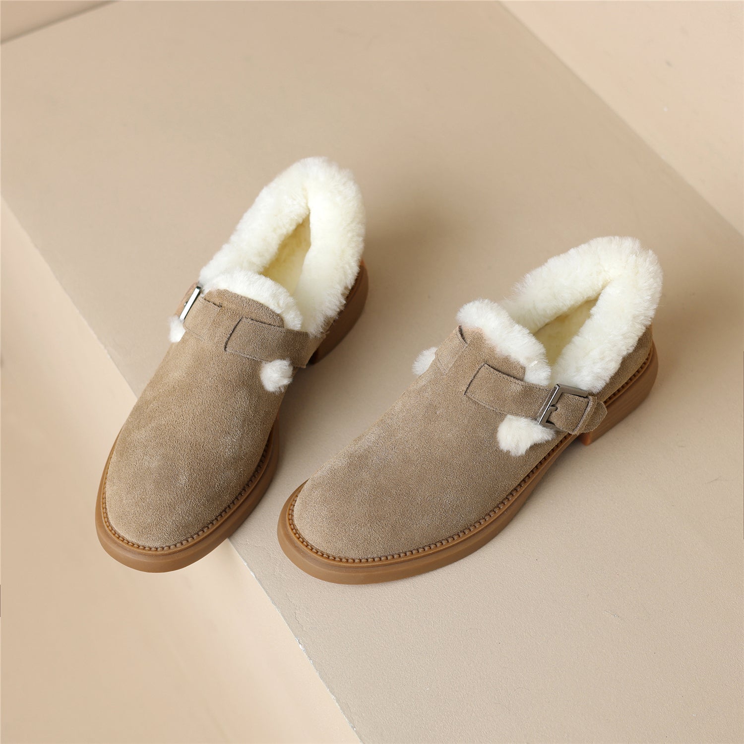 TinaCus Women's Leather Chunky Heel Handmade Buckle Round Toe Fur Snow Booties