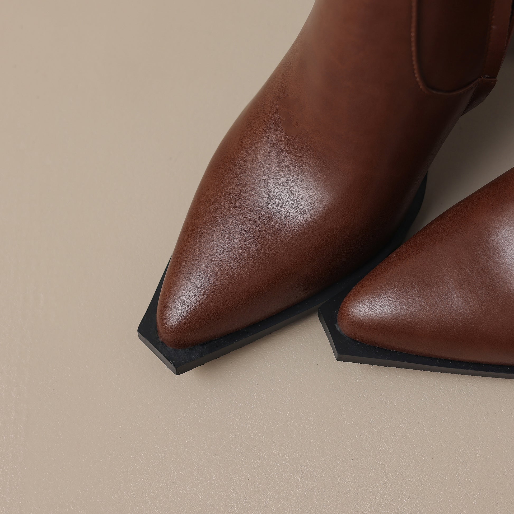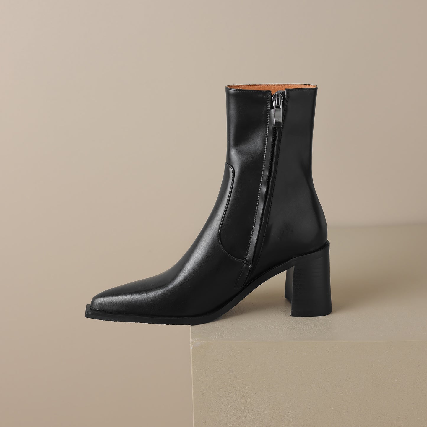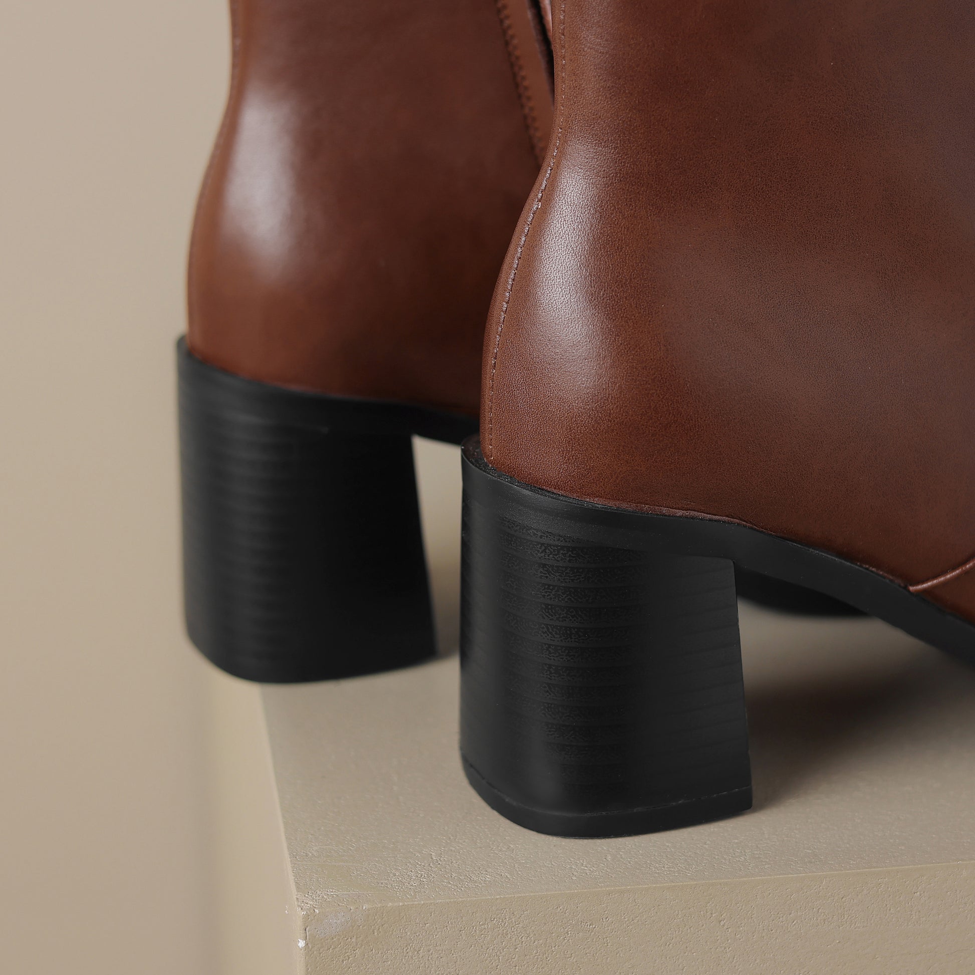 Mid calf boots are designed with genuine leather, block heel, pointed toe and zip up to keep up with fashion trend.