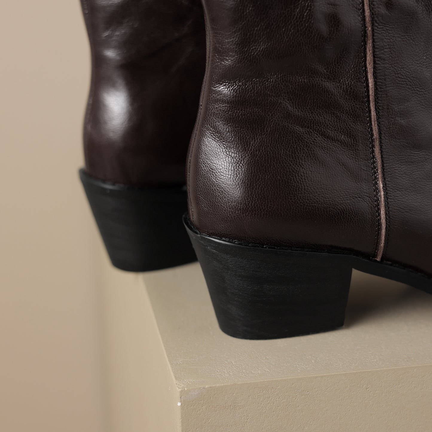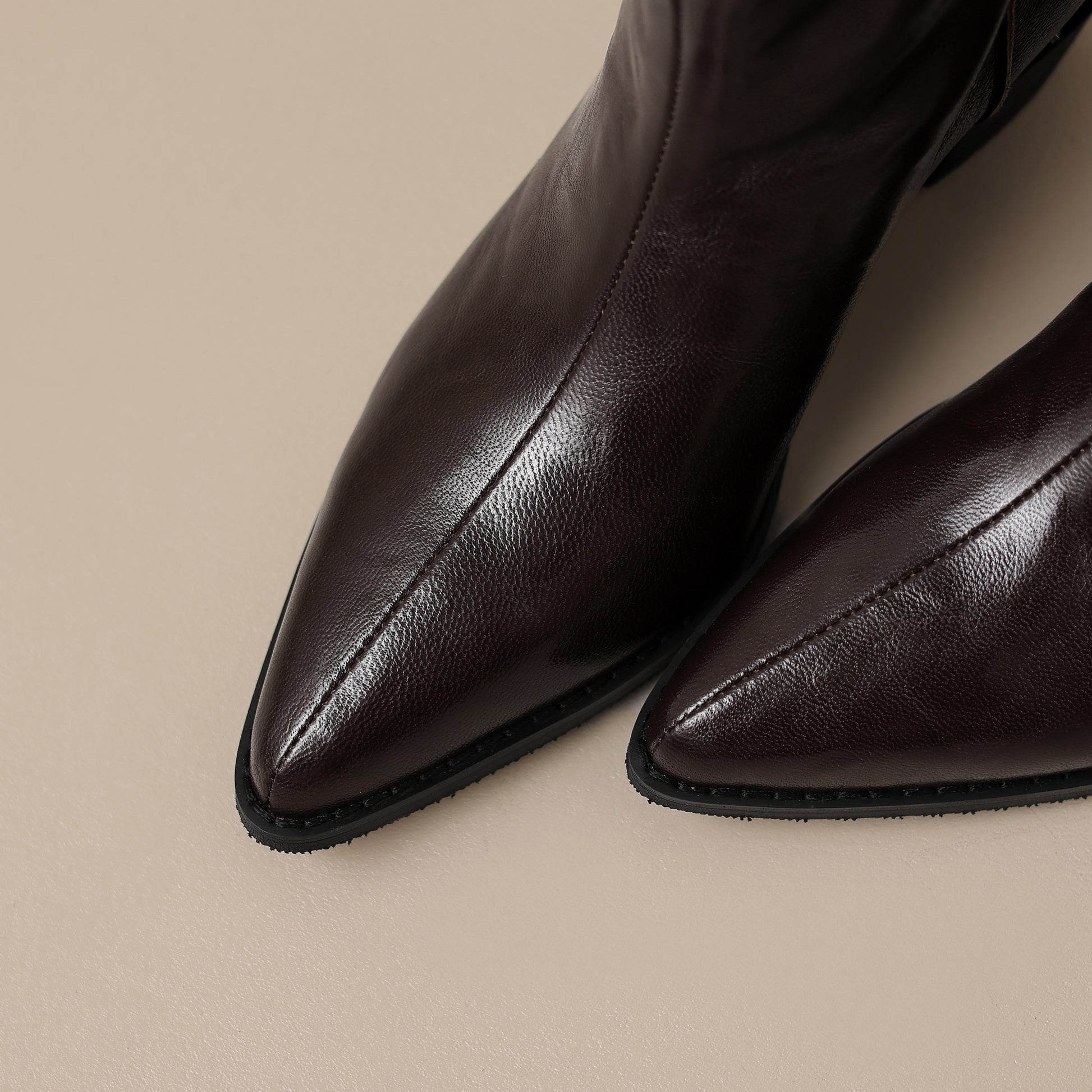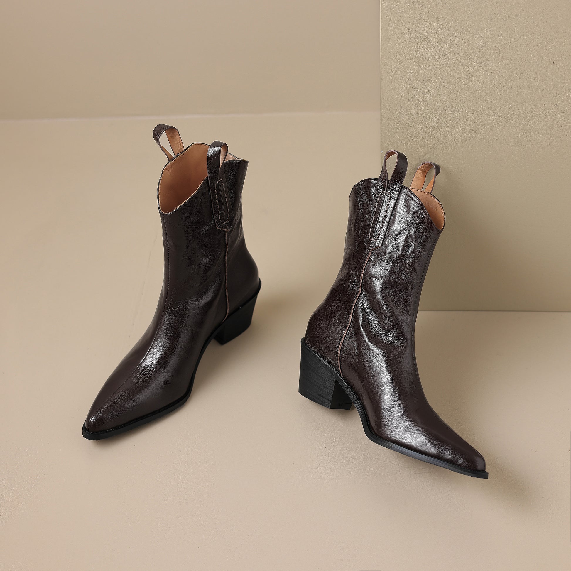 TinaCus Women's Pointed Toe Genuine Leather Handmade Chunky Heel Zip Up Western Boots