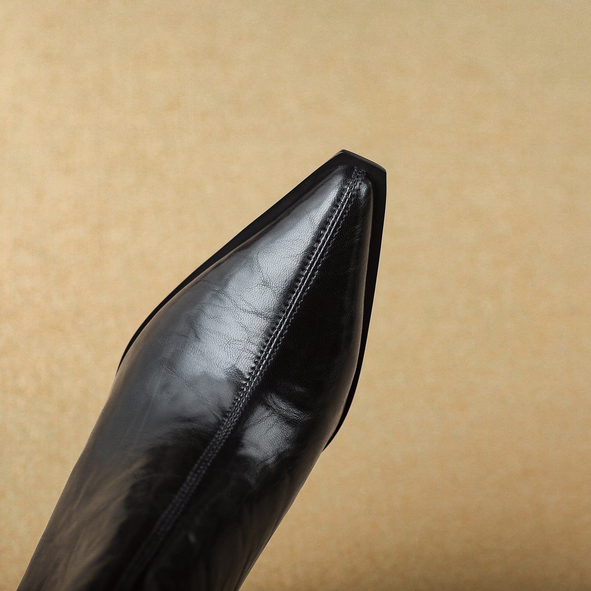 TinaCus Women's Pointed Toe Genuine Leather Handmade Chunky Heels Back Zip up Ankle Boots