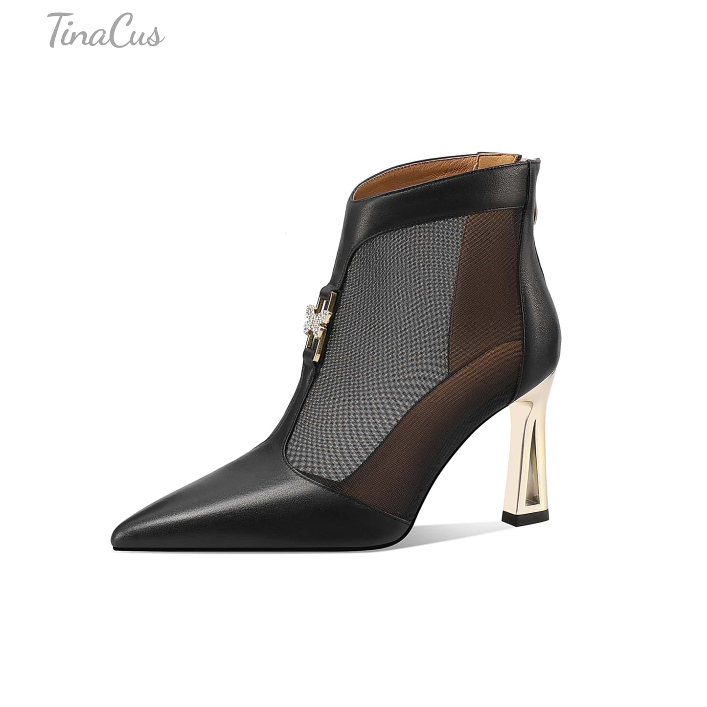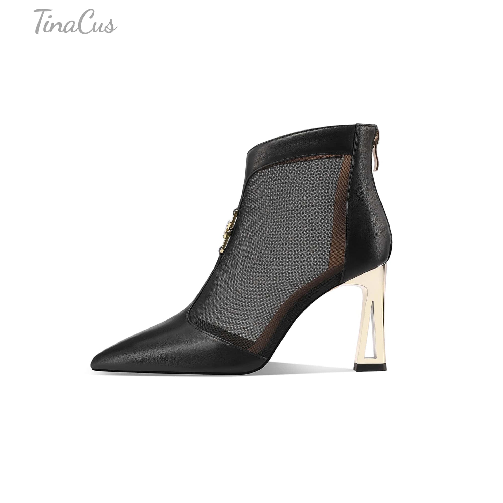 TinaCus Women's Pointed Toe Genuine Leather & Mesh Handmade High Heels Zip up Ankle Boots with Butterfly