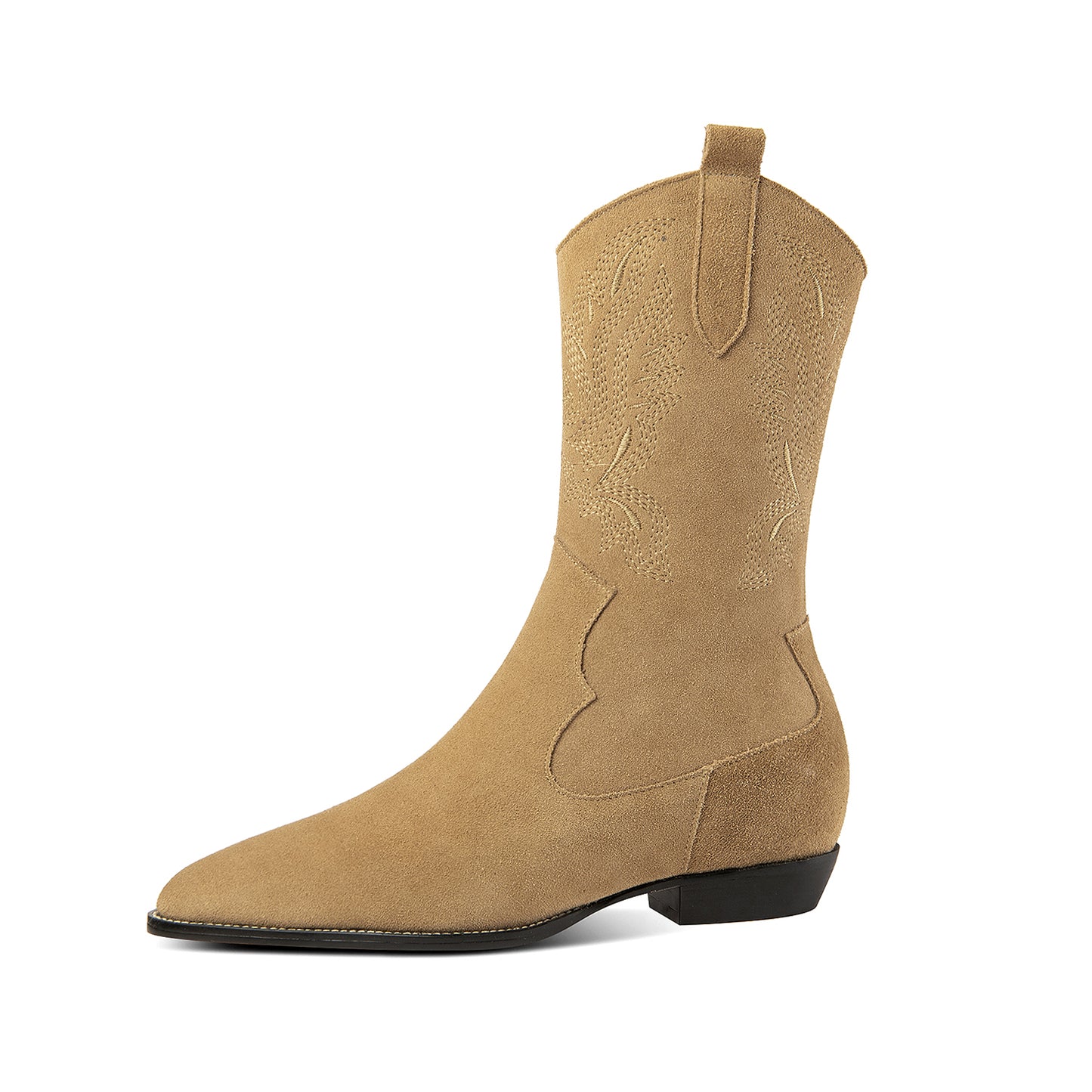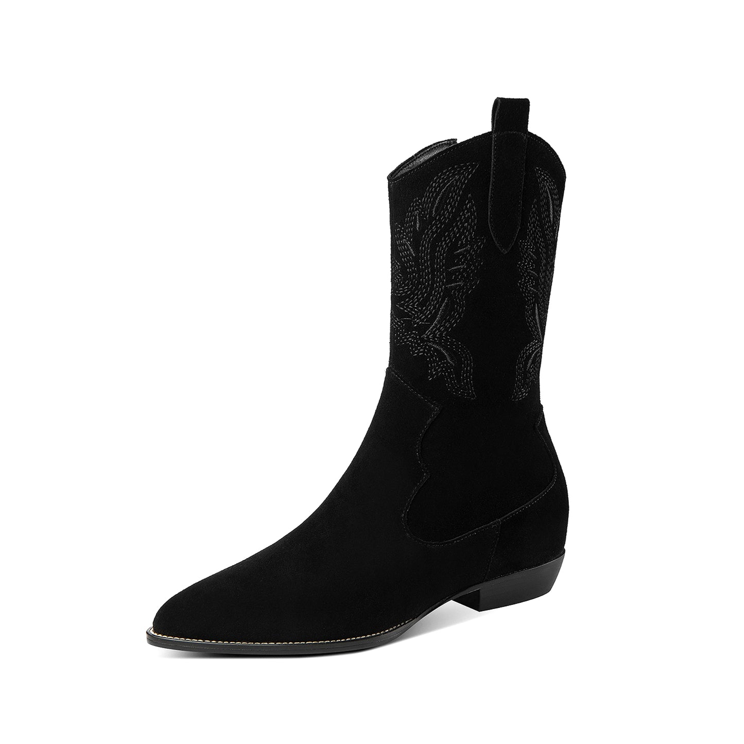 TinaCus Handmade Women's Pointed Toe Suede Leather Block Heel Side Zip Up Mid-Calf Boots