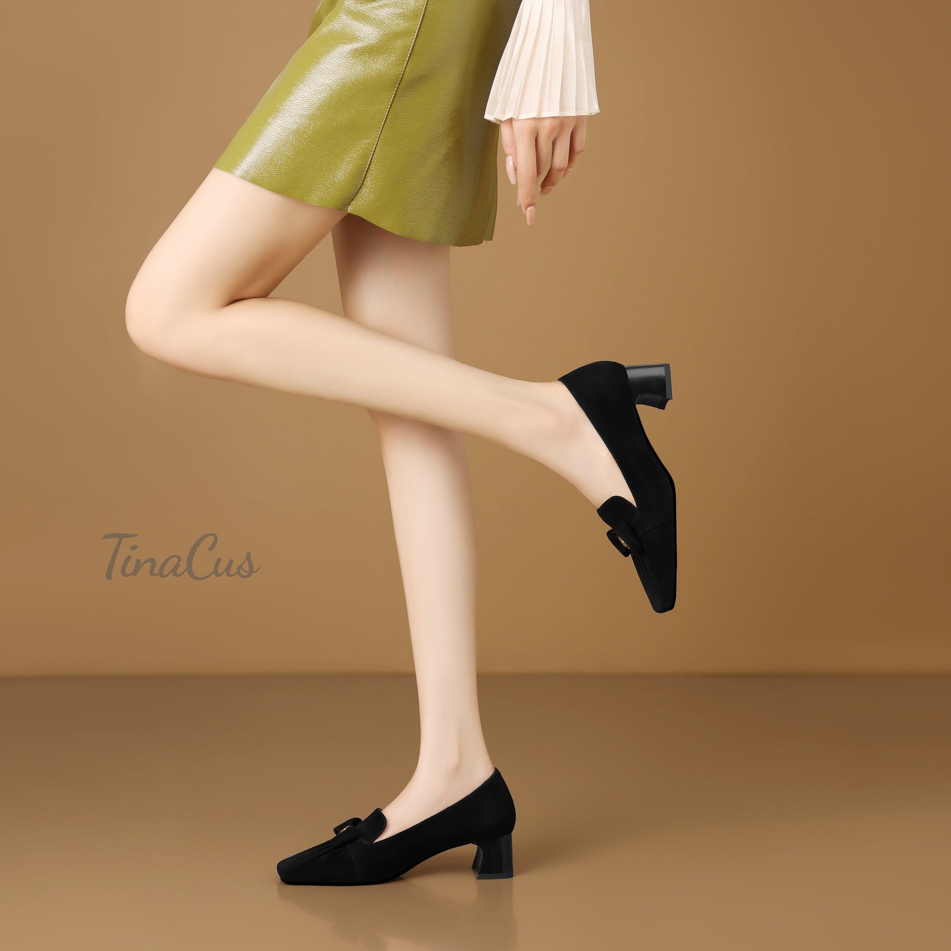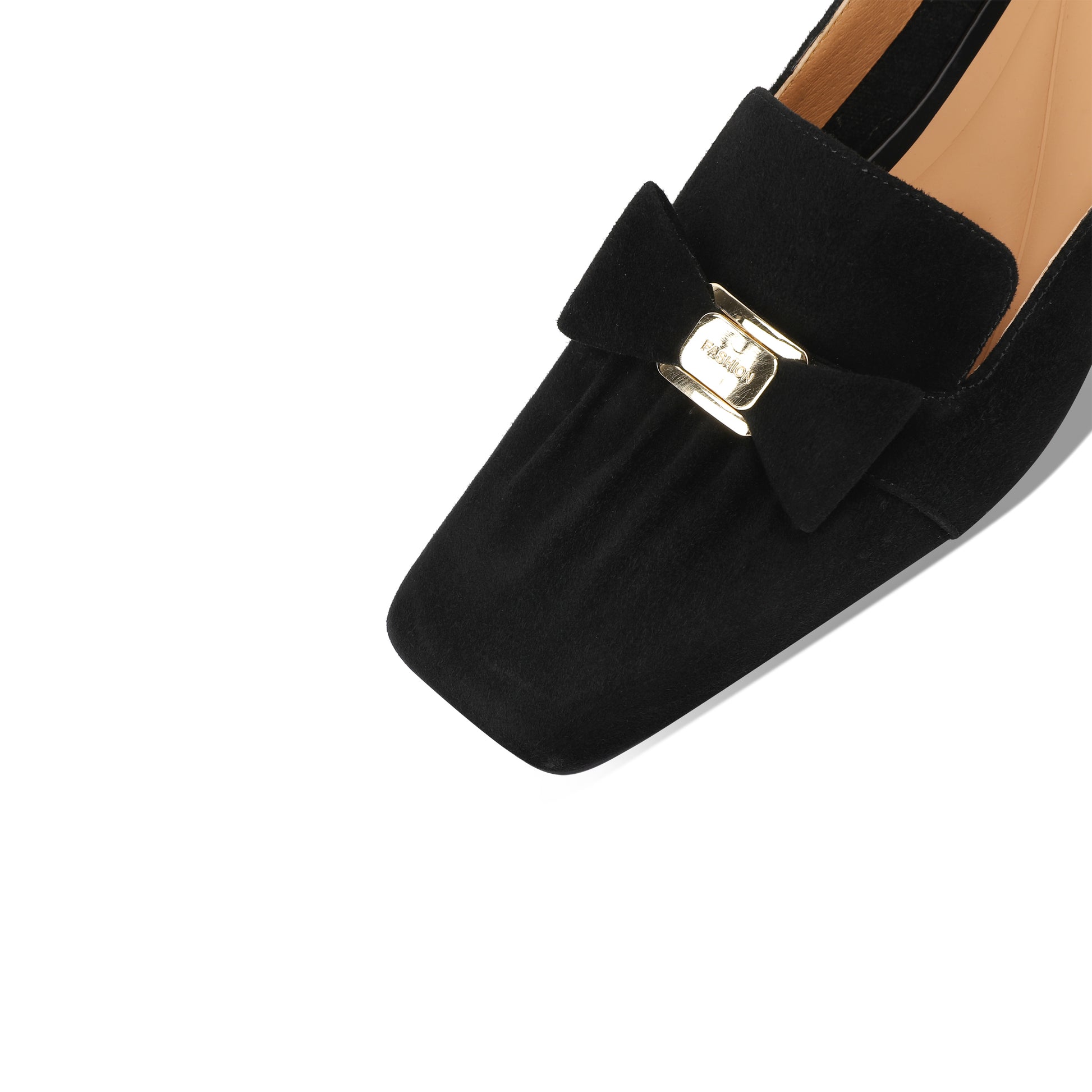 Loafers shoes with square toe, suede leather, bowknot and low heels can go with kinds of outfits