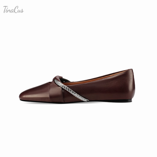 TinaCus Pointed Toe Genuine Leather Women Handmade Slip On Flats
