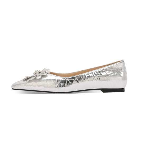 TinaCus Handmade Leather Women's pointed Toe Flower Slip On Flats