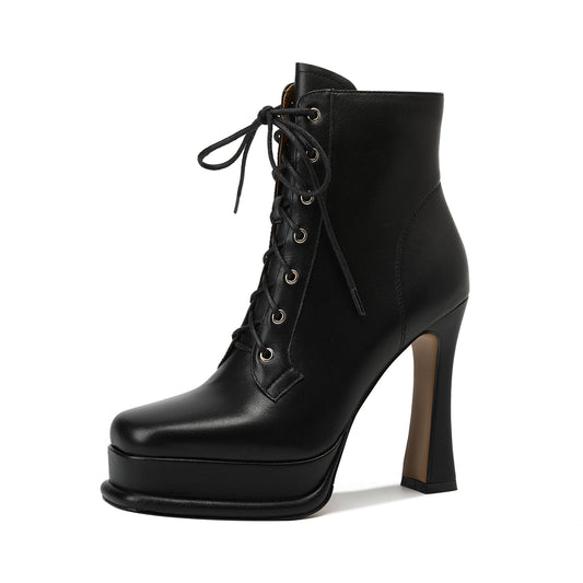 TinaCus Women's Genuine Leather Handmade Side Zip Selftie Platform High Heel Ankle Boots